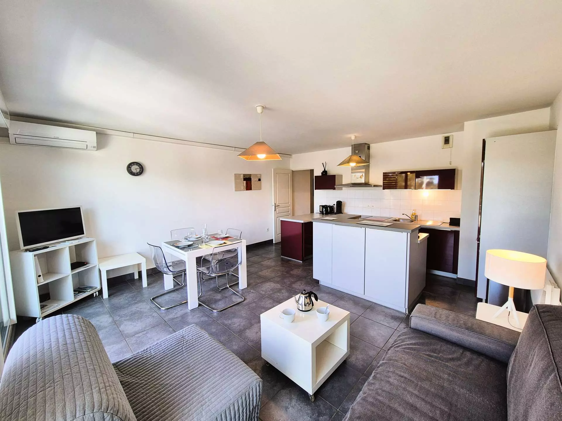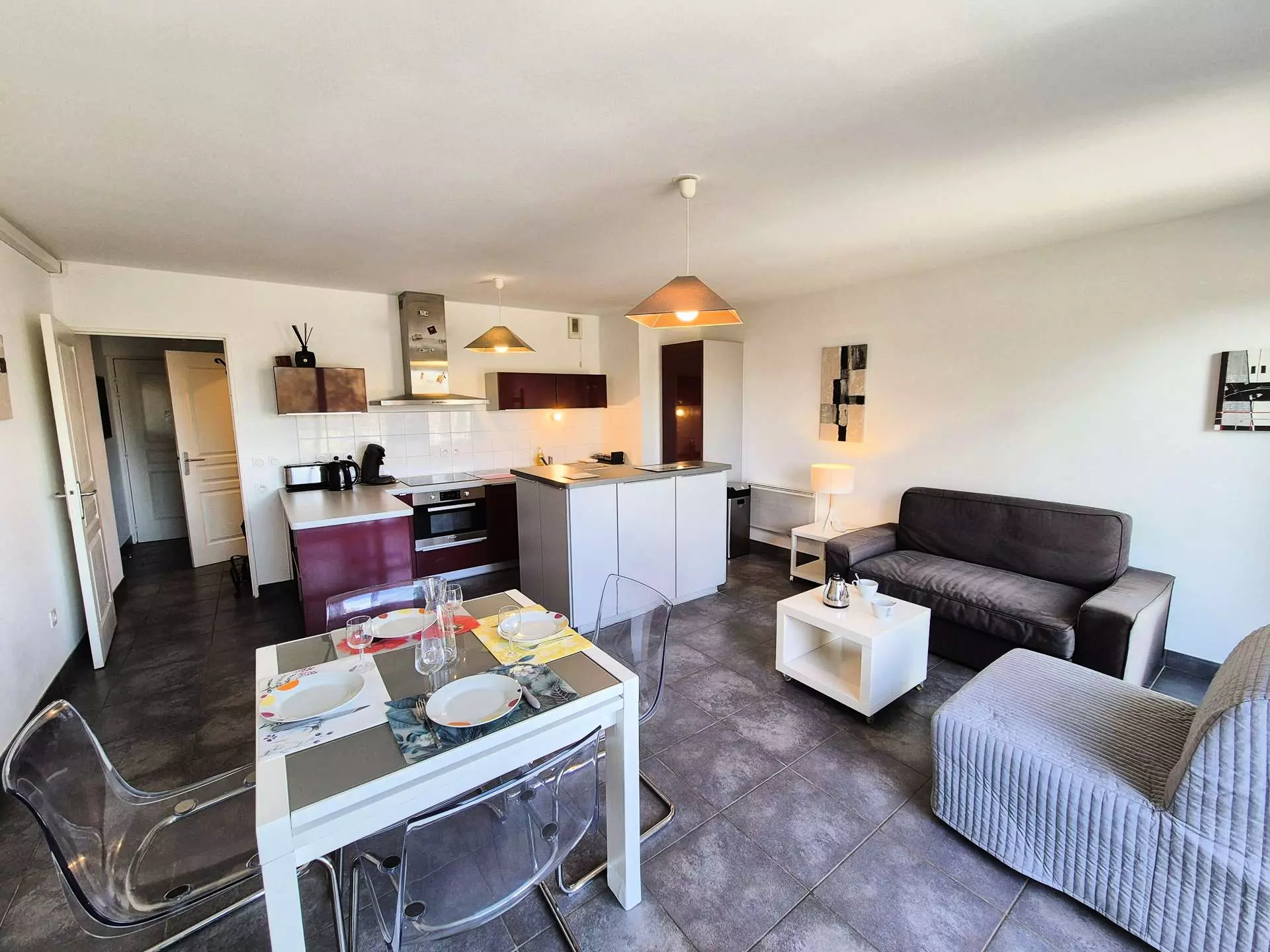 50 m² apartment, 1 bedroom, sleeps 4/5. Fully equipped open-plan kitchen opens onto a large living room opening onto a beautiful terrace.