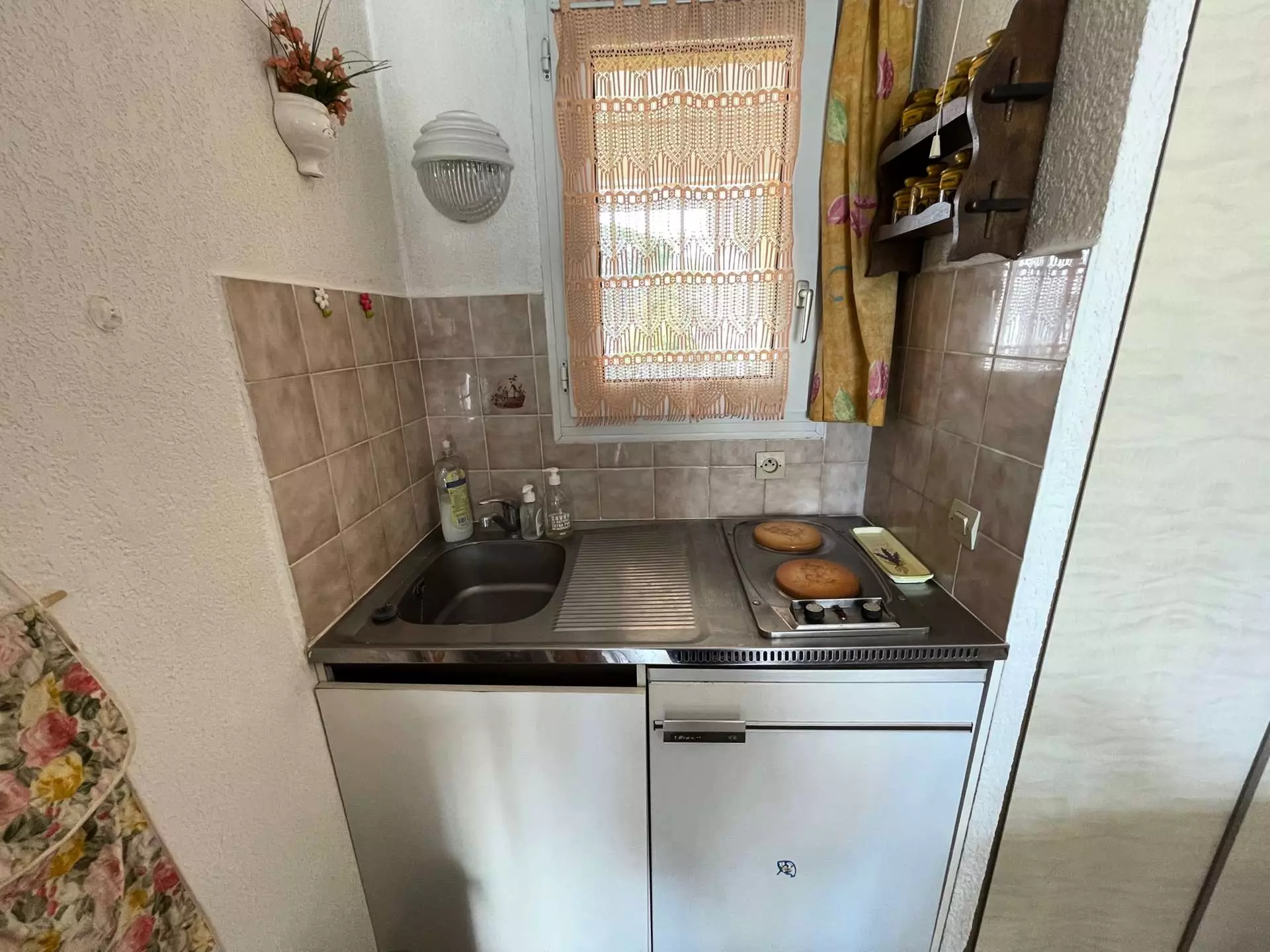 -Hotplates (2 electric), mini oven, microwave, fridge-top, coffee maker (electric), kettle, toaster