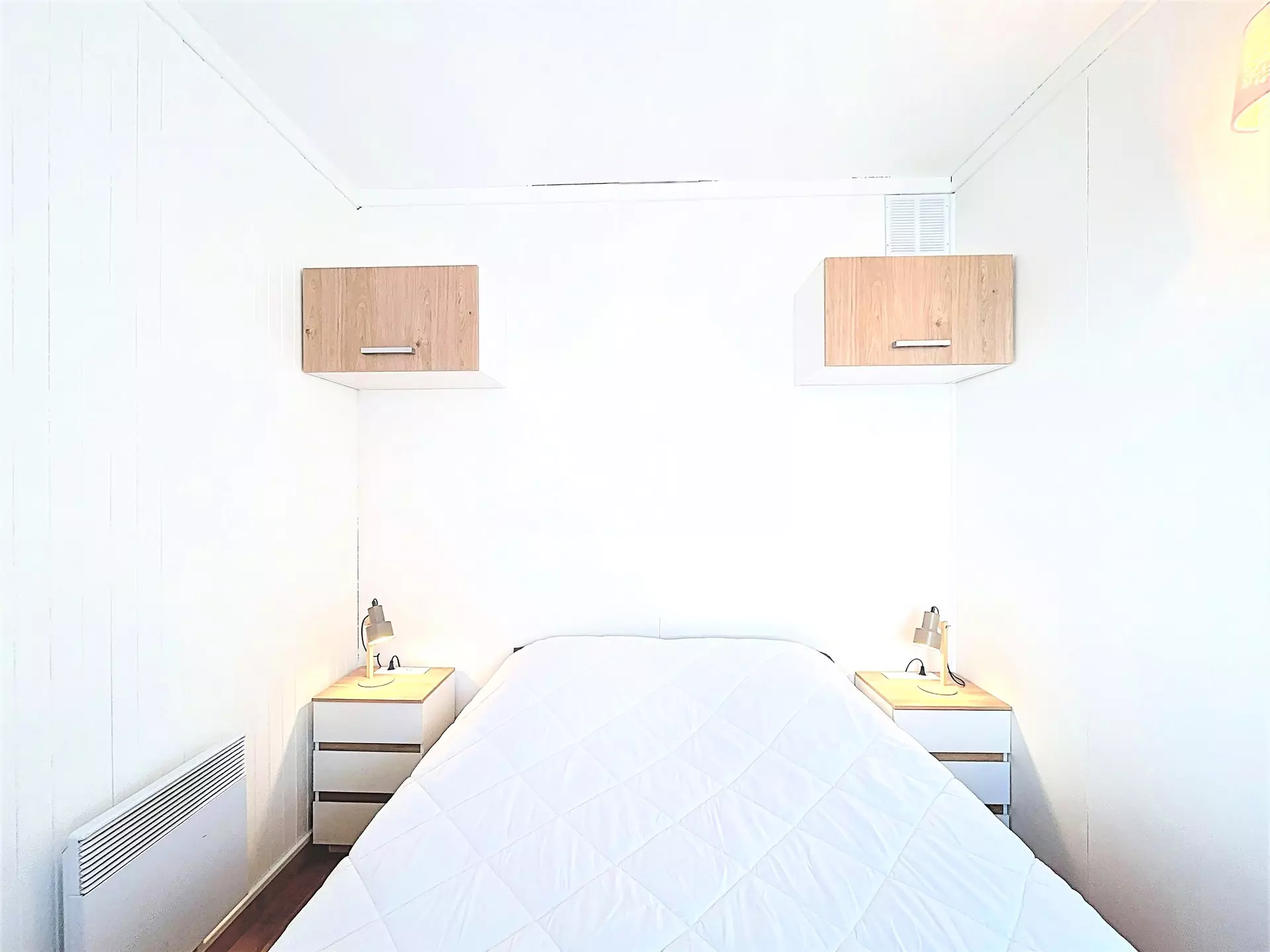 The bedroom has a 140cm bed, the cabin has 2 bunk beds.