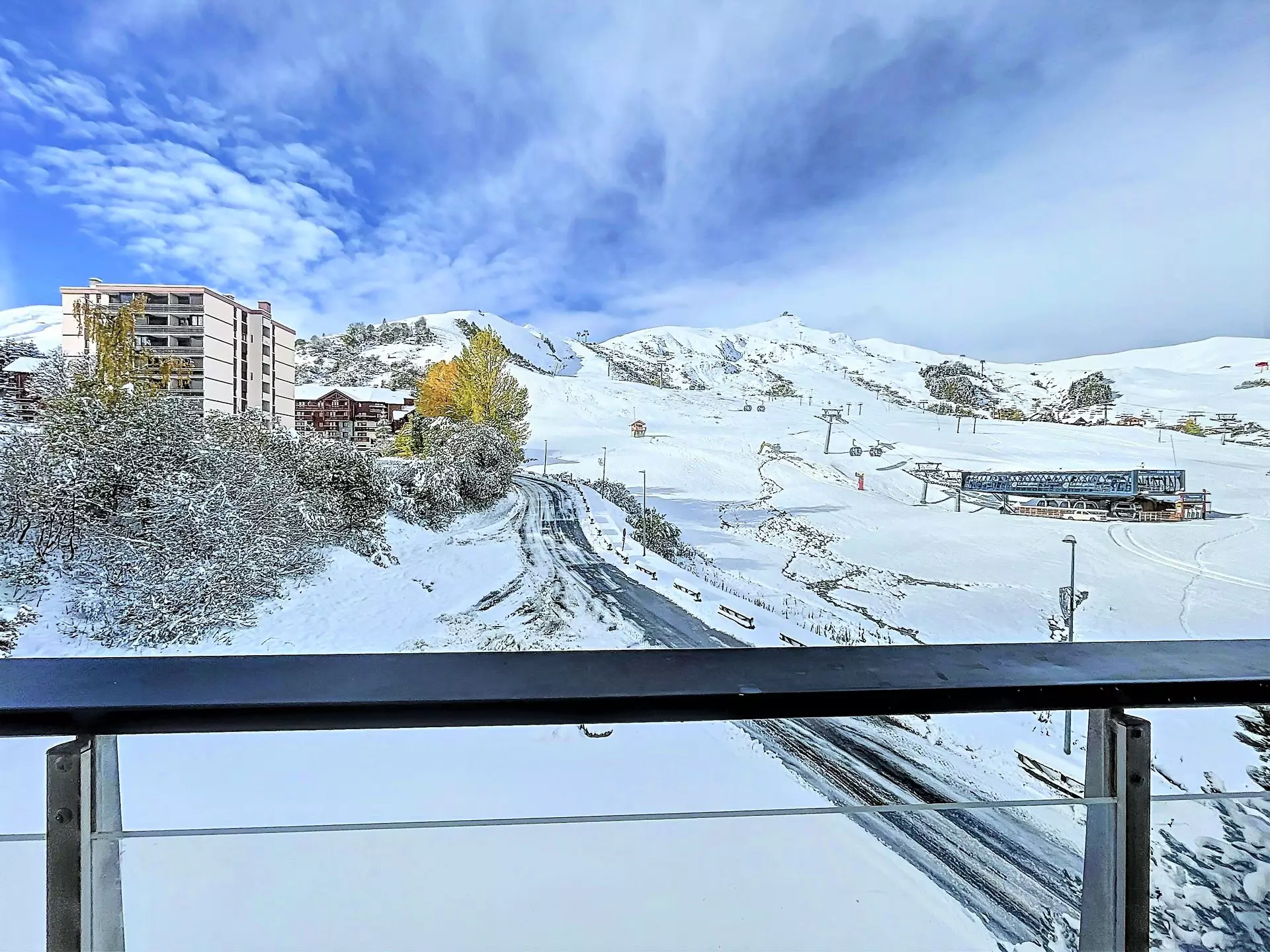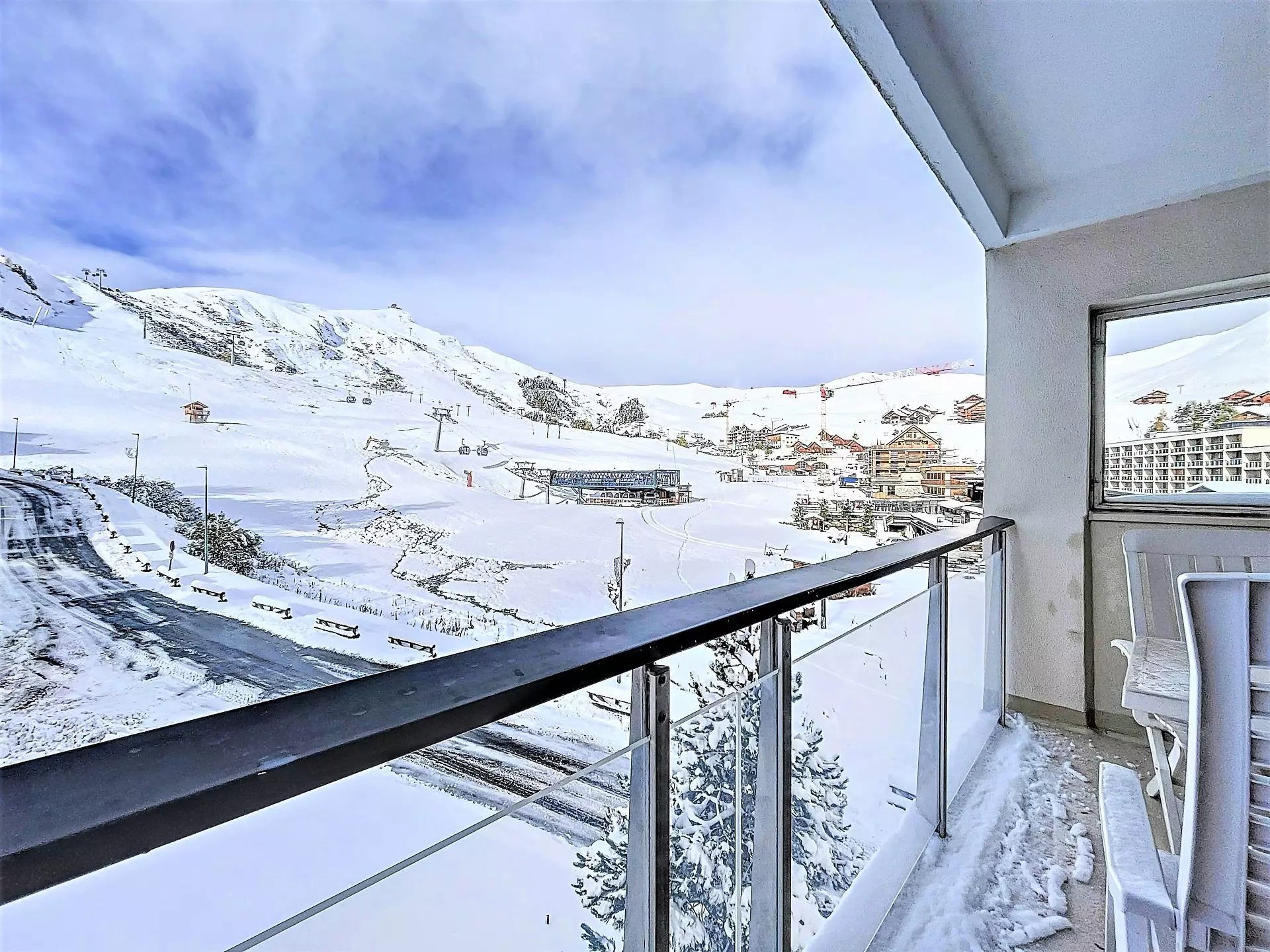 Very bright apartment with balcony, immediate view of the slopes and the snow front, in the center of the resort of La Toussuire, consisting of a living room equipped with 1 sofa bed BZ for 2 people, a flat screen TV, a large closet, a table that can accommodate 6 people. The kitchen is equipped with a stove with oven and electric hob, a microwave, electric coffee maker, a refrigerator with freezer compartment and a dishwasher, toaster and kettle. The shower room has a towel dryer and the toilet is separate.