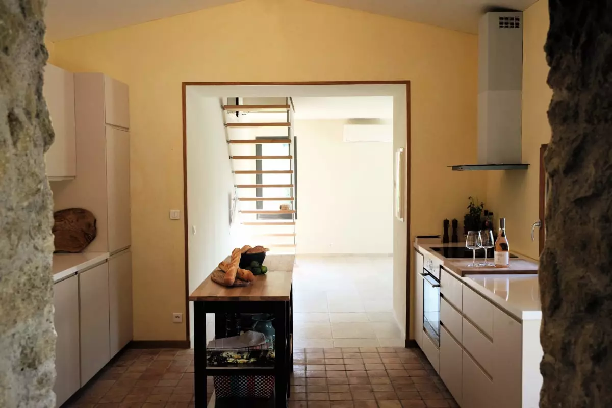 The Maison des Vignes offers breathtaking views of the vineyards of Domaine de Fontenille. Situated on 1,400 m² of land, this renovated and extended house combines old-world charm with modern comfort. The living area of approximately 120 m², plus the 20 m² outbuildings, is distributed as follows: