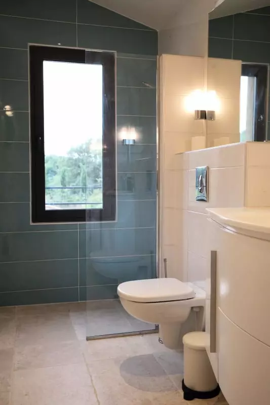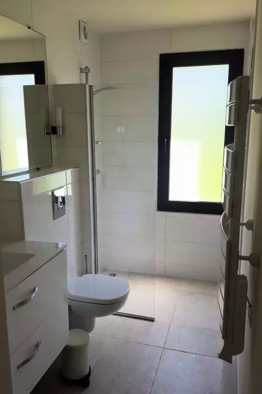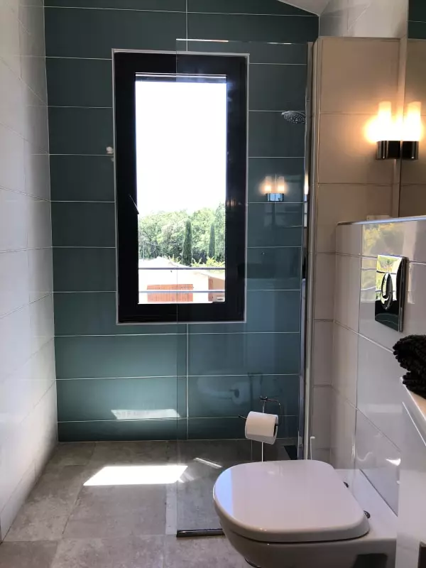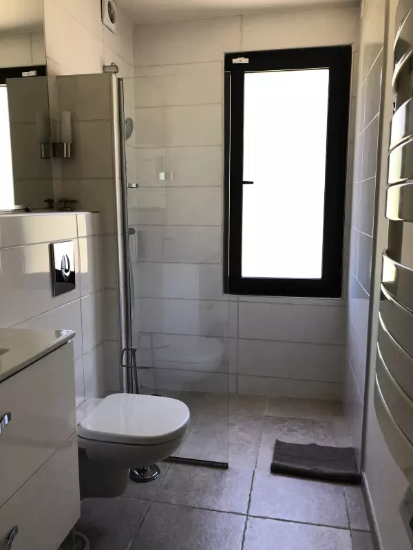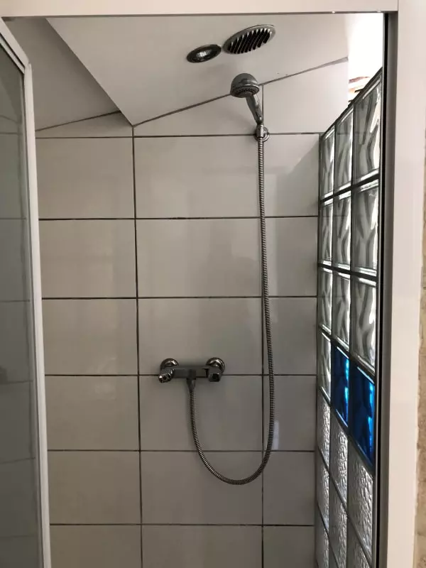 Annex: Bedroom with 160 cm bed, shower room and toilet (no air conditioning), small shower cubicle (less than 1.80 m high).