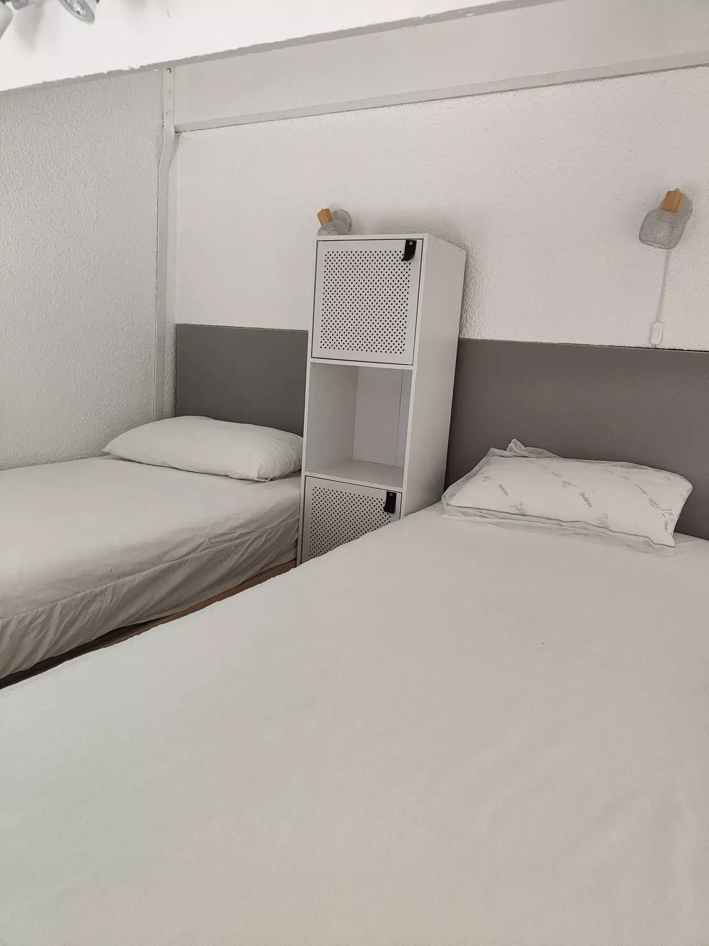 The mezzanine can accommodate 2 people thanks to two 80 cm beds. They can be joined together to form a 160 cm bed thanks to a mattress topper available.