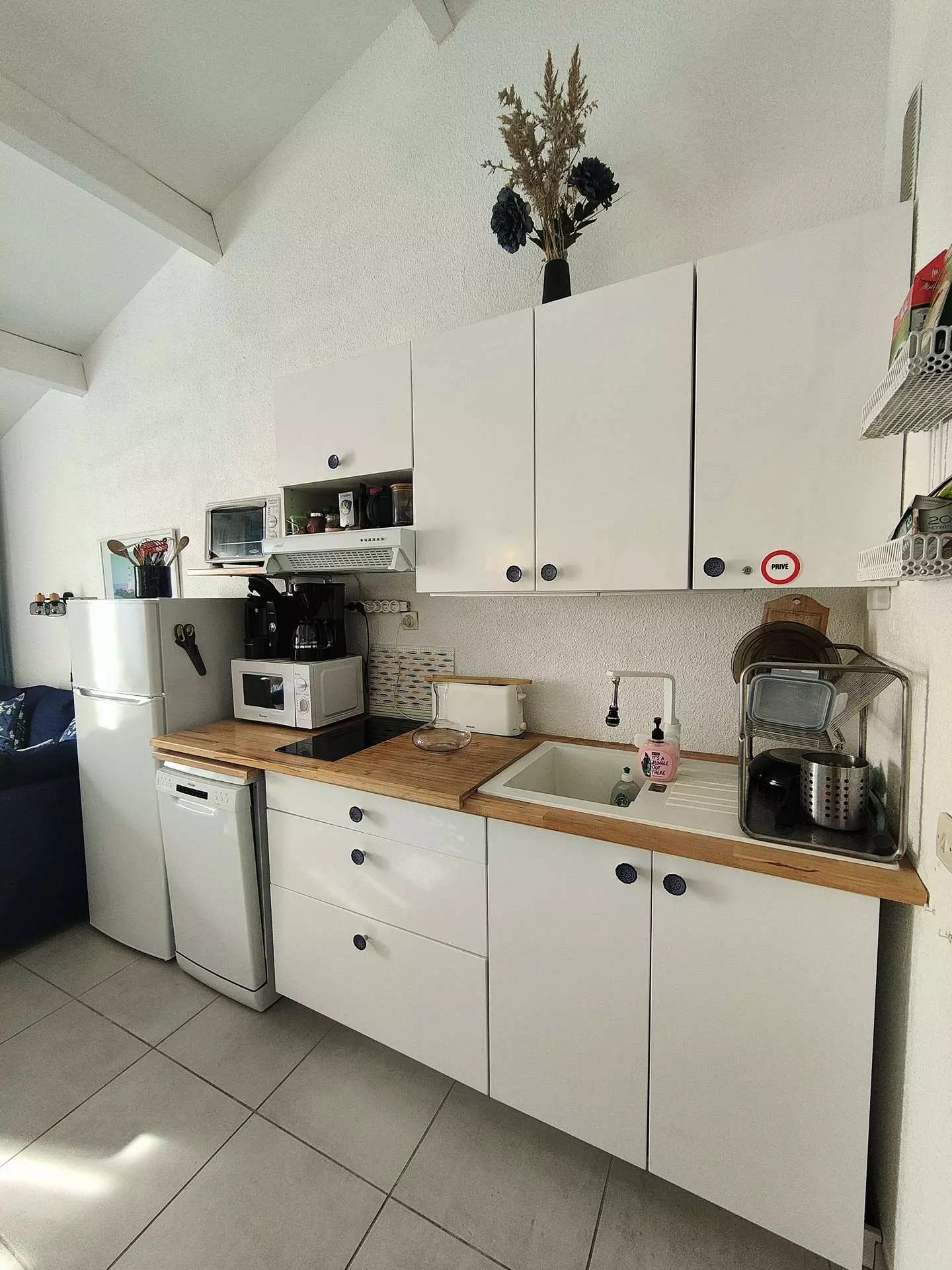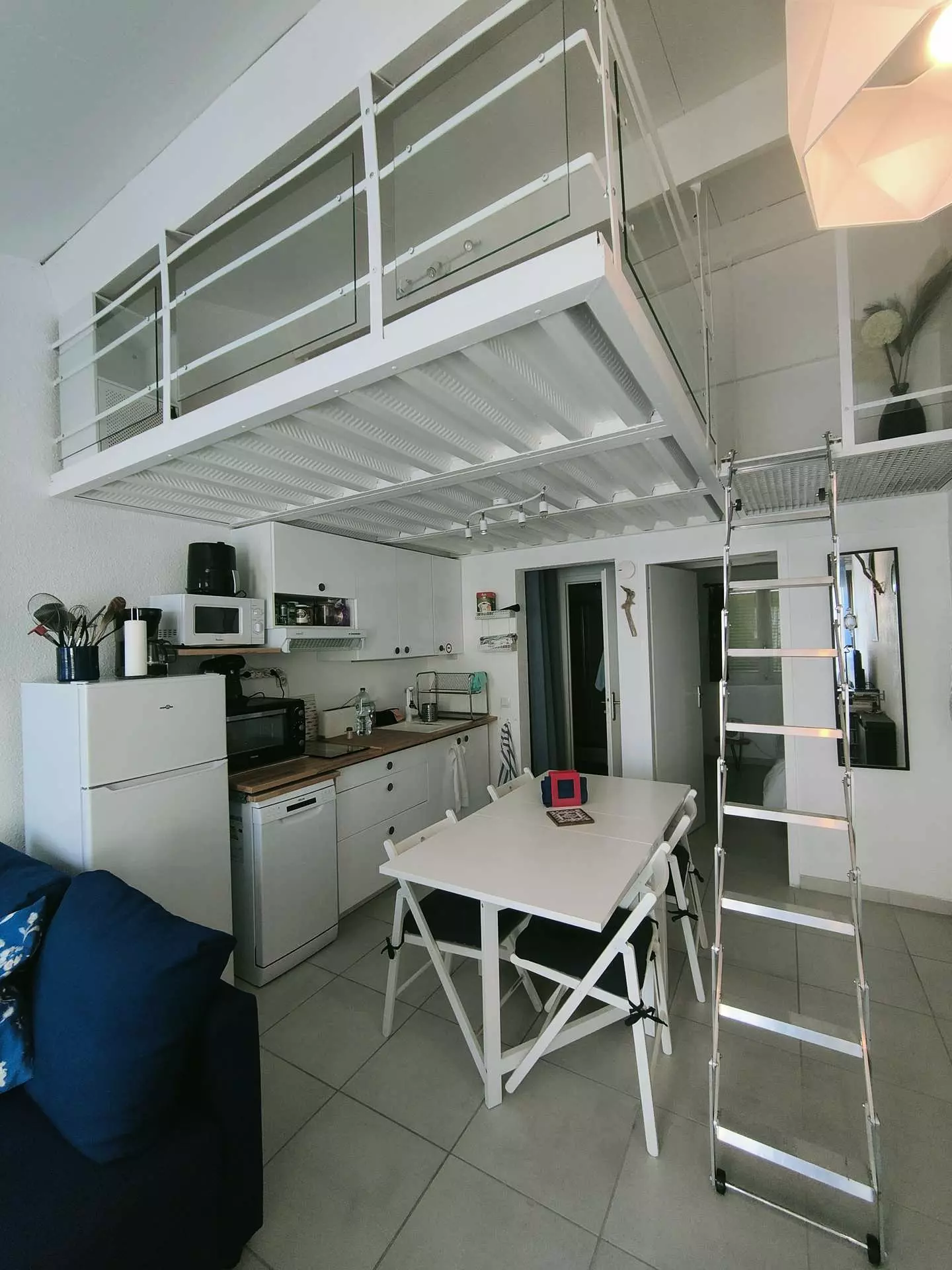 You will have a very functional kitchen, open to a living room and shower room with toilet.