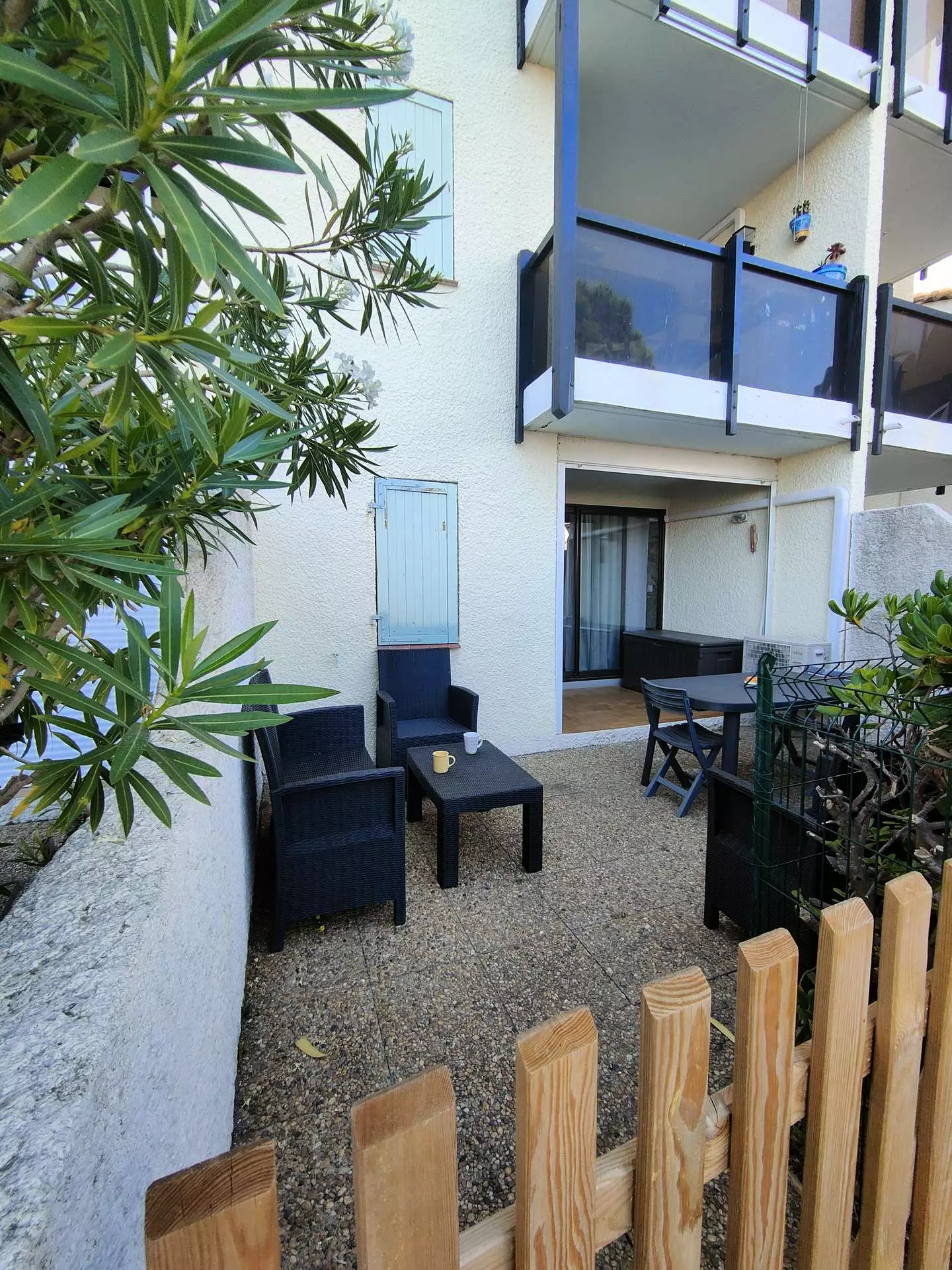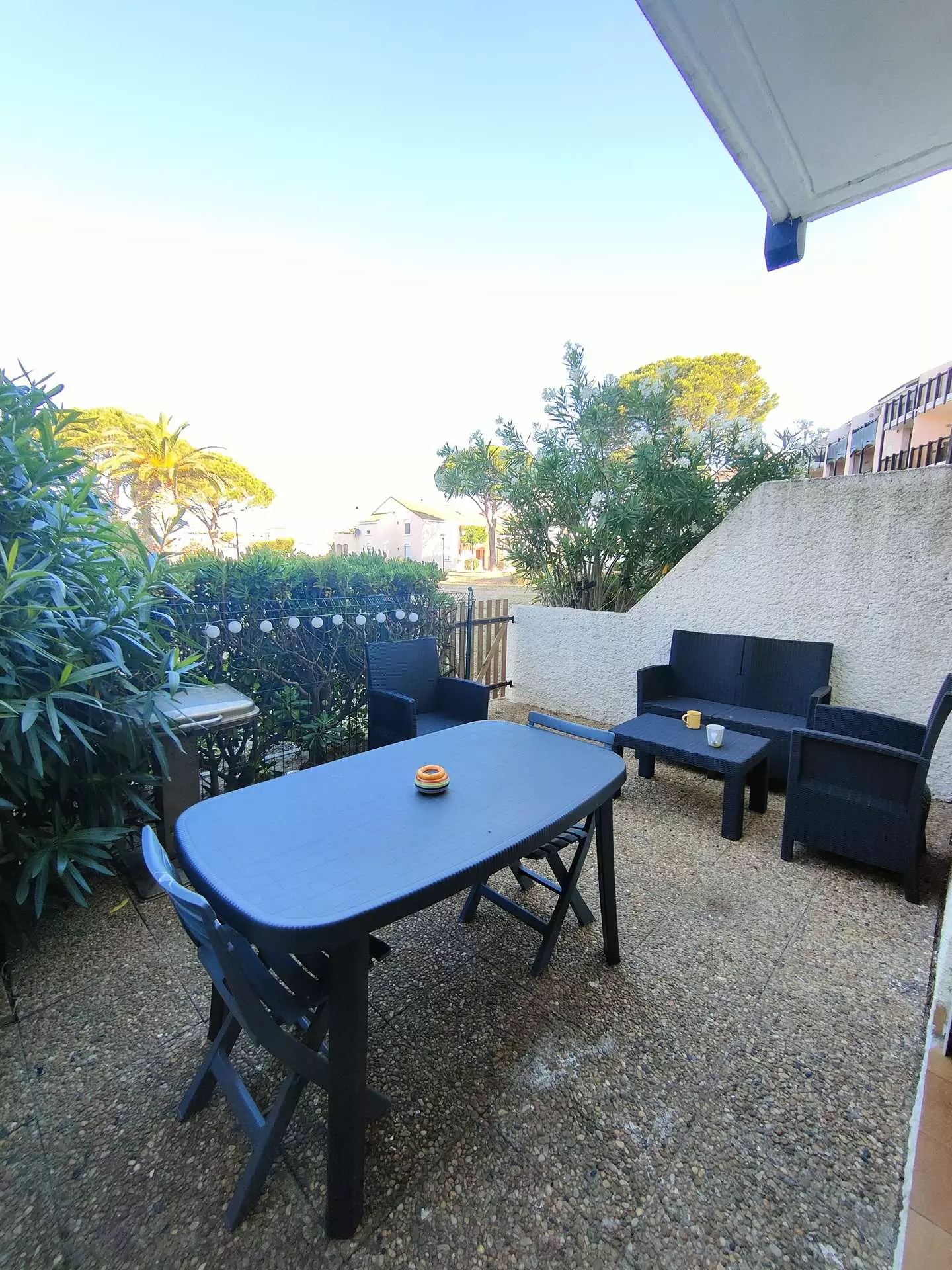 Accommodation with a large outdoor terrace overlooking the wooded park on the edge of the marine lake and the Canigou.