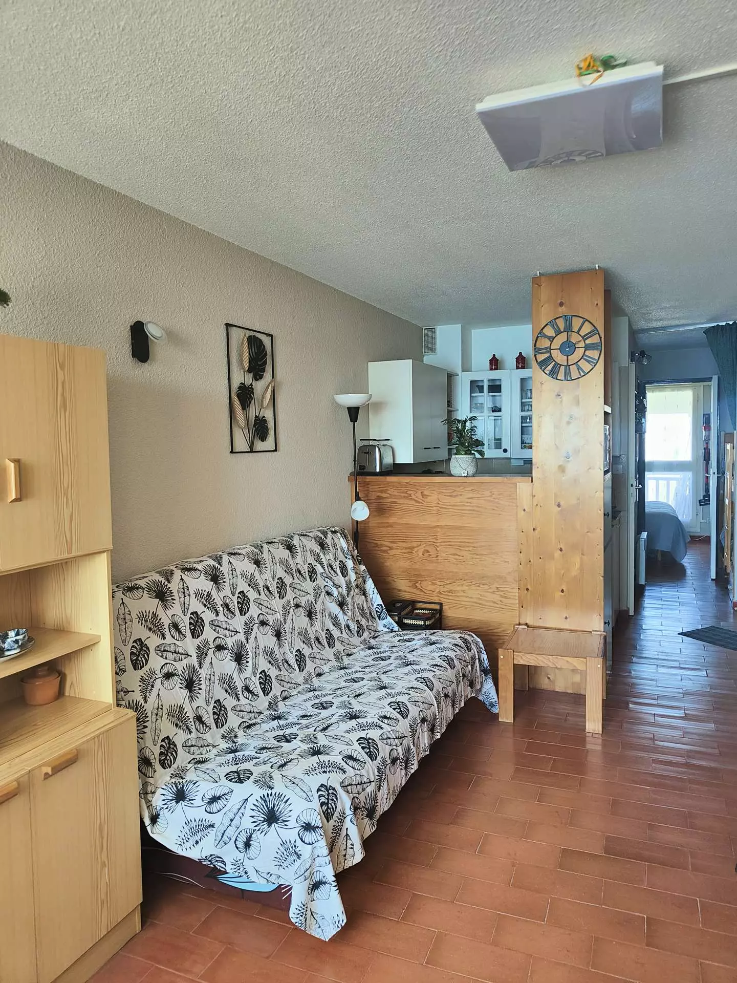 In the living room, a sofa bed can sleep 2 people