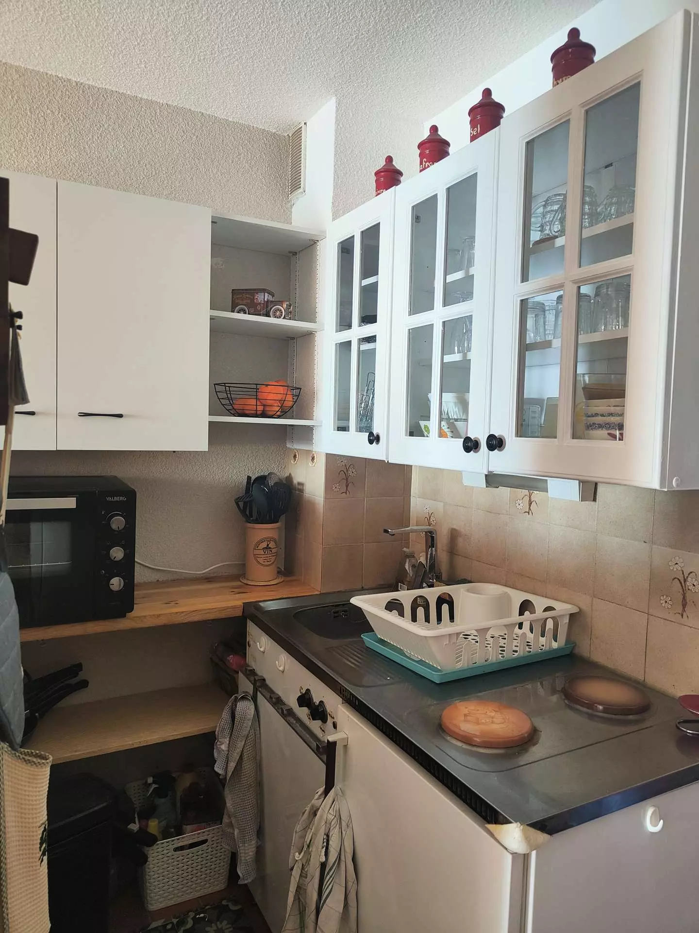 The apartment is functional, it has several storage cupboards.