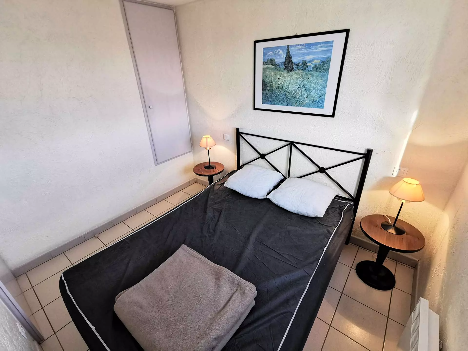 - A bedroom with a double bed