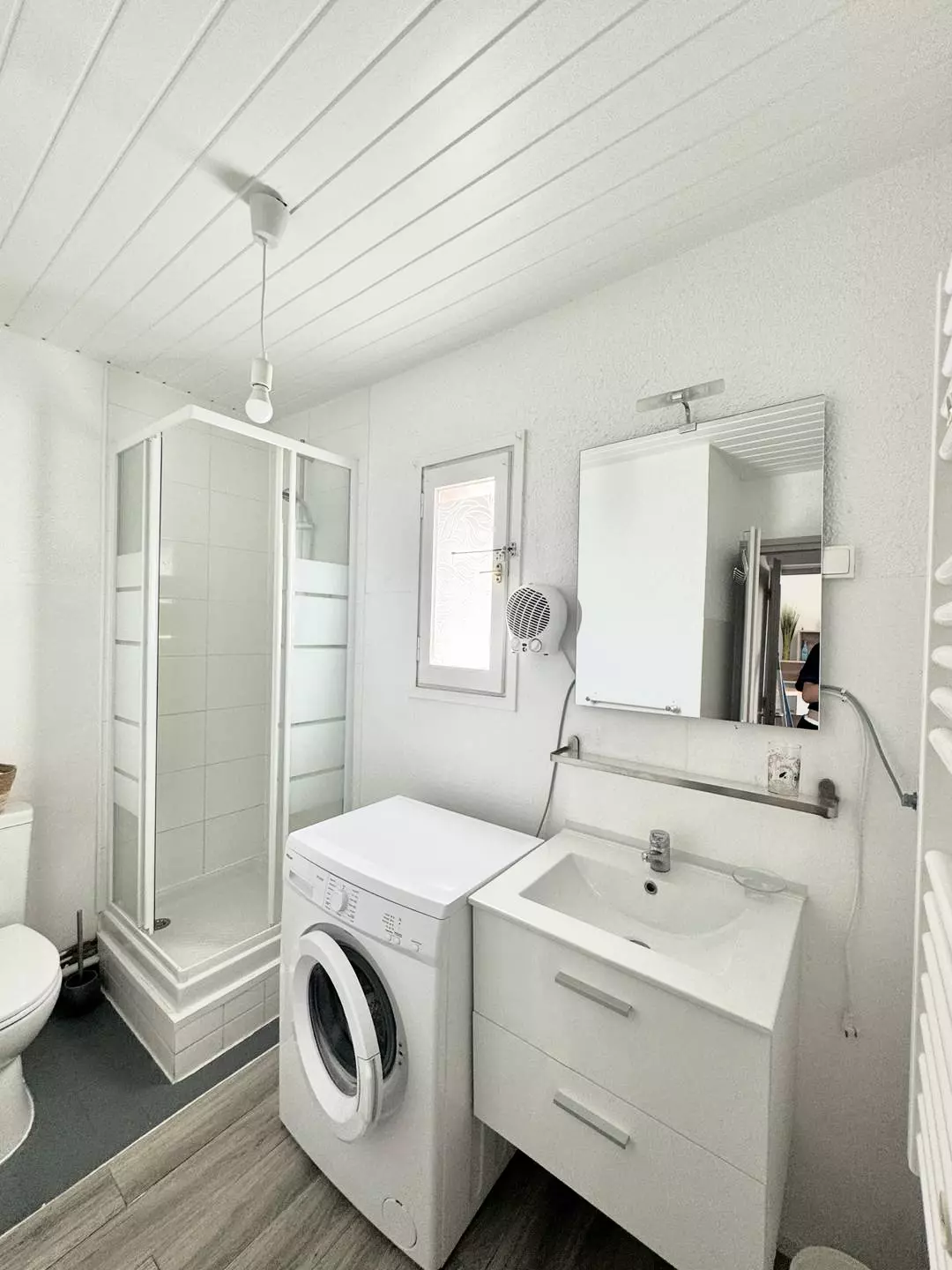 Consisting of a main living room with a double sofa bed, television, and air conditioning. A fully equipped kitchen with a microwave, ceramic hob, and washing machine.