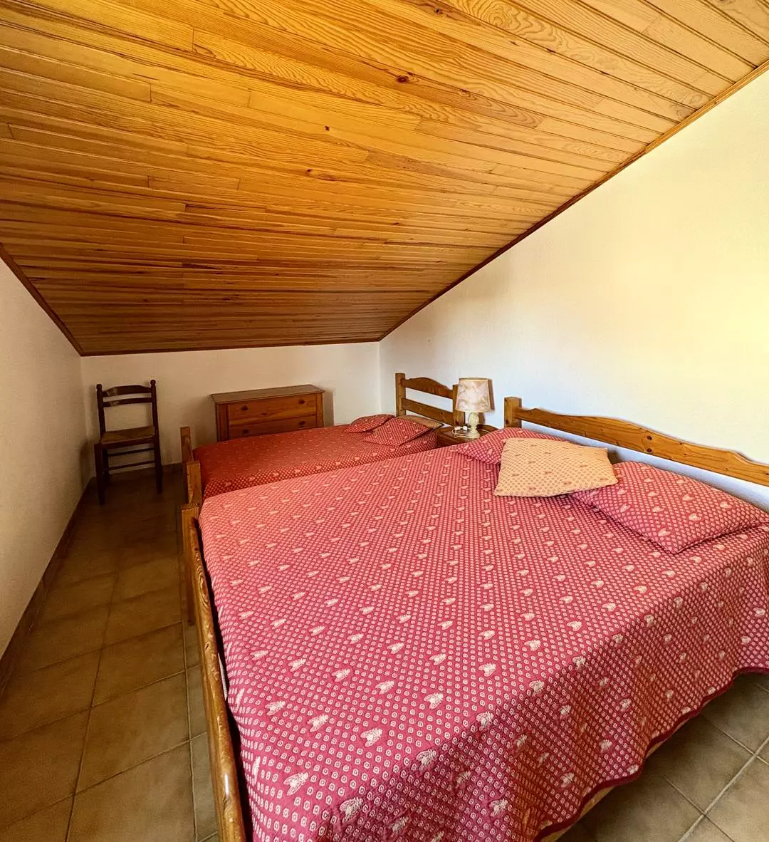 Upstairs, a bedroom with a 140 cm bed, a second with a 90 cm bed and a 140 cm bed.