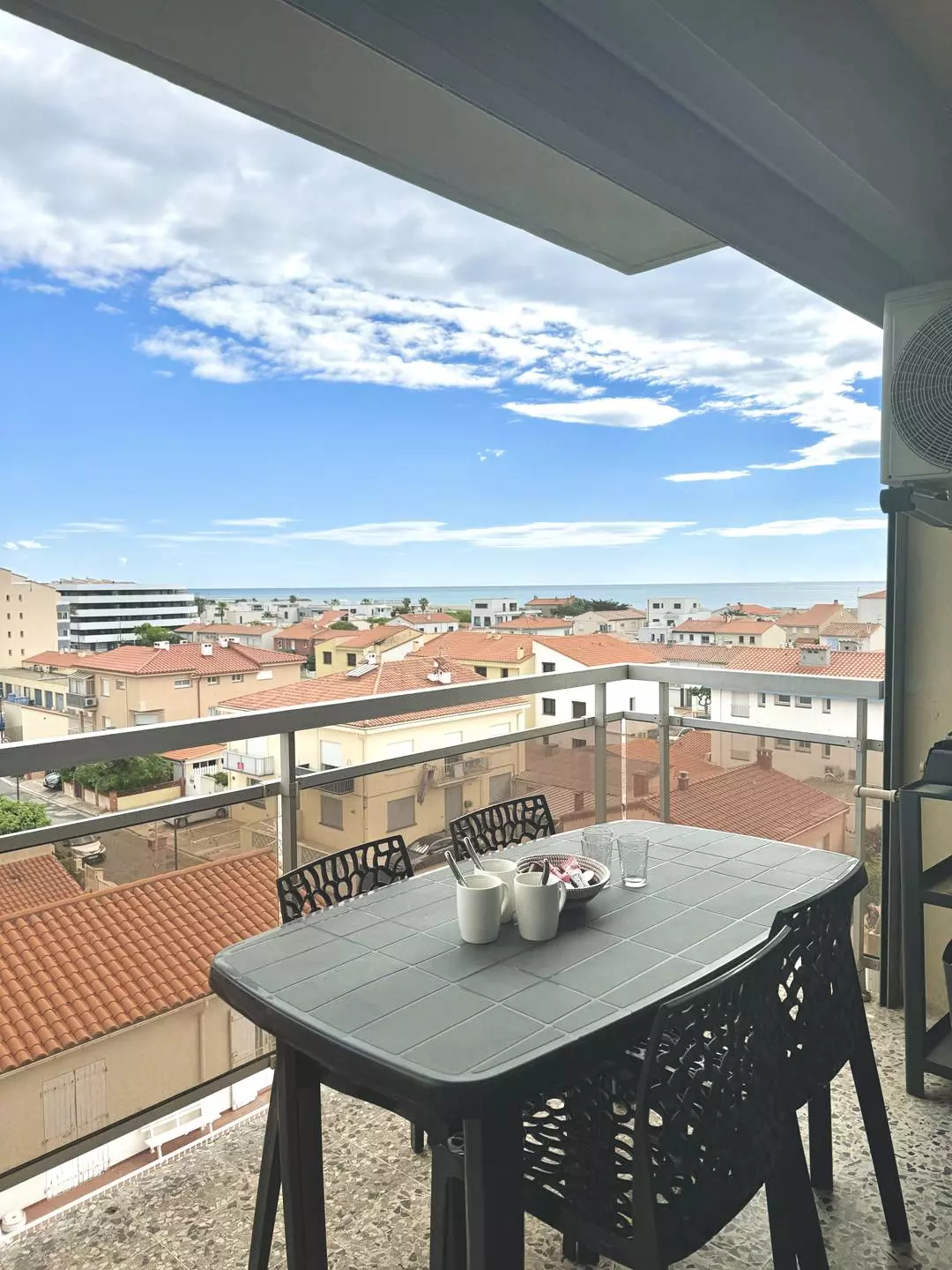 Terrace with garden furniture, plancha, air conditioning, side sea view.