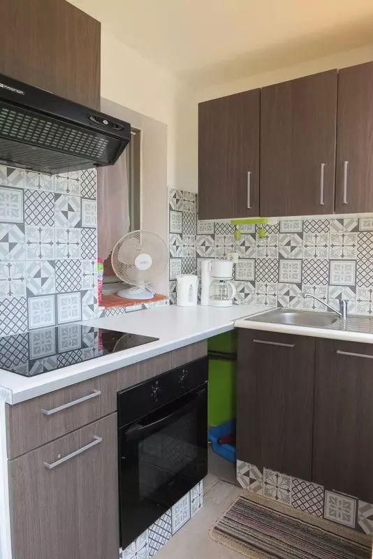 Located on the 1st floor, direct entrance into the living room; kitchen area: electric hob, microwave, fridge-freezer, extractor hood.