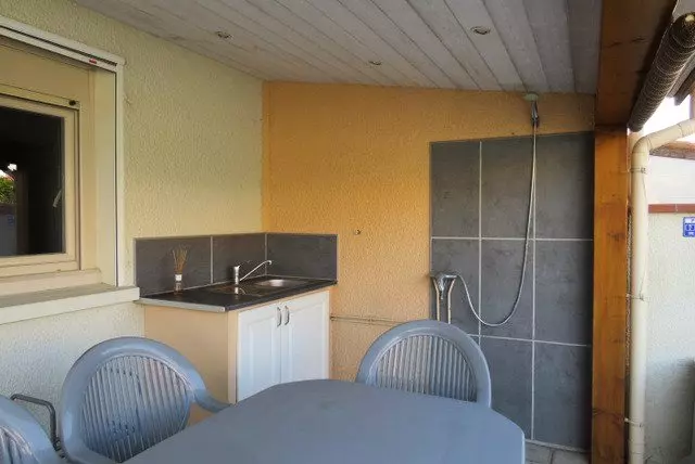 Large terrace with garden furniture, barbecue, outdoor shower -