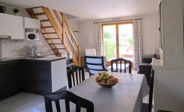 located 1 km from the beach and the center, equipped for 5 people located on the ground floor, consisting of a main room / living room with sofa television, a fitted kitchen, microwave, ceramic hob, dishwasher, washing machine.