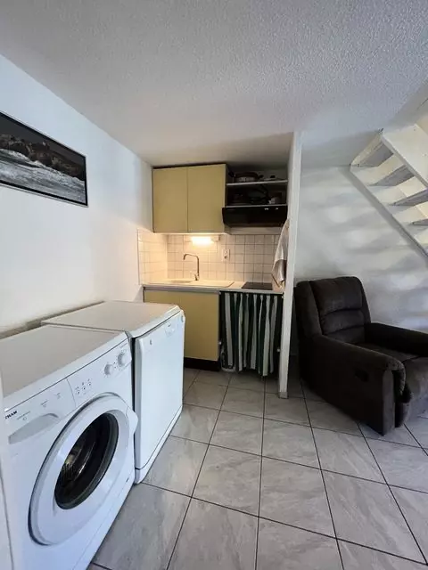 Equipped kitchen area, mini oven, microwave, fridge freezer, washing machine, dishwasher.