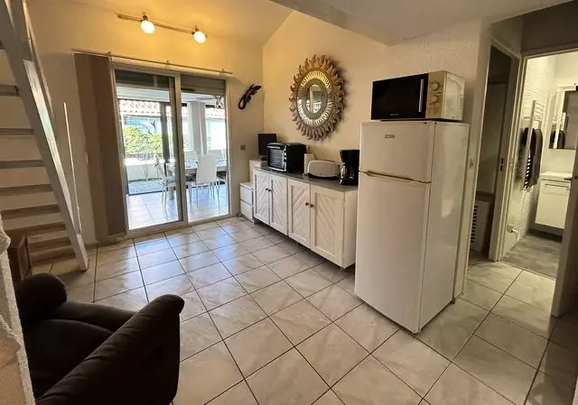 4AM21 - Le Barcarès - Maisonette Apartment Mezzanine - Les Amandines residence in the village area, approximately 900 m from the beach, equipped for 4 people. Beach club and entertainment in the village square. Funfair nearby for children and parents alike.