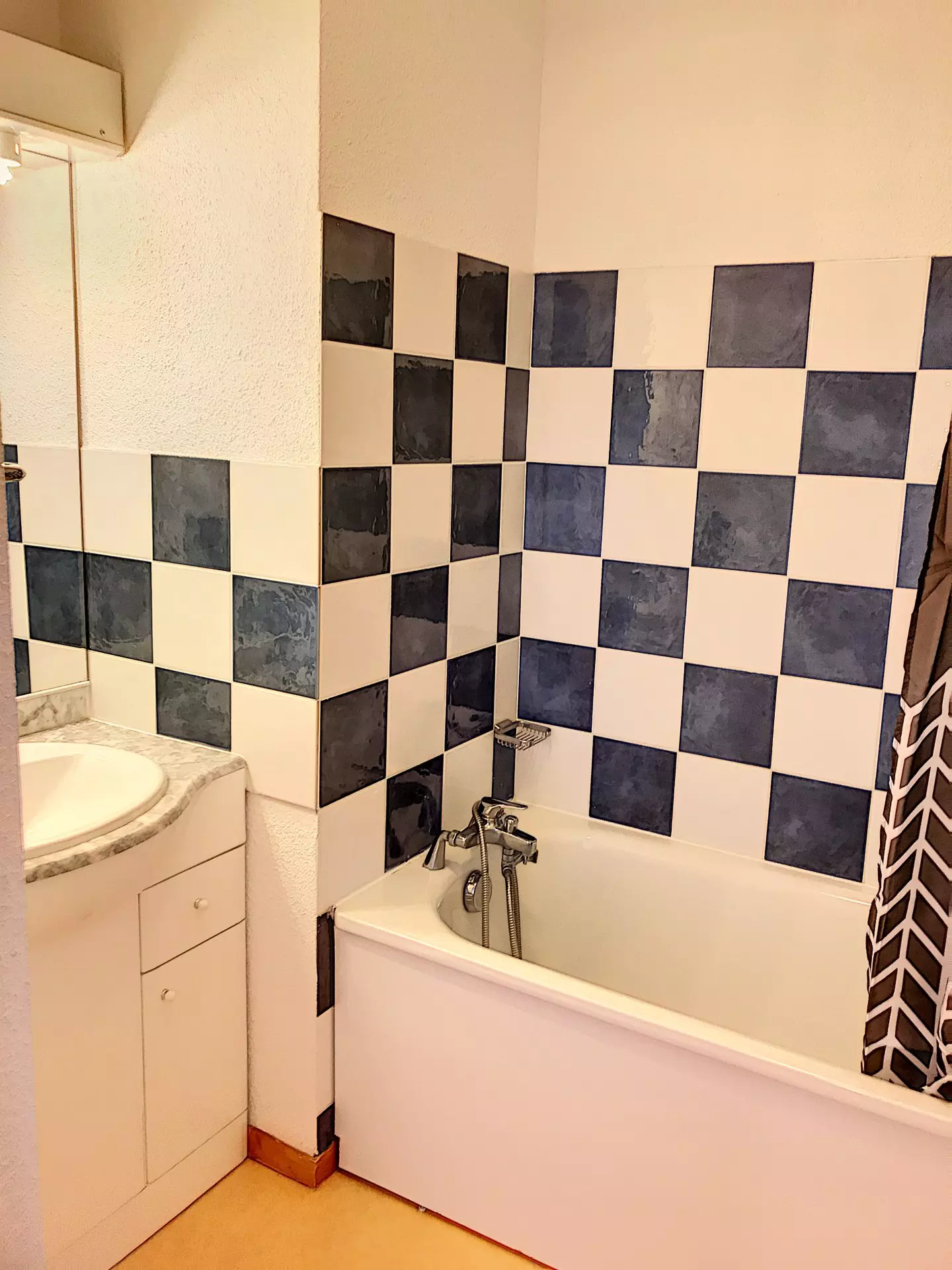 Shops and chairlift 100 m away.
