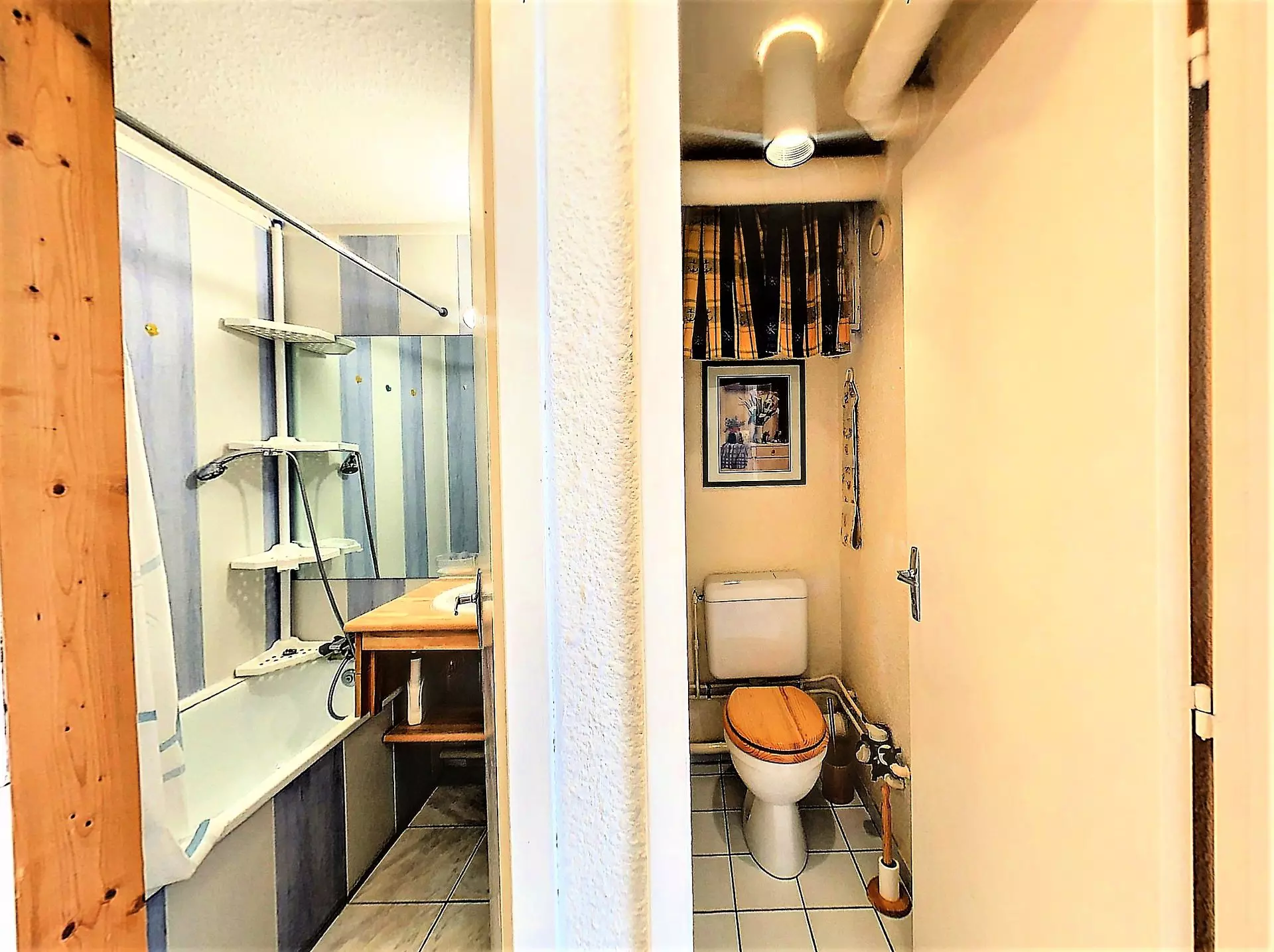 Beautiful apartment comprising an entrance with a large storage area, bathroom, separate toilet, a mountain corner with bunk beds, closed by a curtain, a fully renovated kitchen area equipped with, vitro hob, dishwasher, mini oven, microwave, filter coffee maker. The living room is equipped with a 140 cm sofa bed for 2 people, TV, a beautiful table that can accommodate 6 guests and a bedroom with a 140 cm bed and a small dressing room.