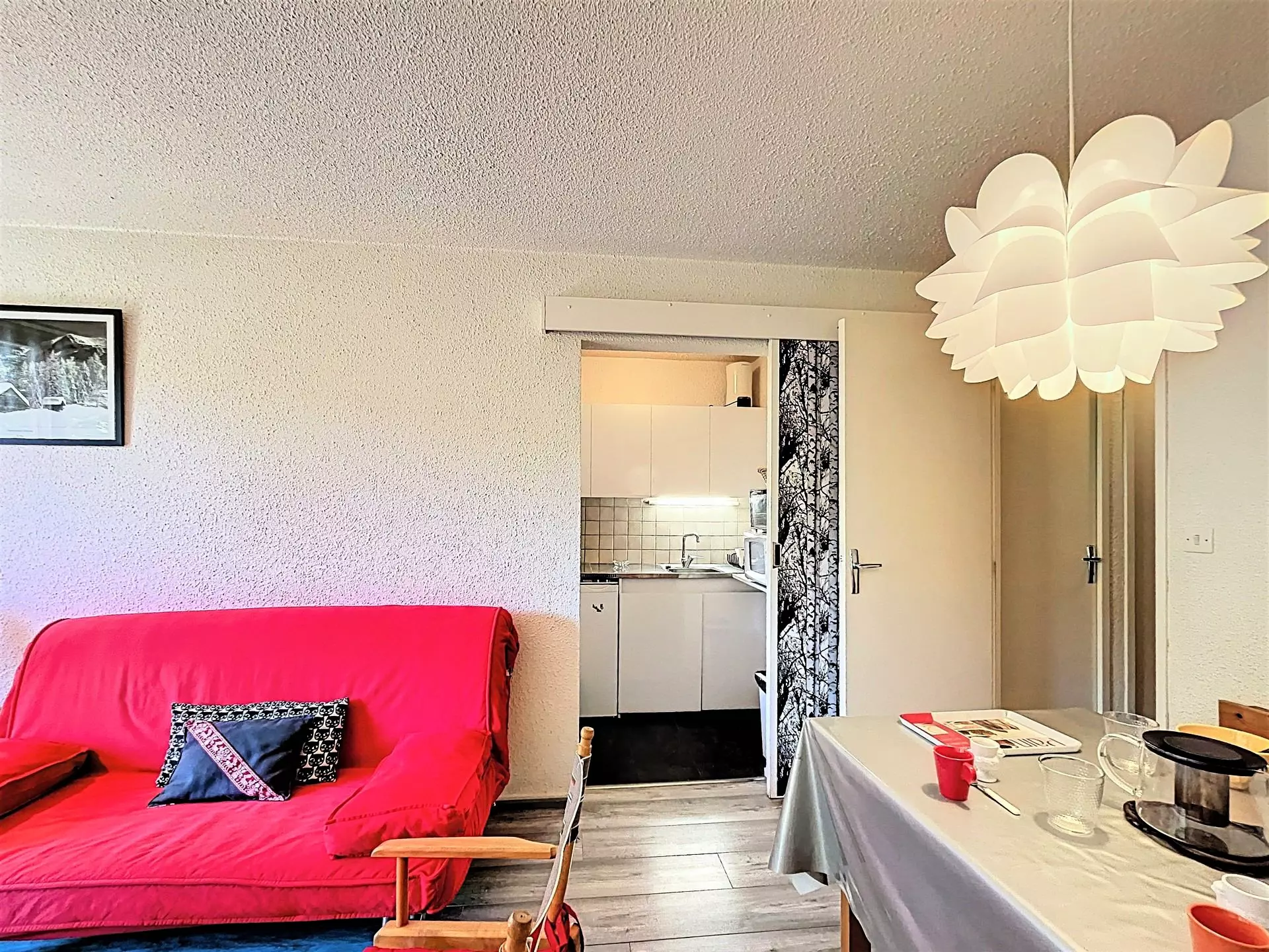 28m² studio, for 4/5 people, located in the Orion Residence, on the 3rd floor, at the foot of the La Voie Lactée chairlift, south-facing balcony, view of the slopes.