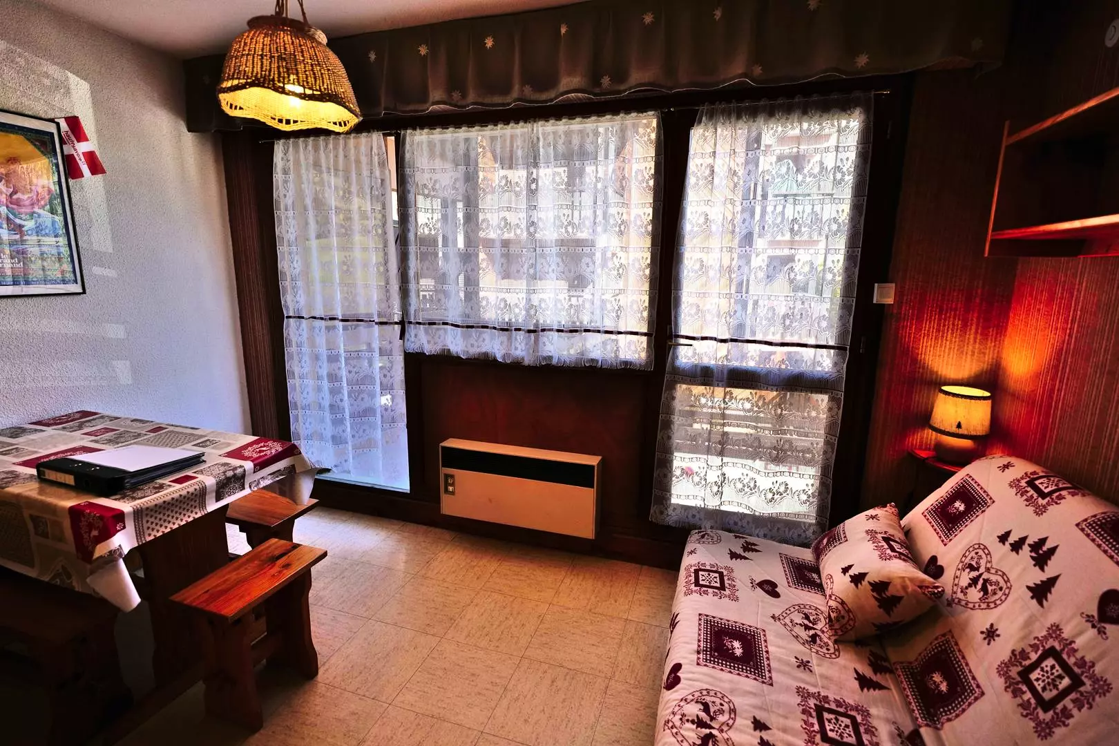 Pleasant studio + mountain corner for 4 people, located on the 1st floor of the CHALET DE LESSY A residence, in the quiet district of Samance, at the top of the Chinaillon resort, offering an incredible view of the ski area.