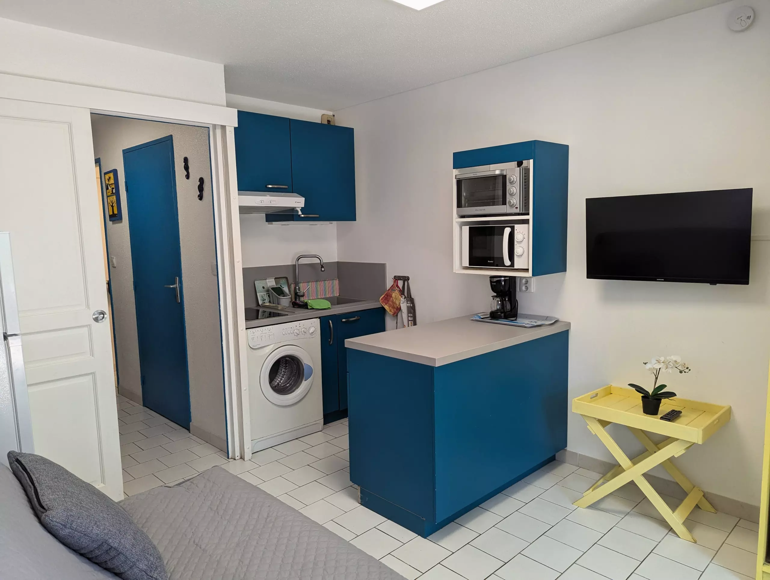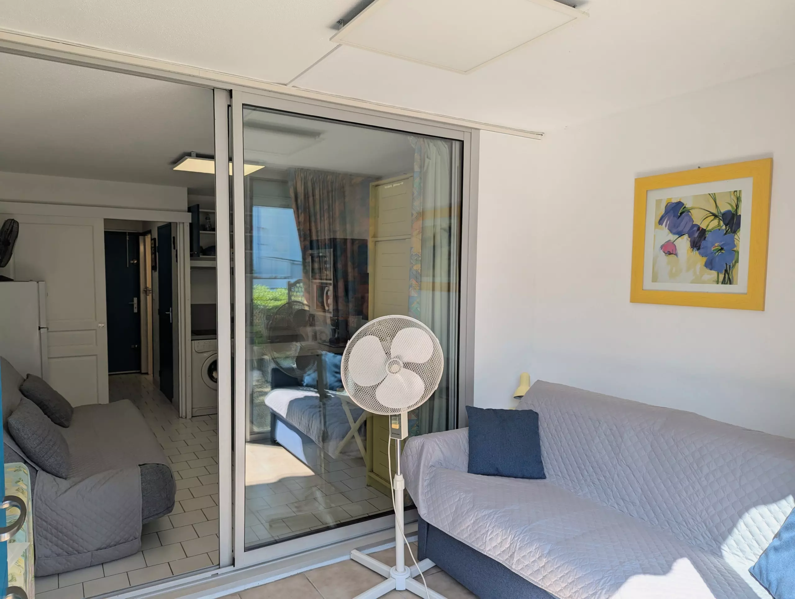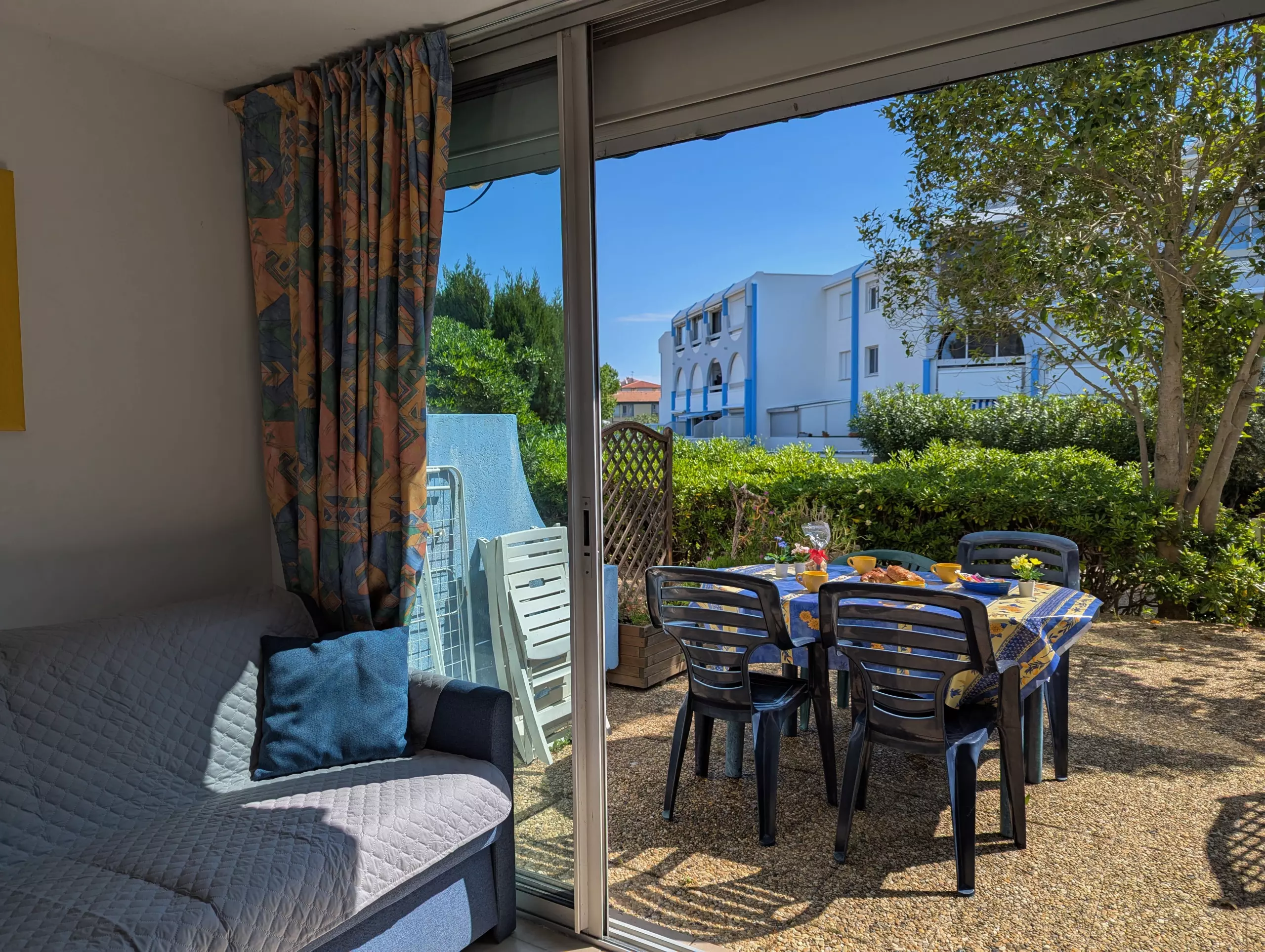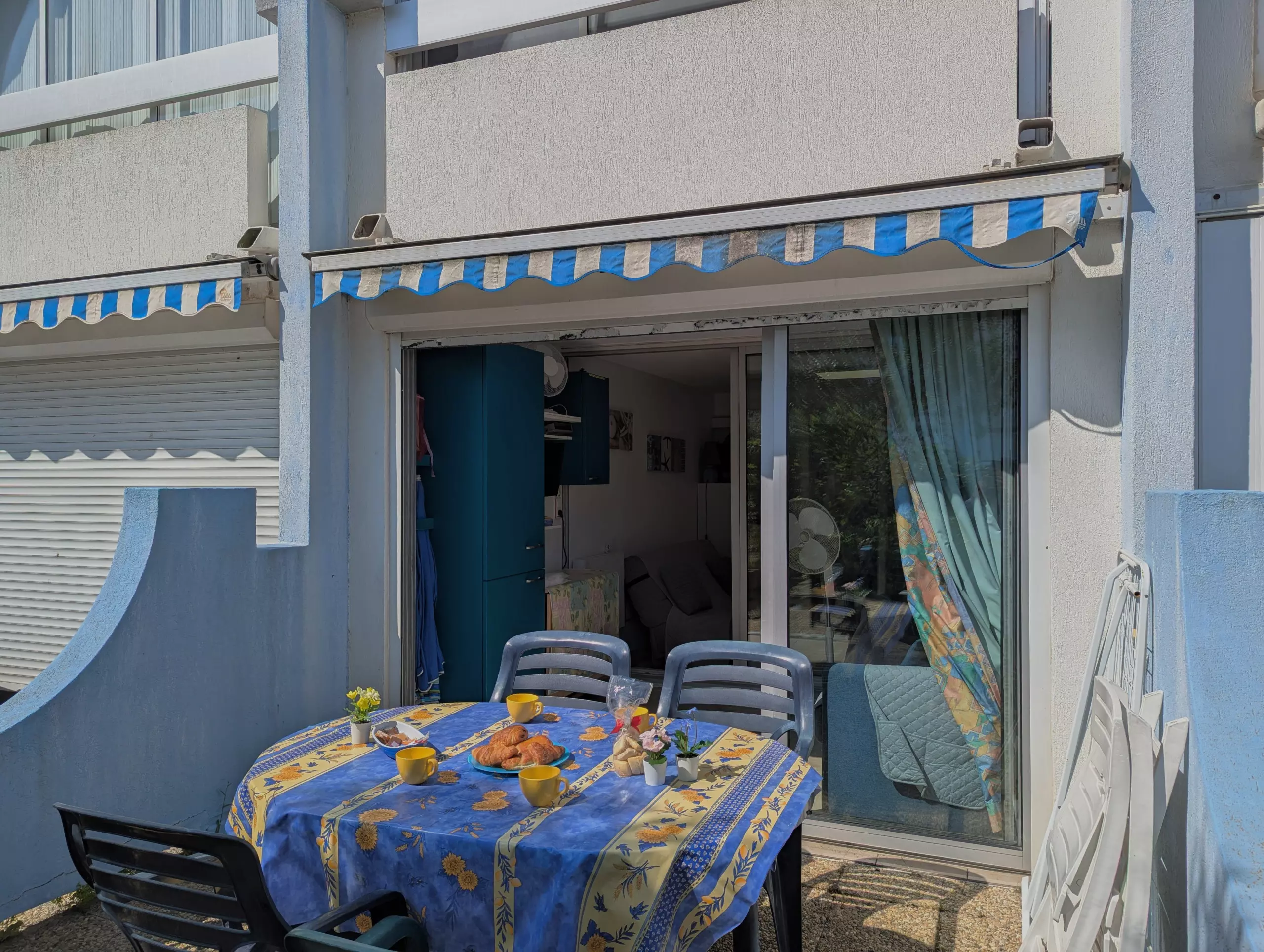 Pleasant ground floor studio with its large terrace, very well equipped, ideal for family holidays in Grau-du-roi; direct access to the two swimming pools (open from June 15 to September 15) of the residence.