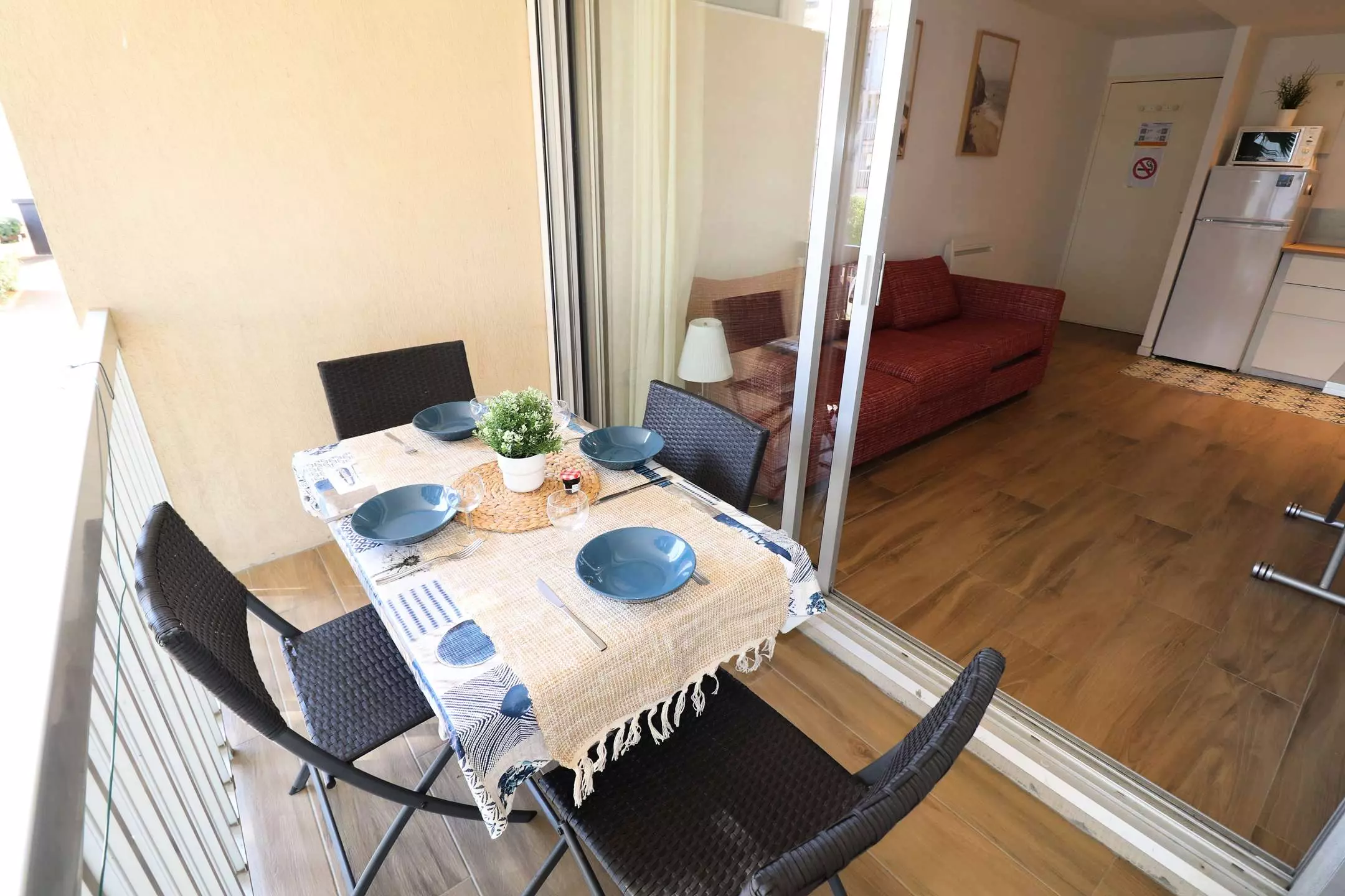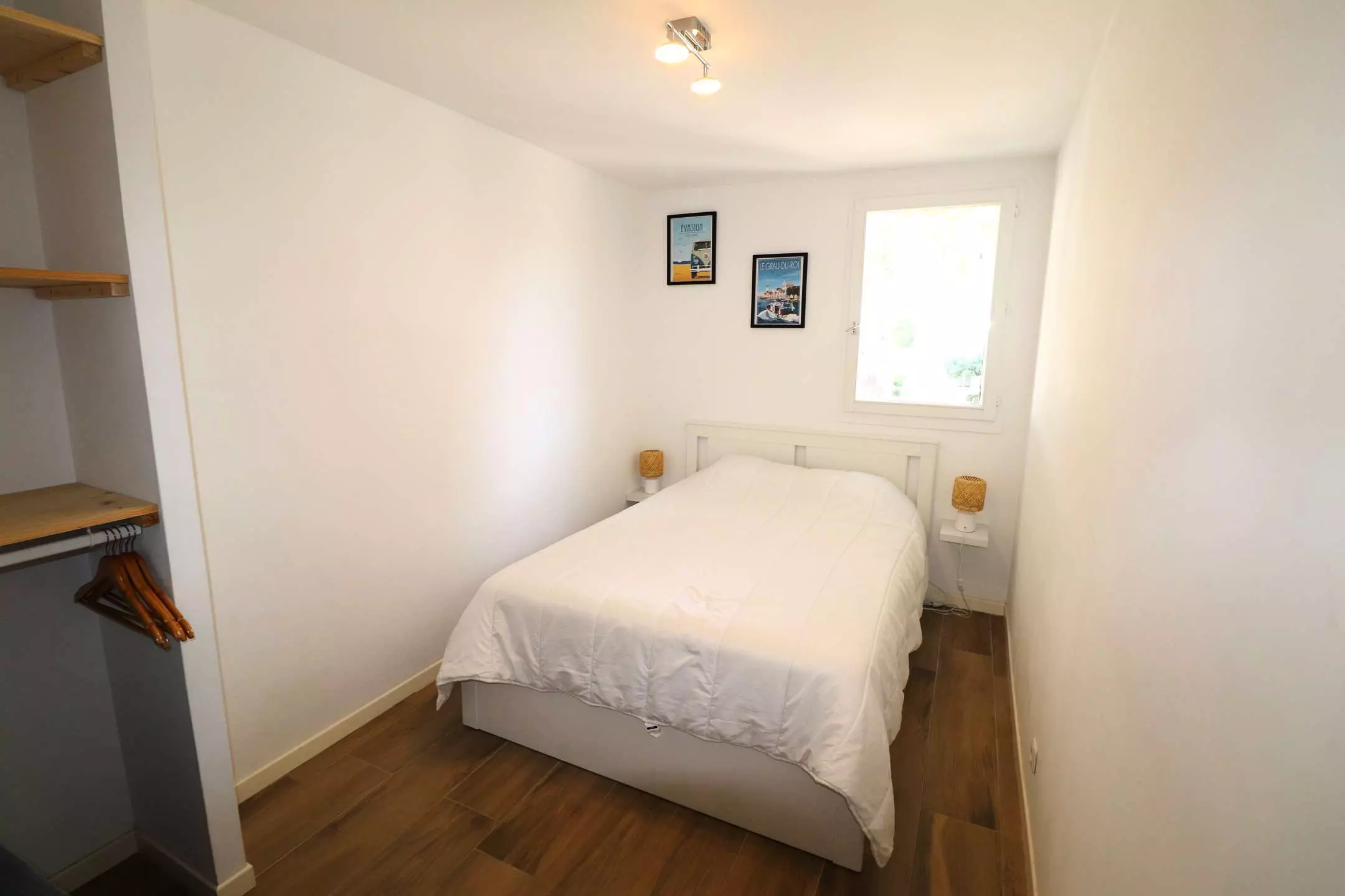 Residence LOS AMIGOS 1 - 2 rooms Cabin on the 1st floor for 4 people, open view and well located 250m from the beach and 300m from the shops. It includes a fully equipped kitchen, washing machine, bright living room with sofa bed opening onto the outdoor terrace with garden furniture, bathroom, Italian shower and WC, a bedroom with a double bed with window and dressing room.