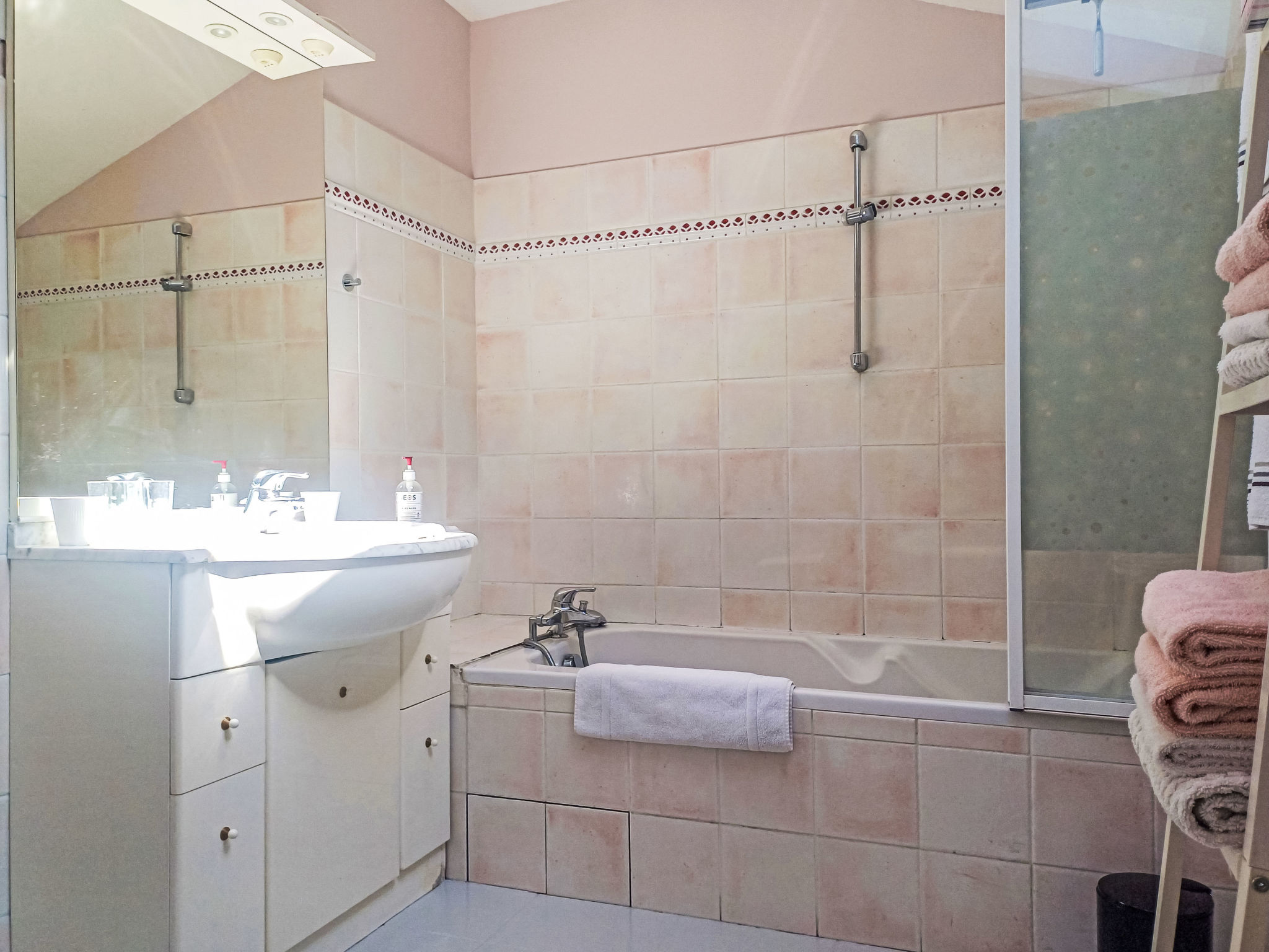 4-room villa 155 m2. Spacious, comfortable and stylish furnishings: living/dining room with TV (flat screen). Exit to the garden, to the terrace. 1 room with 1 french bed (160 cm, length 200 cm), shower and double hand-basin. Exit to the garden, to the terrace. Kitchen (oven, dishwasher, 4 induction hot plates, toaster, kettle, microwave, freezer, electric coffee machine, Capsules for coffee machine (Nespresso) extra). Sep. WC. Air-conditioning. Upper floor: 1 room with 1 french bed (160 cm, length 200 cm). Exit to the balcony. 1 room with 1 french bed (140 cm, length 190 cm). Bathroom, sep. WC. Terrace 9 m2, south facing position terrace 11 m2, south facing position, garden 350 m2. Terrace furniture, electric barbecue, deck chairs (4). Facilities: washing machine, dryer, iron, hair dryer. Internet (WiFi, free). Parking (fenced 2 cars). Please note: suitable for families. Non-smoking house. Smoke alarm. Offer by a private individual according to Art. 155, IV of CGI. 64024004663A6