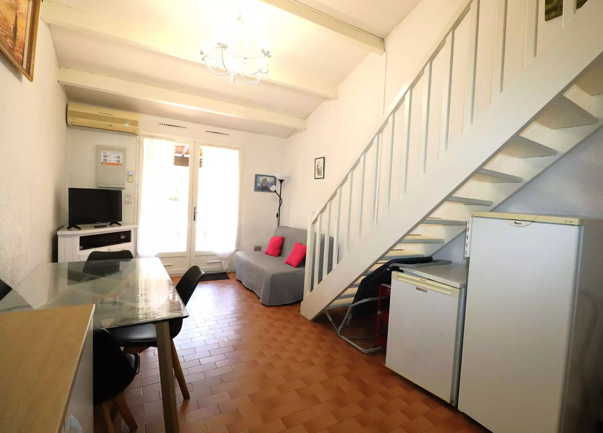 BEACH HOUSES 2 - Close to the beach and shops, this 2-room holiday cottage with a mezzanine offers a large, sunny terrace in a very pleasant and privileged setting. It features a kitchen area with a washing machine and an air-conditioned living area.