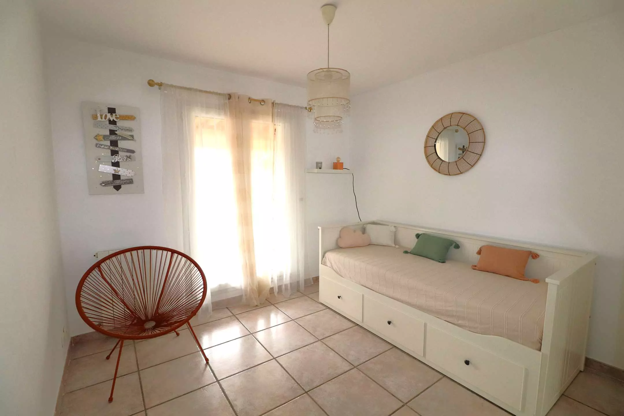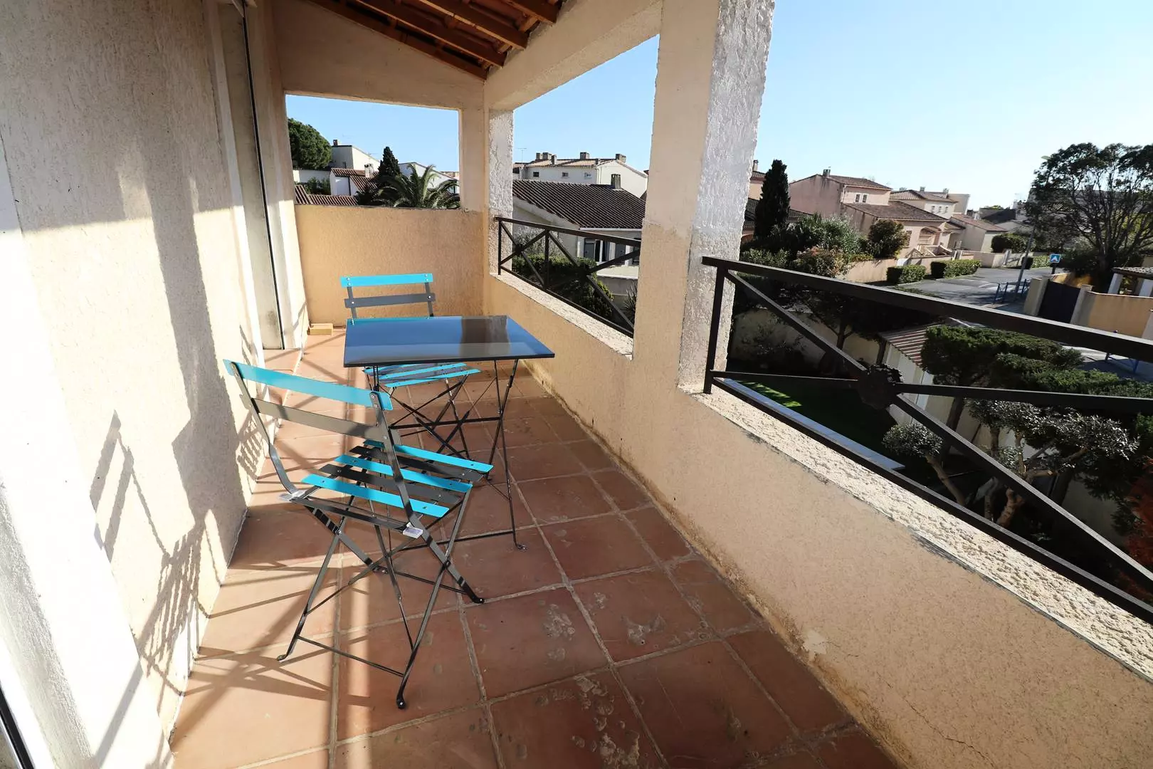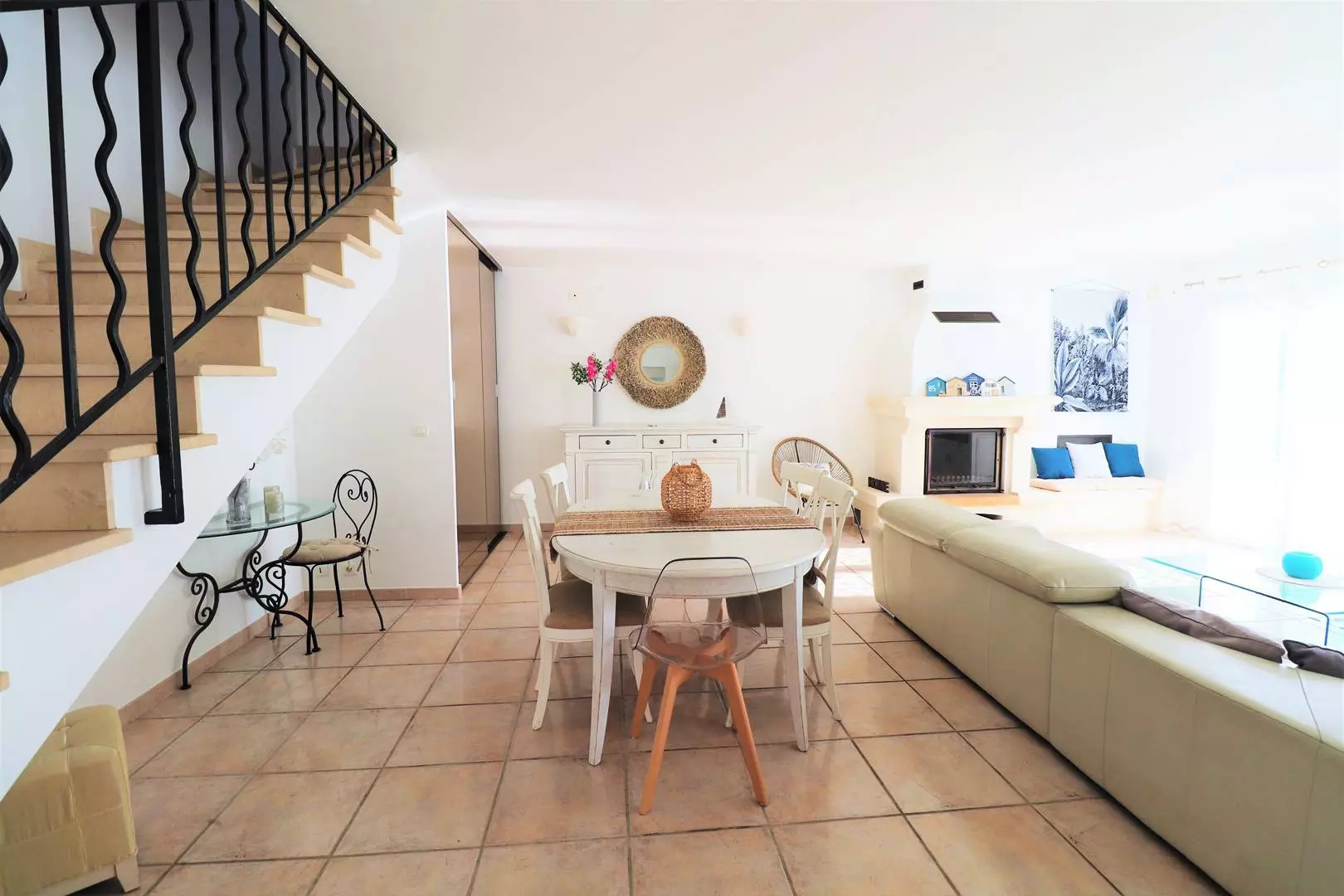 This villa is composed on the ground floor of an entrance hall, equipped kitchen (dishwasher, oven, microwave, vitro hob) opening onto a furnished terrace. Living room of 41m² opening onto the outdoor terrace and the swimming pool, a bedroom with 2 single beds and cupboards, a bedroom with 1 double bed and cupboards. Bathroom, separate toilet. Upstairs: shower room, separate toilet, a bedroom with a large cupboard and a double bed, another bedroom with 2 single beds and cupboards. The 2 bedrooms open onto a 10m² outdoor terrace. Air conditioning in each bedroom except one with fan. 2 indoor parking spaces and 1 outdoor parking space.