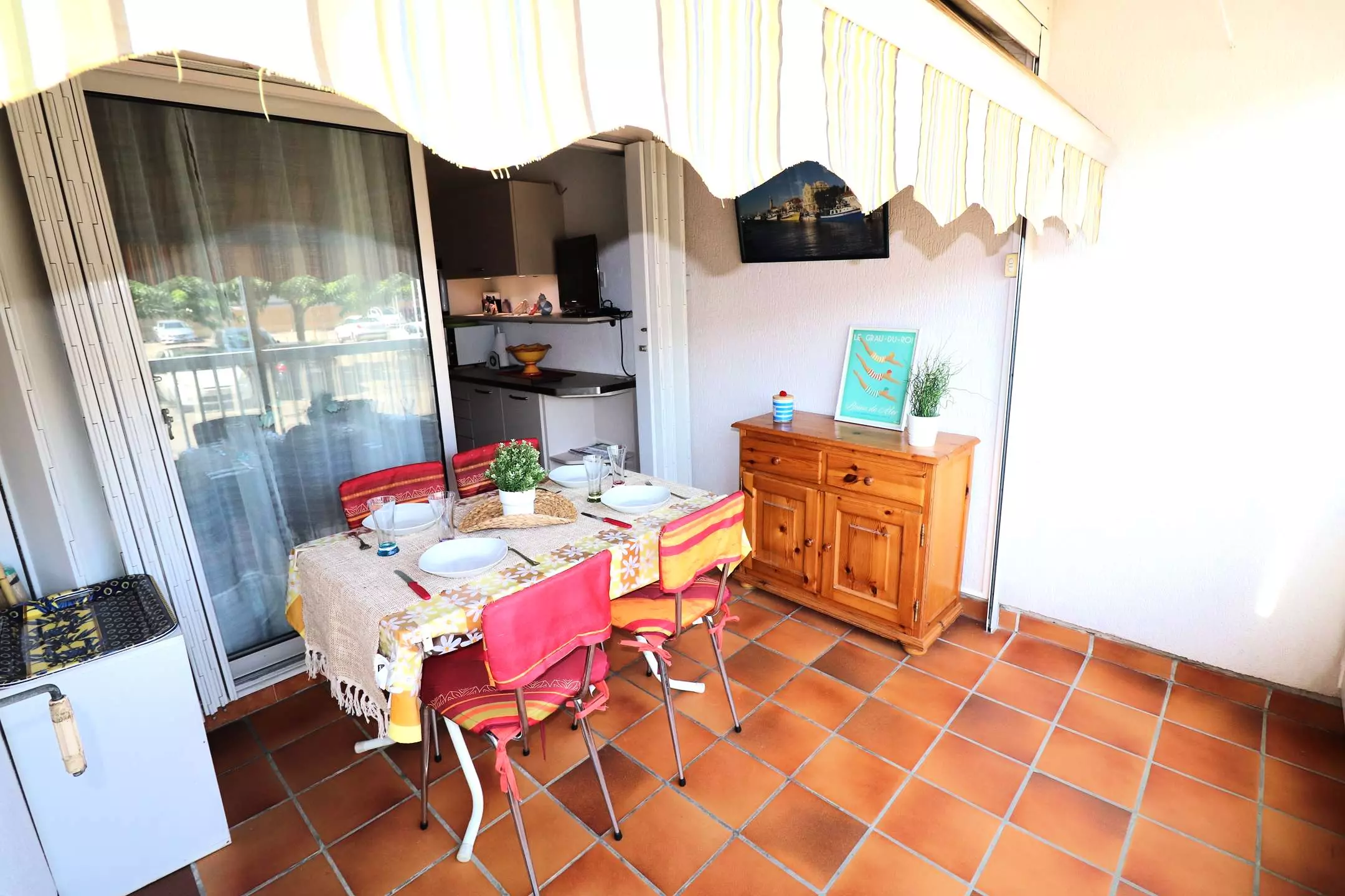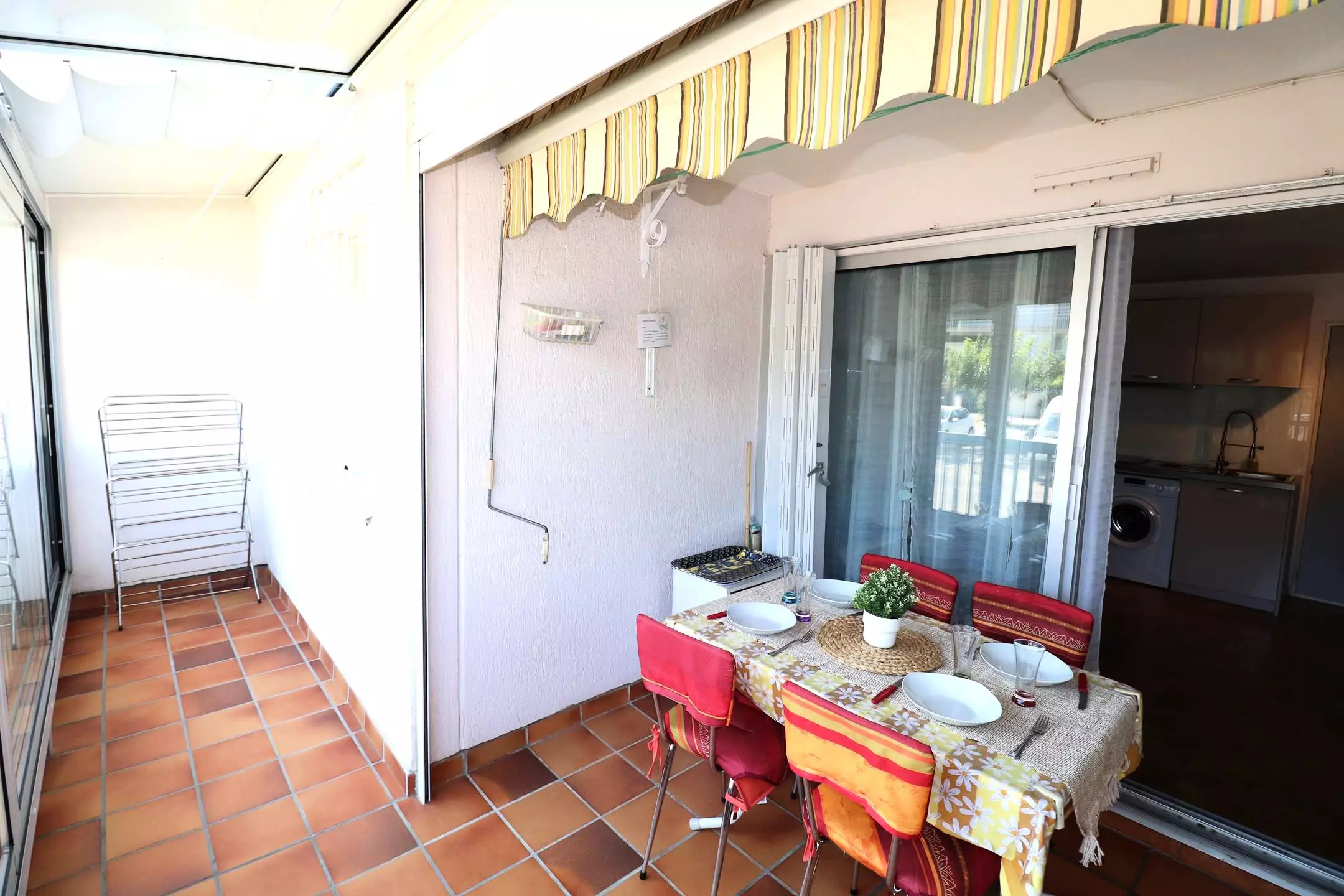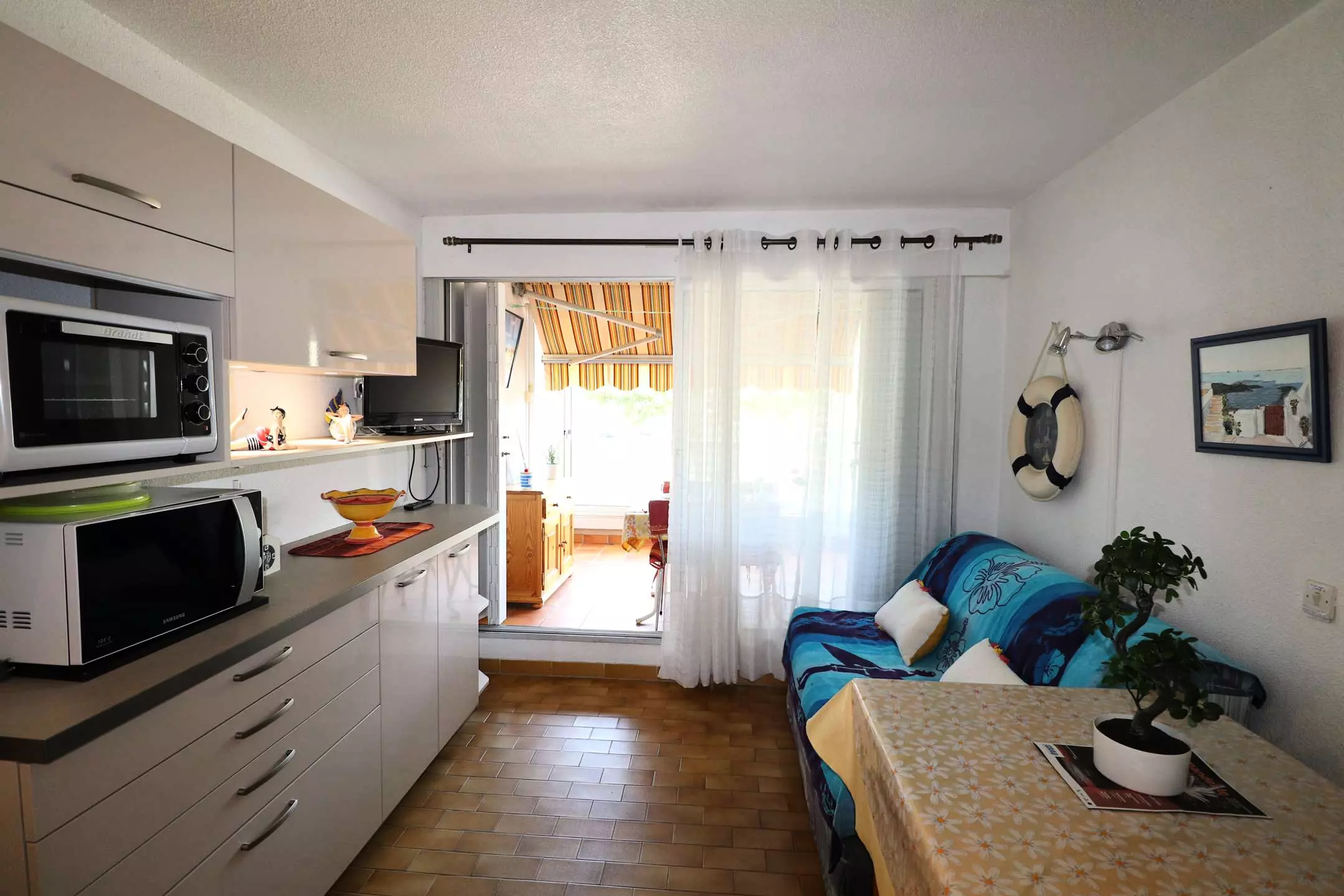 CITADELLE DU SOLEIL Residence - On the raised ground floor, come and spend your vacation in this apartment for 4 people, 350m from the sea and 200m from the shops. It includes a fully equipped kitchen and a living room, a sofa bed for 2 people, a bedroom with a 140cm bed, cupboards and a window, a shower room and separate toilet, a 10m² long terrace with an awning for the sun and a roller shutter.