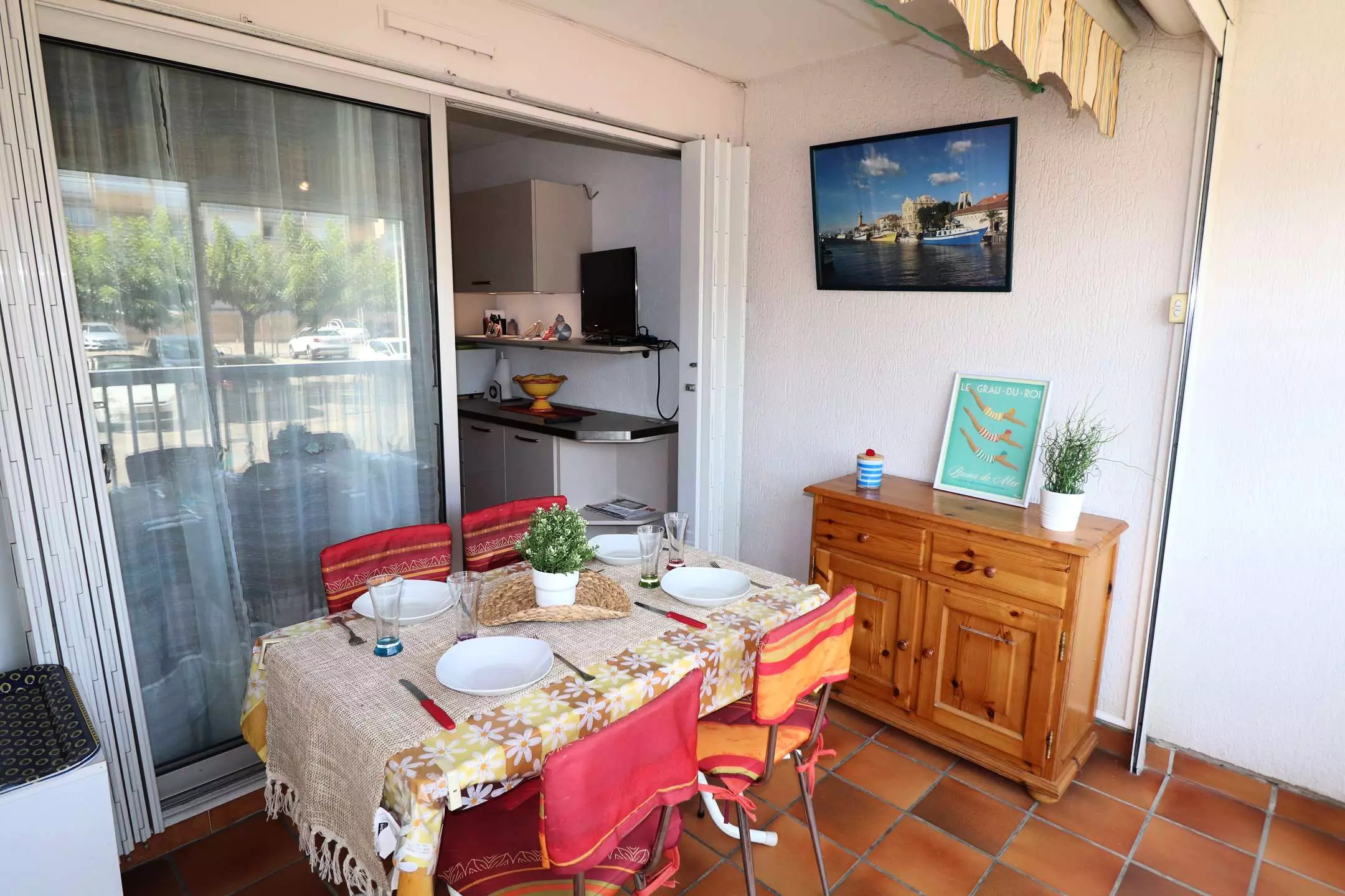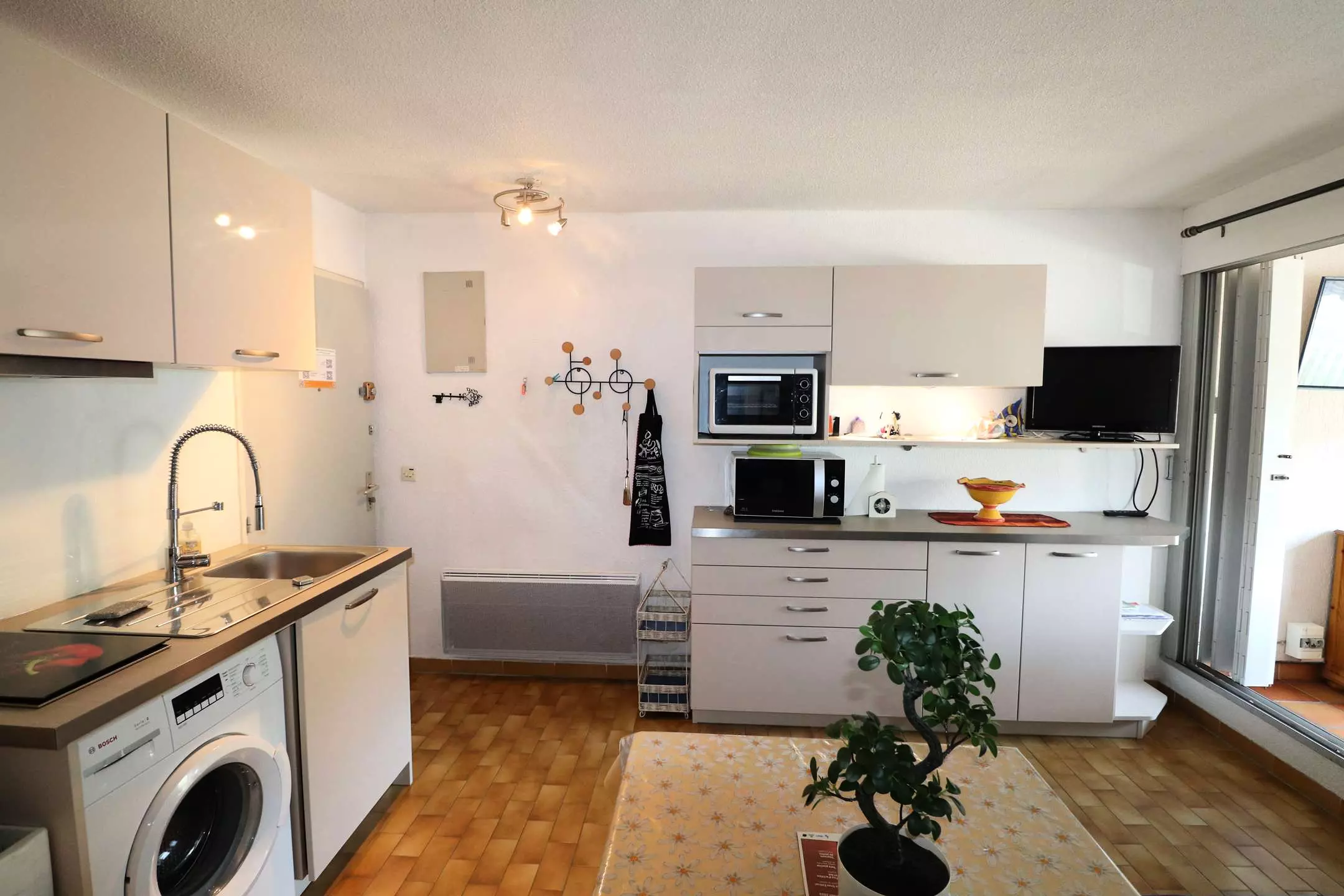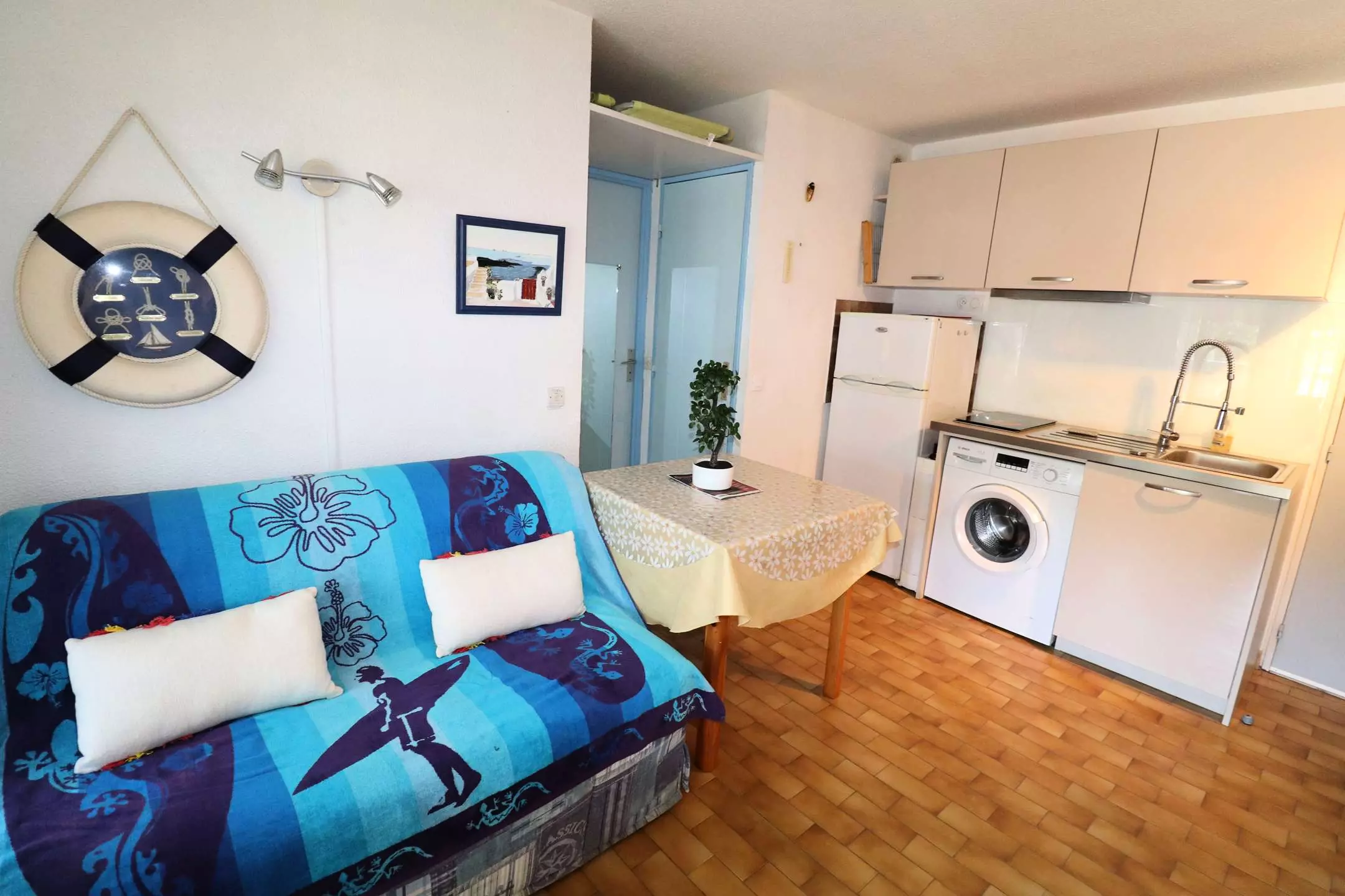 CITADELLE DU SOLEIL Residence - On the raised ground floor, come and spend your vacation in this apartment for 4 people, 350m from the sea and 200m from the shops. It includes a fully equipped kitchen and a living room, a sofa bed for 2 people, a bedroom with a 140cm bed, cupboards and a window, a shower room and separate toilet, a 10m² long terrace with an awning for the sun and a roller shutter.