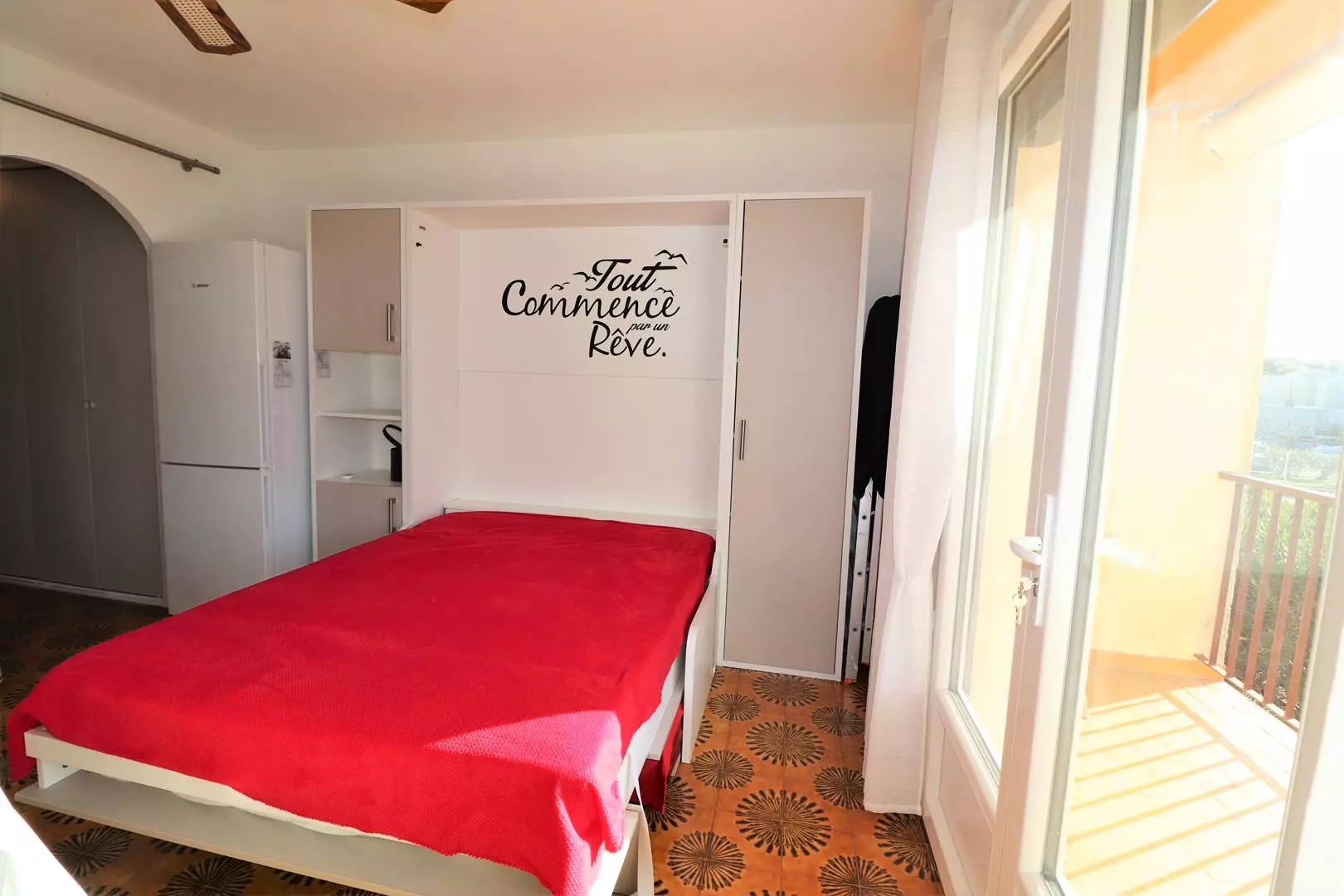 In a small residence called Le Vermeil on the left bank of Grau du Roi, 350m from the sea, 580m from the town center and 300m from the shops, large 32m² studio located on the 1st and top floor.