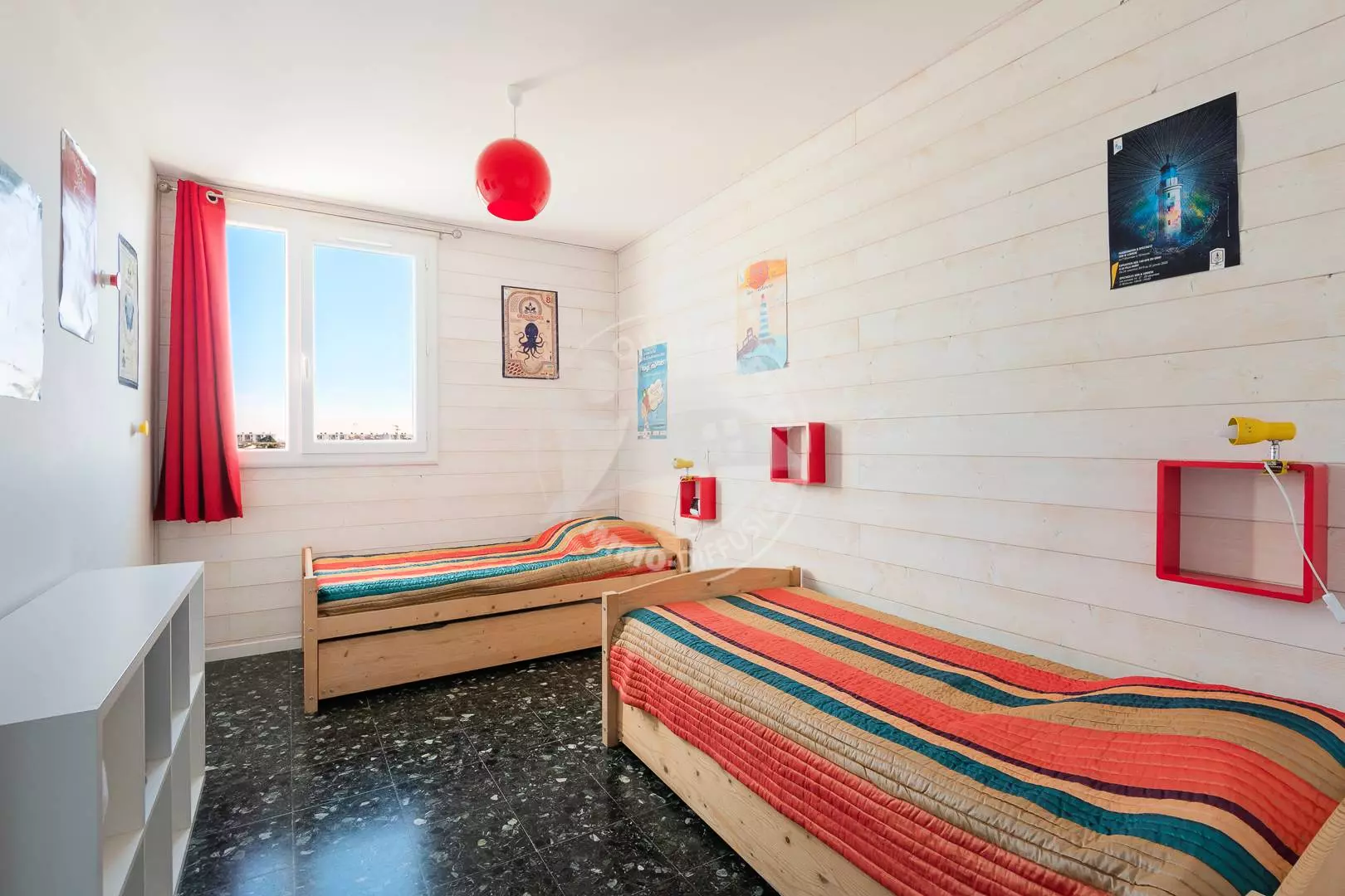 On the 3rd floor with elevator, renovated P3 of 62m² crossing, including a bright and spacious living room with a 140 cm sofa bed, air conditioning, a television and wifi opening onto an 8m² terrace facing southwest with a beautiful view of the Sea (Table and chairs). A fully equipped kitchen (Fridge/freezer, microwave, oven, dishwasher, hob) with a central island. Two bedrooms, one with a 140 cm double bed and the other with 2 single 90 cm beds and a 90 cm pull-out bed. A bathroom with washing machine and a separate toilet. Bicycle storage. Furnished and equipped for 6/7 people. Pets not allowed.
