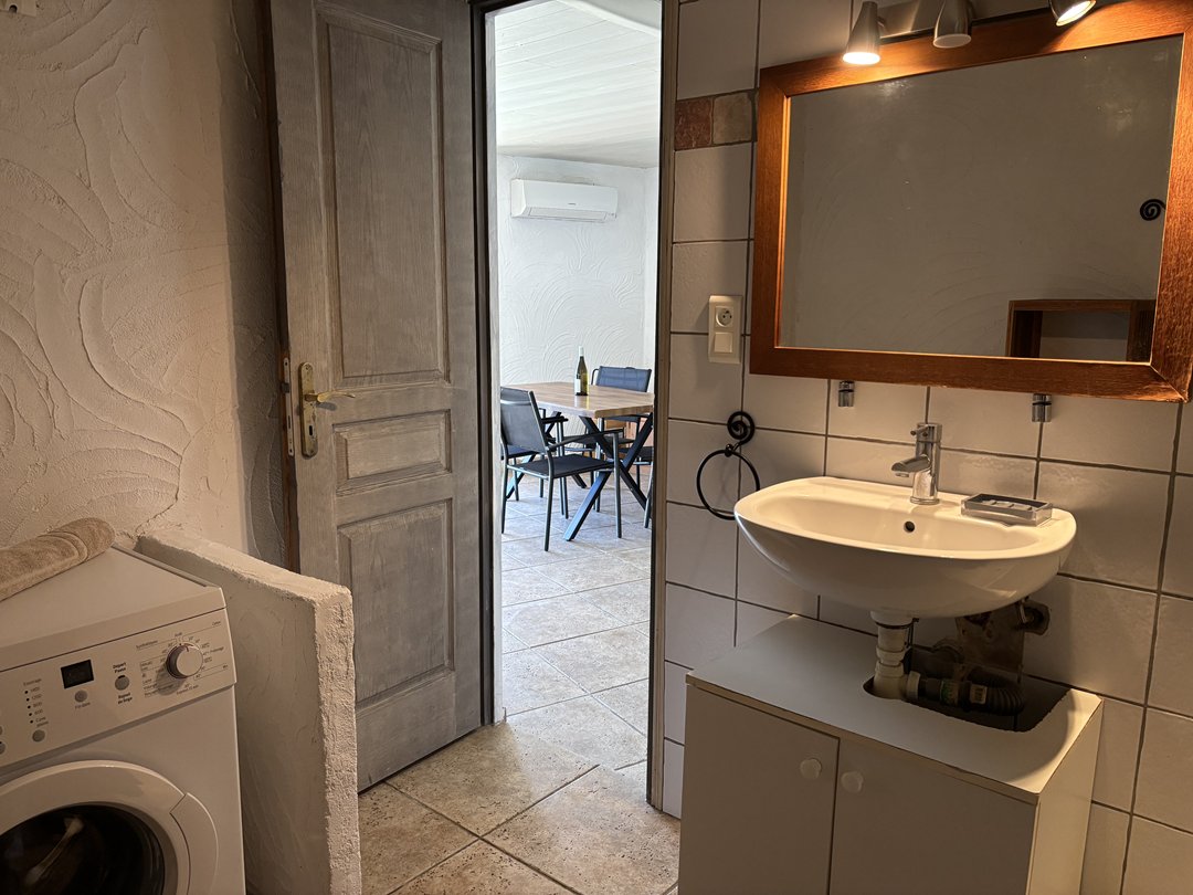 Living room / kitchen - air conditioning: fridge freezer, dishwasher, washing machine, oven, stove (gas), extractor hood, microwave, coffee maker, T.V (French), sofa bed