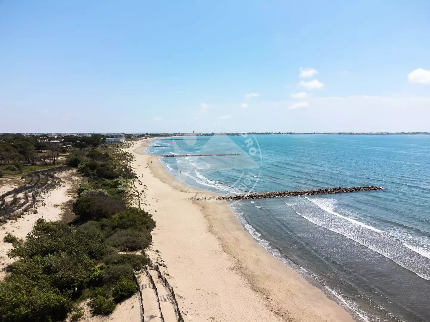 PORT CAMARGUE - SOUTH BEACH - Luxury residence with swimming pool, elevator, direct access to the beach. Spacious and bright 30m² one-bedroom apartment comprising a living room with a 140cm double sofa bed, TV, and air conditioning. Equipped kitchen (fridge/freezer, microwave, hob, oven), one bedroom with a 140cm double bed, with sea view, opening onto the bathroom with toilet. A 12m² south/west facing terrace with magnificent sea view. Private, secure, and numbered parking. Boules pitch and tennis court. Equipped and furnished for 4 people. No pets allowed.