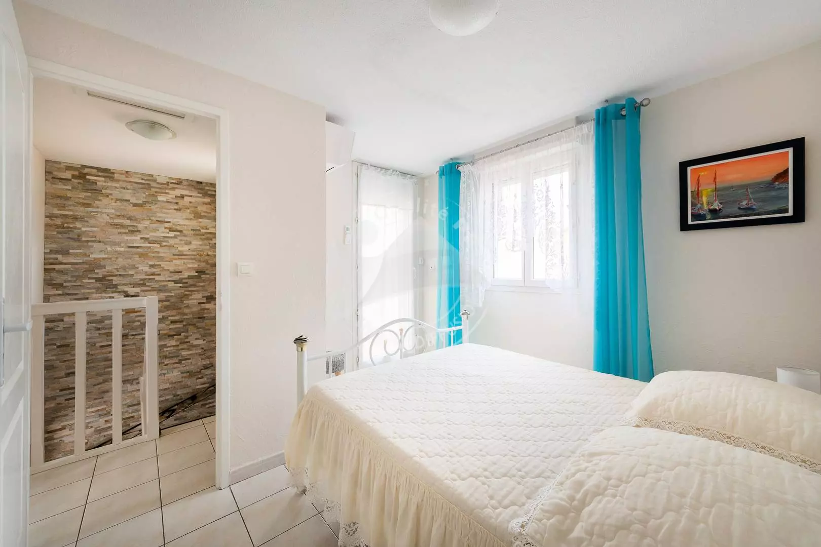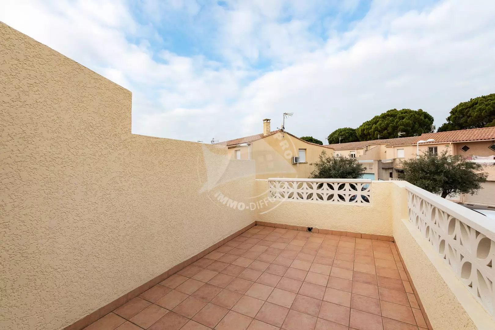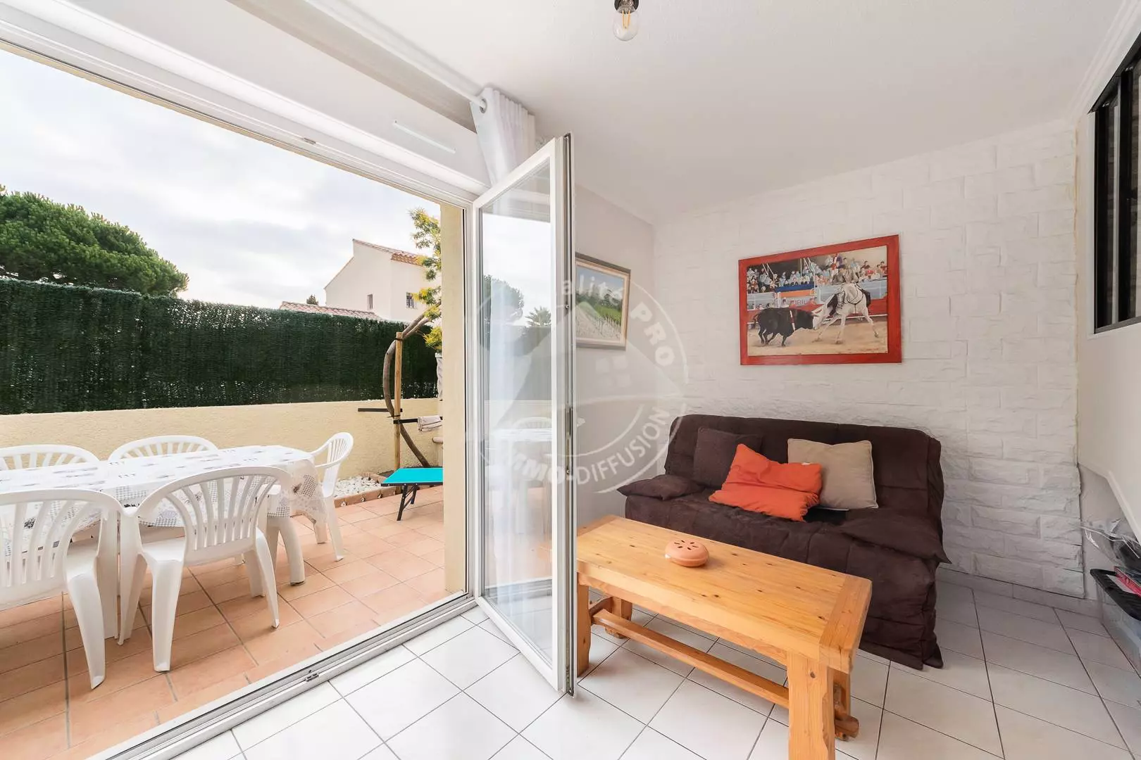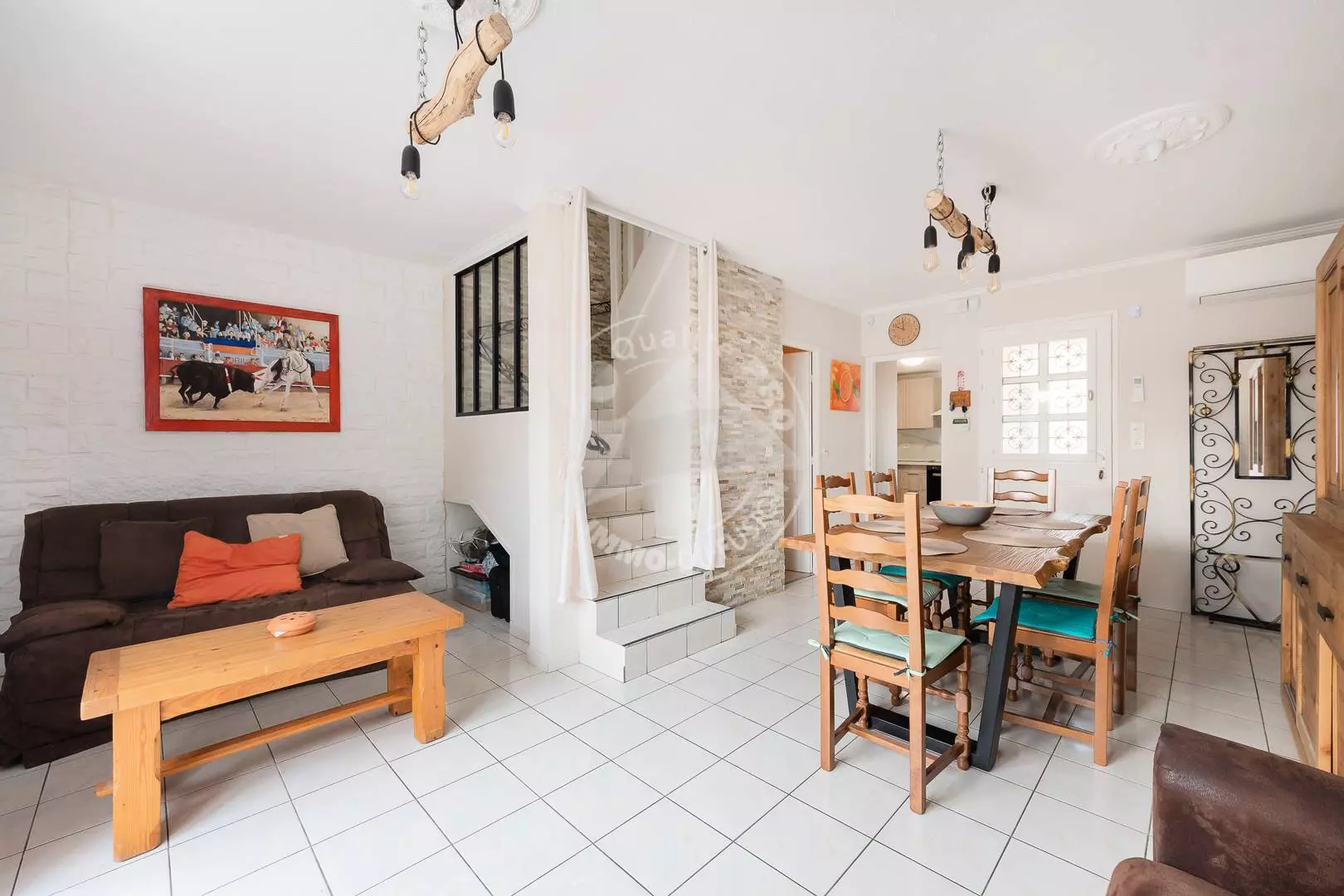 PORT CAMARGUE - LAKE SALONIKI - 53m² detached house, type P3, duplex with terrace and solarium - Come and spend a pleasant holiday in this pretty house in the Lake Salonika area. Composed on the ground floor of a living room with a 140 cm sofa bed (TV, air conditioning and Wi-Fi), opening onto the terrace with all the necessary furniture and barbecue. Fully equipped kitchen (microwave, oven, fridge/freezer, dishwasher, washing machine), bathroom with walk-in shower and toilet. Upstairs, you will find 2 bedrooms each with a 140 cm double bed and air conditioning, one of which has a 15m² solarium, ideal for sunbathing. All comfort. Very close to shops and a 10-minute walk from the beach. Furnished and equipped for 6 people. Free parking 10m away. Pets not allowed.
