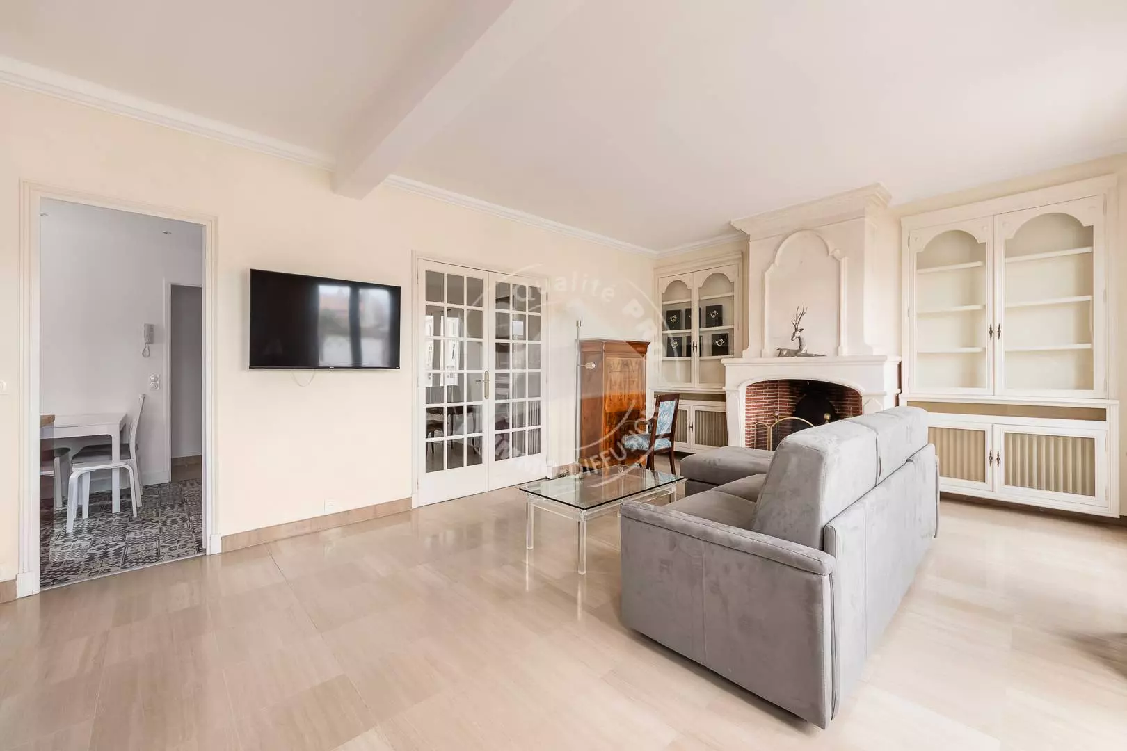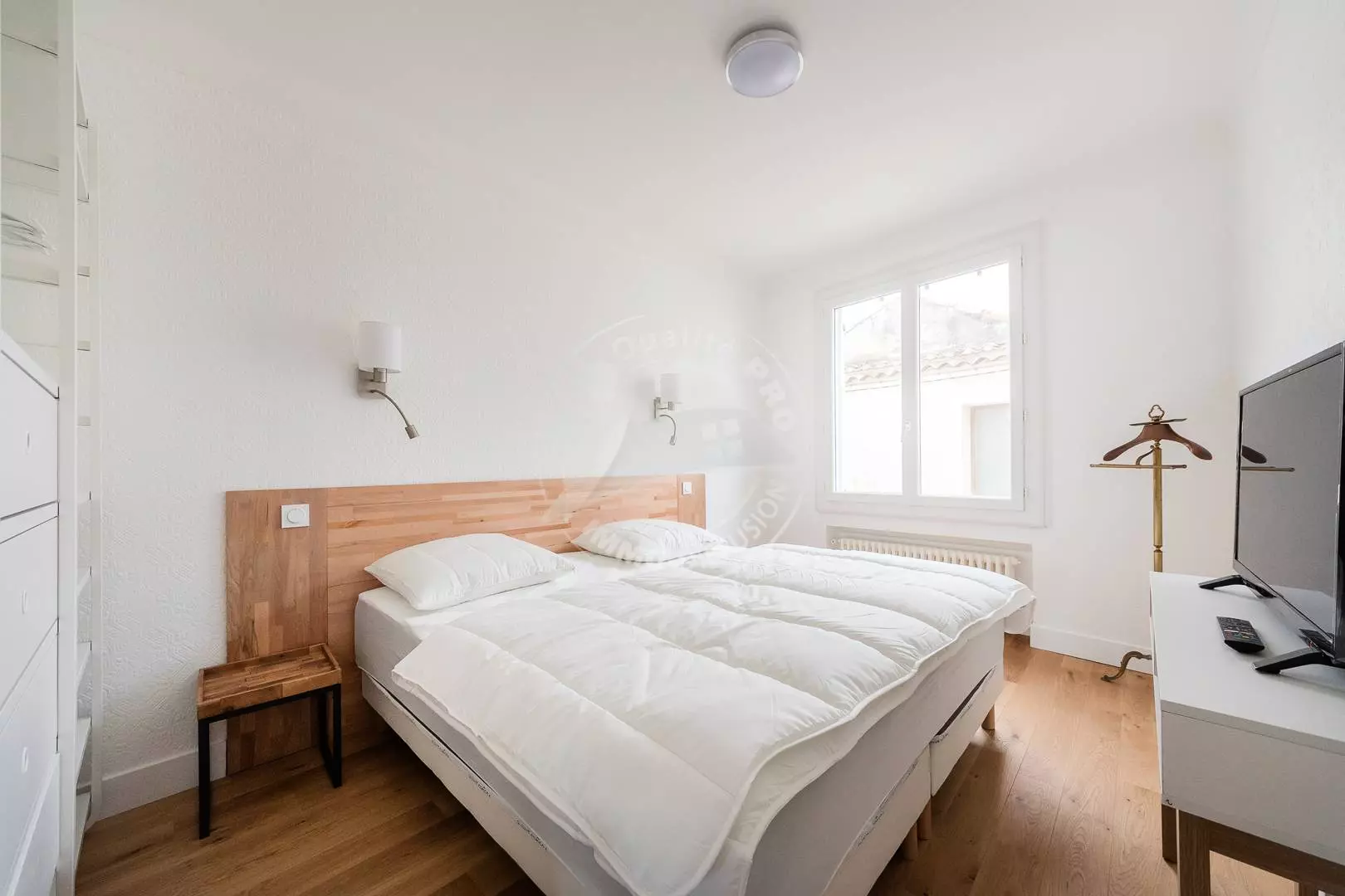 LEFT BANK - In a mansion in the city center on the Quay and facing the Canal. On the 1st floor, renovated and air-conditioned 93m² P3, consisting of a very large, bright 40m² living room with a 140cm sofa bed, air conditioning and a television, opening onto a balcony with a beautiful view of the canal. A separate, fully equipped kitchen (microwave, oven, hob, dishwasher, fridge/freezer, washing machine). Two air-conditioned bedrooms with a 180cm bed and television. A bathroom with a shower. A separate toilet. Furnished and equipped for 6 people. Vehicle not necessary, possibility of additional garage 200m away at a price of €60 to €100/week depending on the season. (Possibility to rent the entire house 2 x P3 for a total of 12 beds). Pets are not allowed.