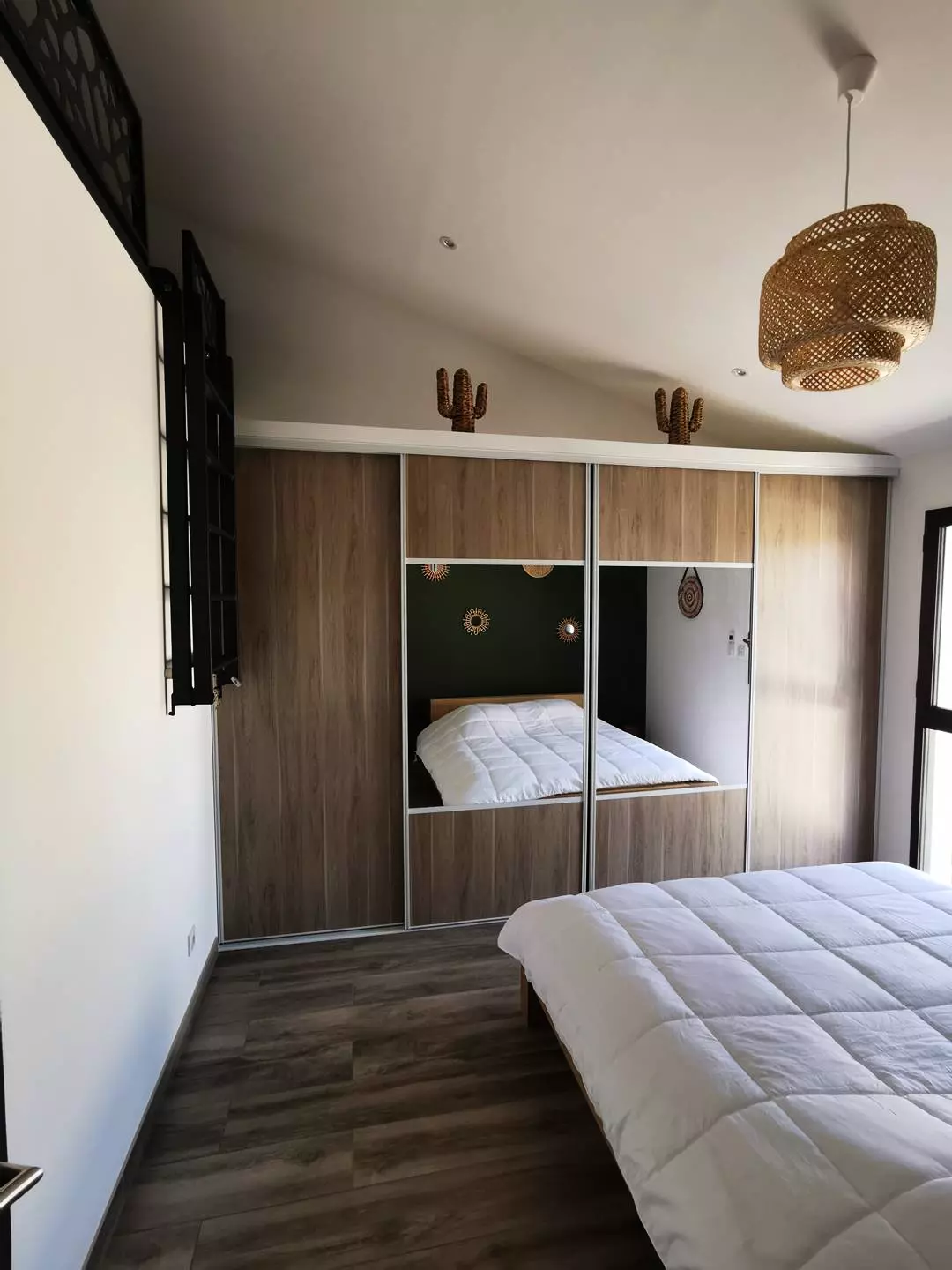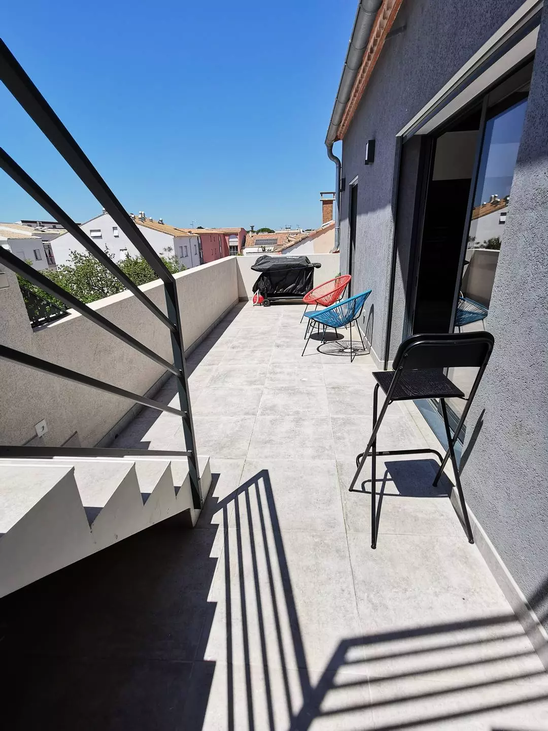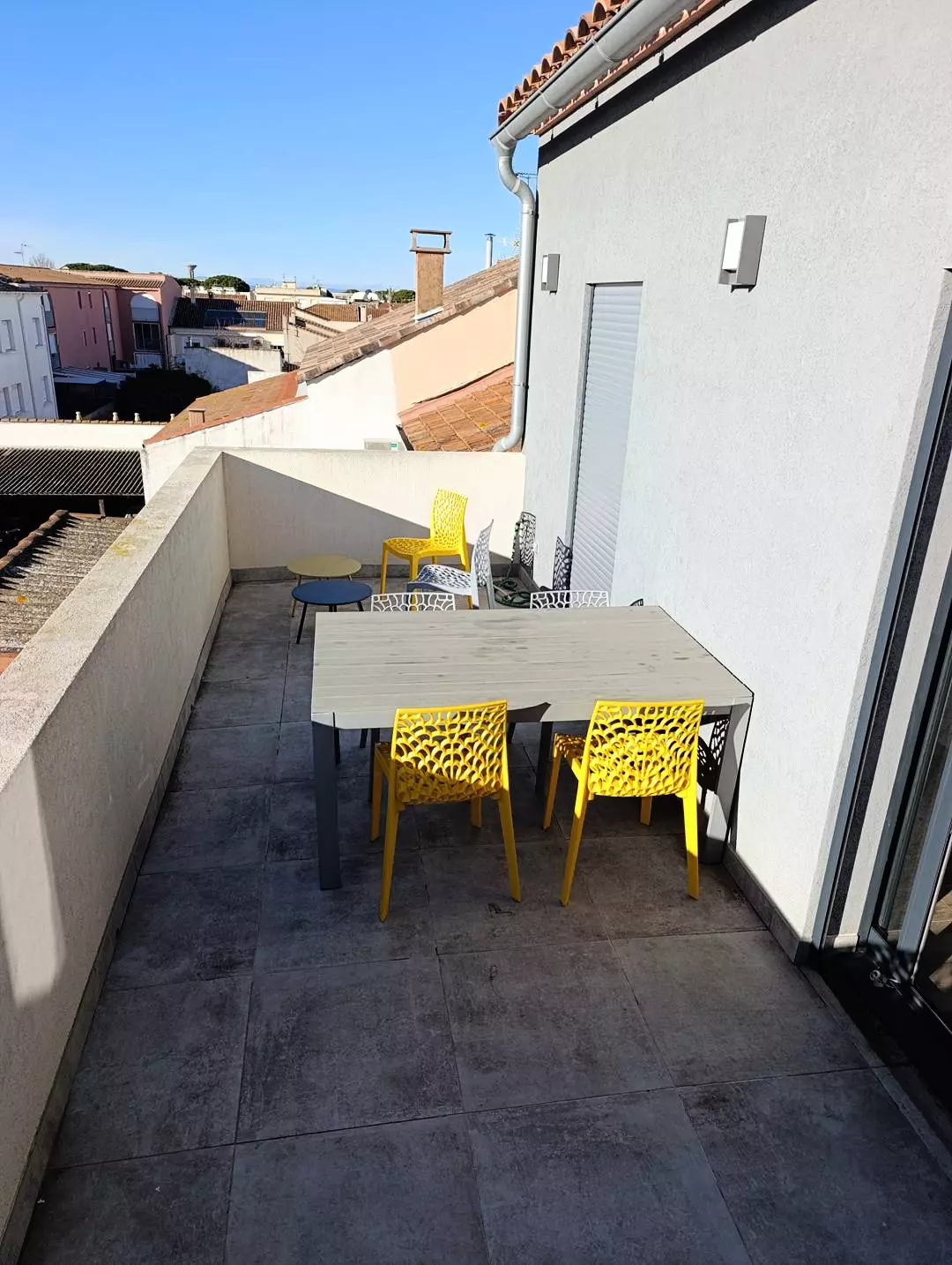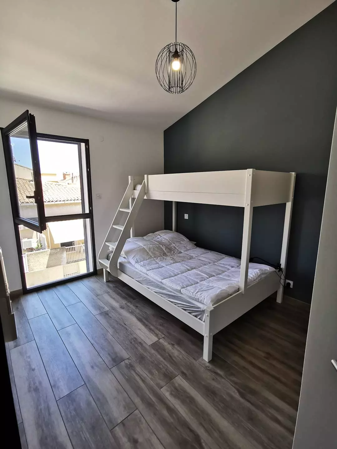 CITY CENTER - RIGHT BANK - P3 on the 2nd and last floor in a new residence, ideal location, 100 meters from the beach and 250m from the City Center. Composed of a living room with a 160 cm sofa bed, air conditioning, wifi and TV, fully equipped kitchen (oven, fridge/freezer, dishwasher, microwave, washing machine). Air-conditioned bedroom 1 with a mezzanine bed for 3 people (a 140 cm double bed and a 90 cm single bed), air-conditioned bedroom 2 with a 160 cm double bed. A bathroom with walk-in shower, double sink and towel dryer. You will enjoy a superb roof terrace with a 22m² pergola with garden furniture and a second 23m² terrace, both facing South-West. A parking space in a closed garage. Furnished and equipped for 7 people. Baby equipment available upon reservation. Pets not allowed.