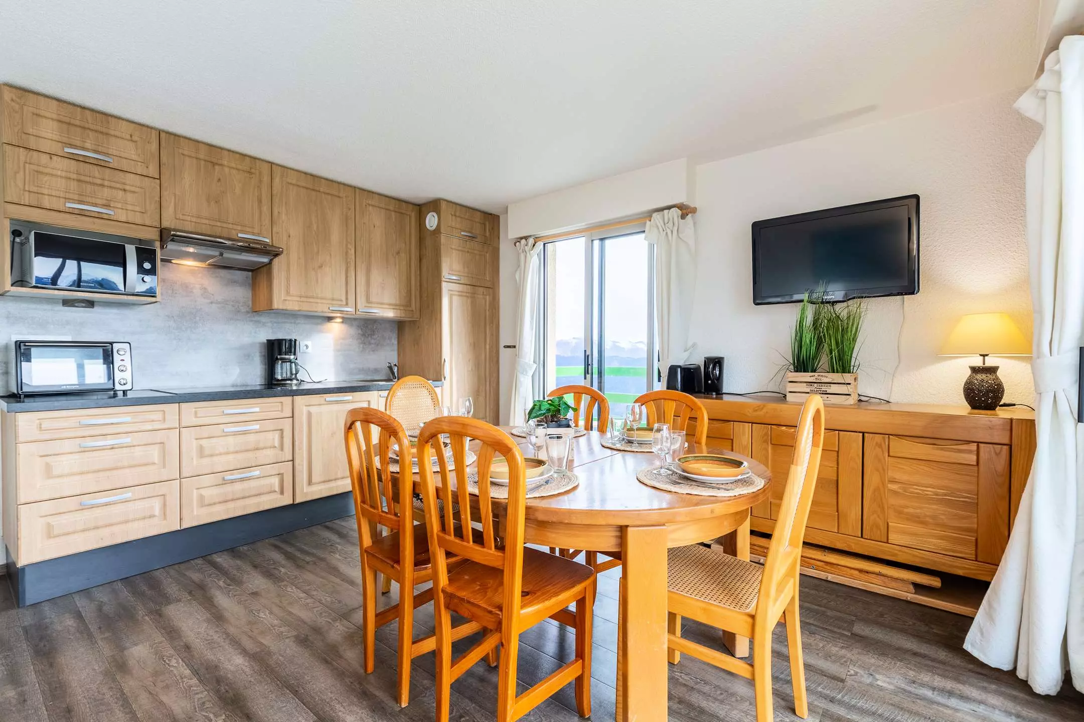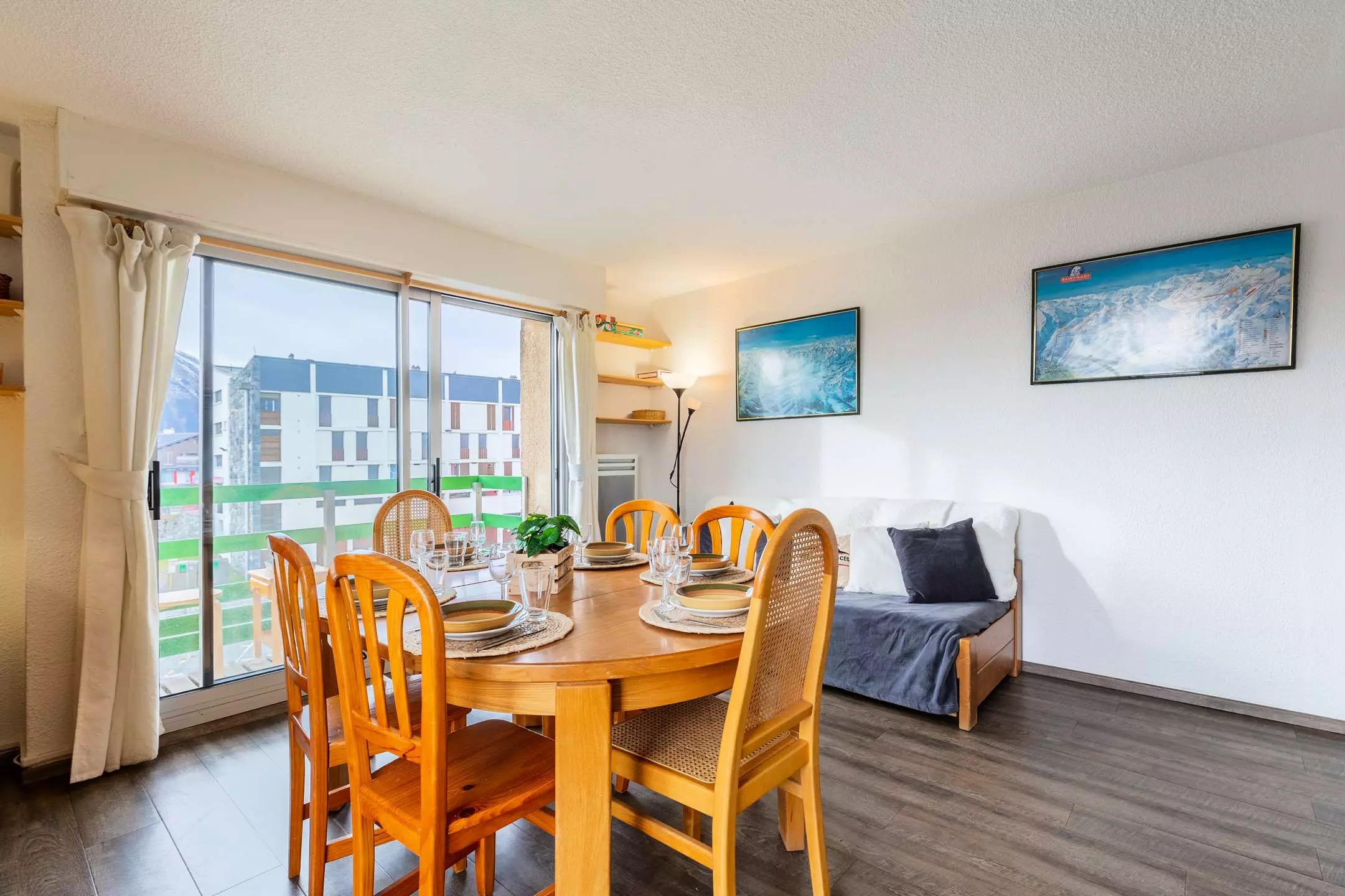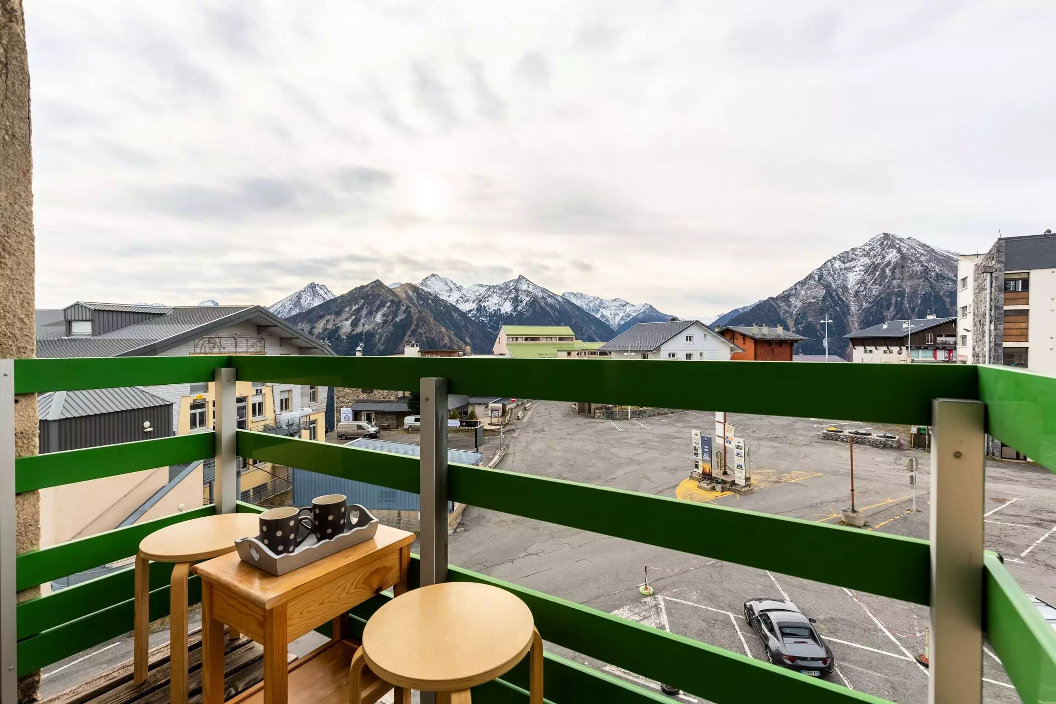 Thanks to two bay windows, you can enjoy a beautiful view of the mountain range.