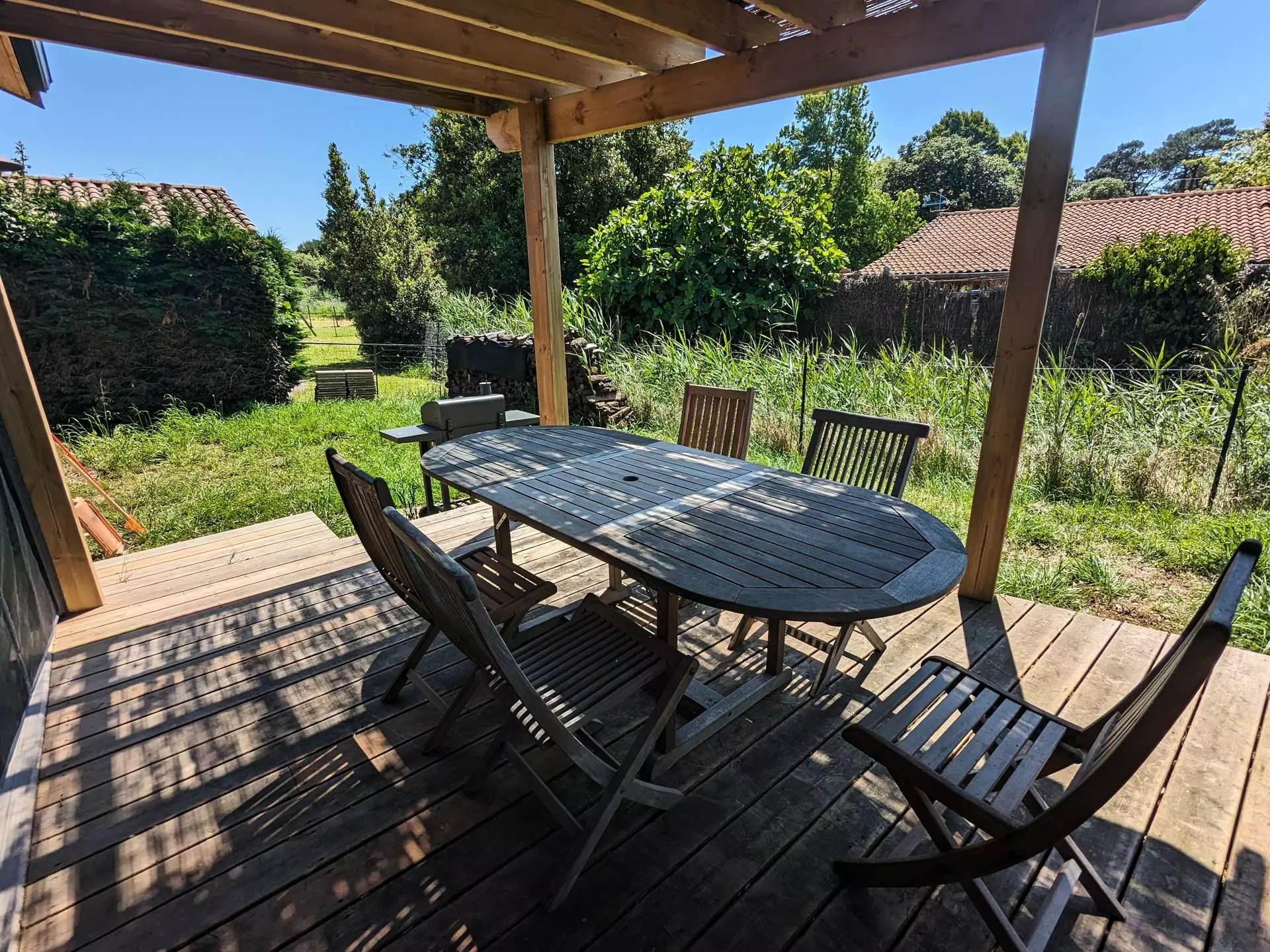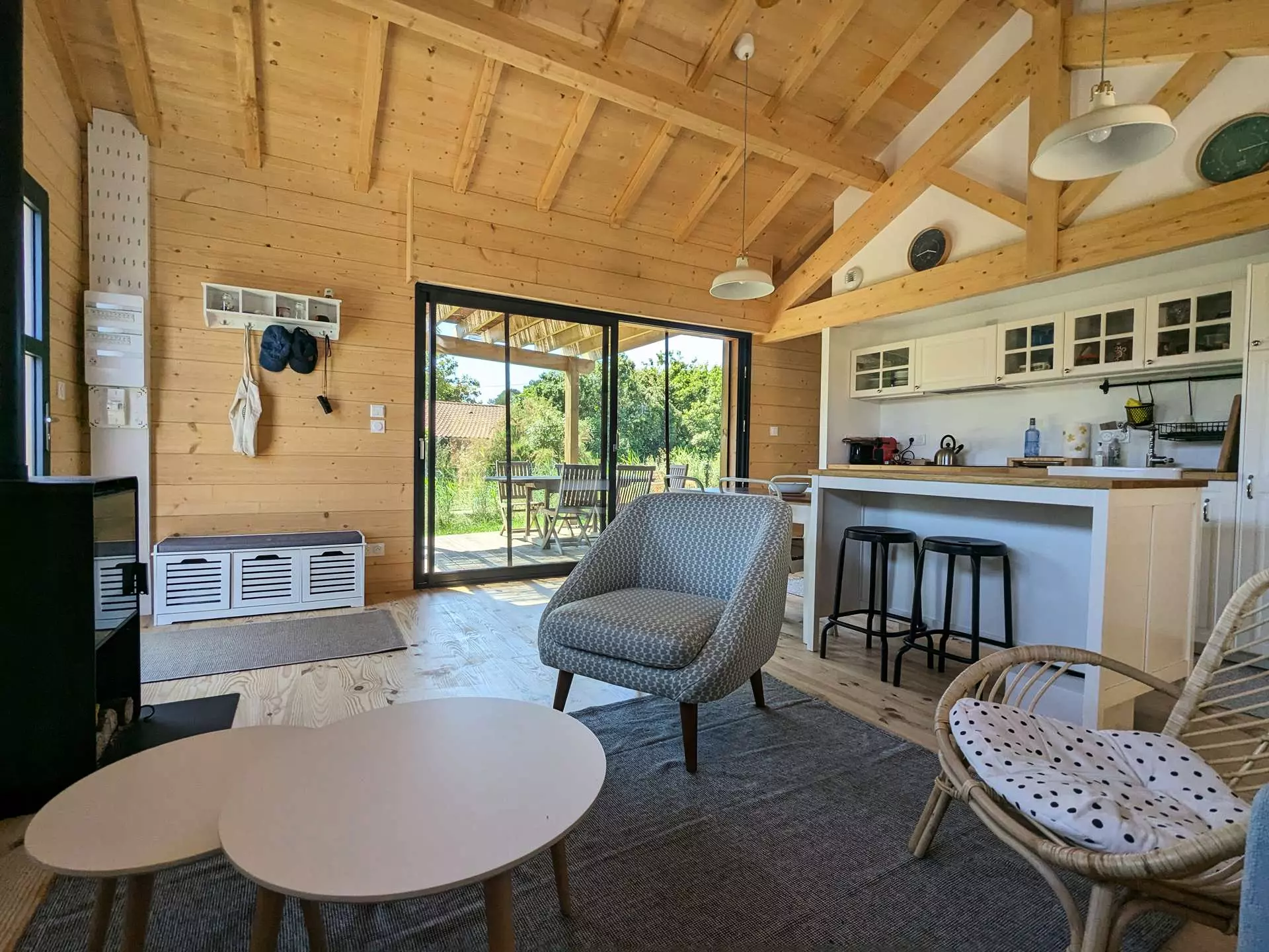Come and spend a peaceful moment in this wooden chalet of approximately 50m² that can accommodate 4 people. It consists of a fully equipped kitchen opening onto a living area, a bedroom with a 140cm double bed and storage, a second bedroom with 2 single bunk beds, a shower room, and a separate toilet. Outside, a terrace of approximately 20m² equipped with garden furniture, a table, chairs, and a barbecue. HIGHLIGHTS: Located just 50m from Chambrette beach via private access to the condominium, you can relax with your family. Just a 5-minute walk away, the beach has a sailing club, a kids' club, and 2 restaurants. Deposit to be paid on site upon arrival. Holiday vouchers accepted.