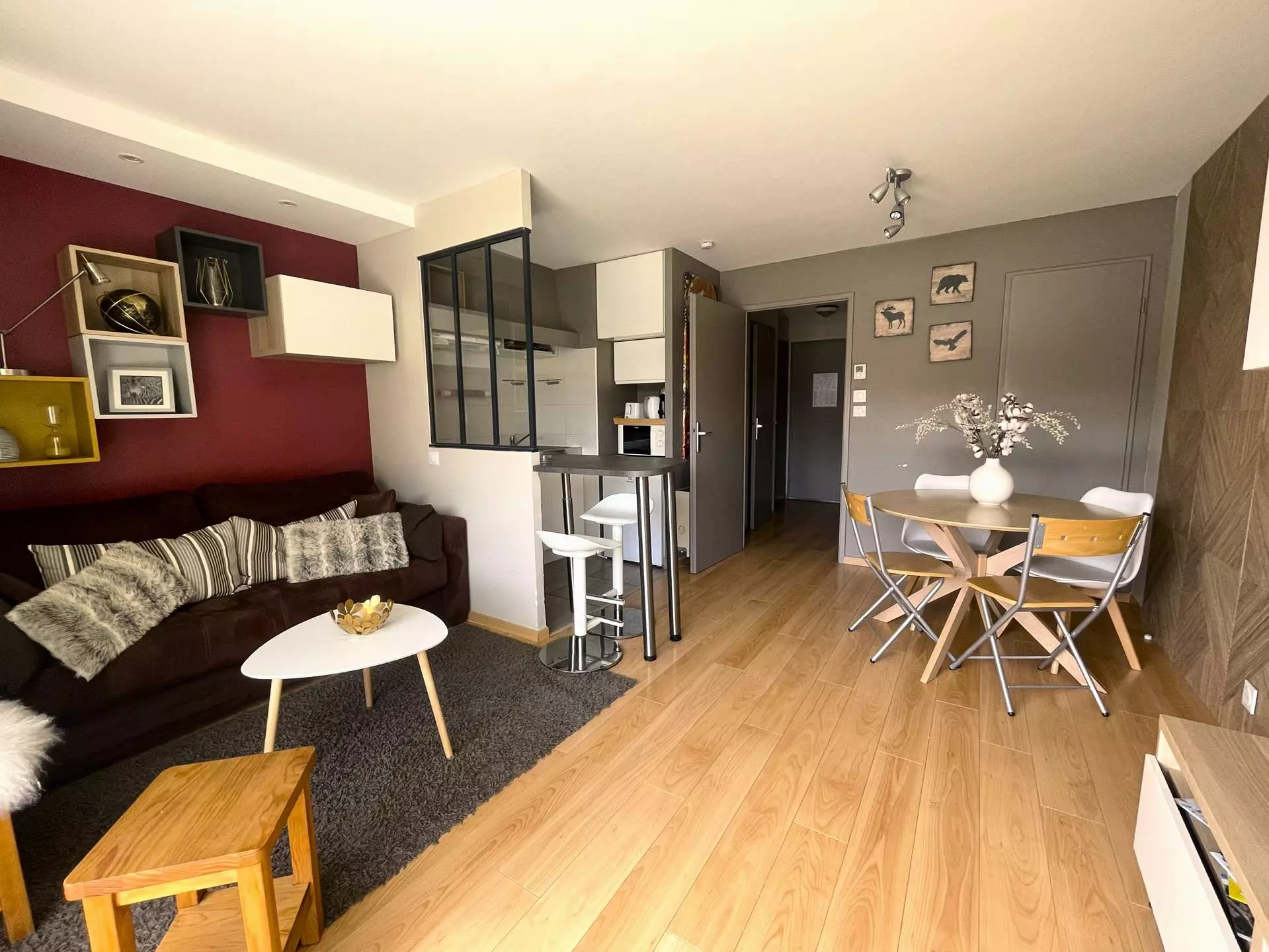 Residence "La vallee blanche" In the heart of the resort, its entertainment, amenities and shops, within a maintained residence, 30m² studio, particularly bright and functional, renovated in September 2019, featuring: a spacious mountain corner with 2 bunk beds, a separate shower room and WC, a kitchen area, a nicely decorated living room. You will enjoy a SOUTH balcony and access to the slopes a few steps from this rental. - Residence popular for being a few meters from the cable car, swimming pool and ice rink.
