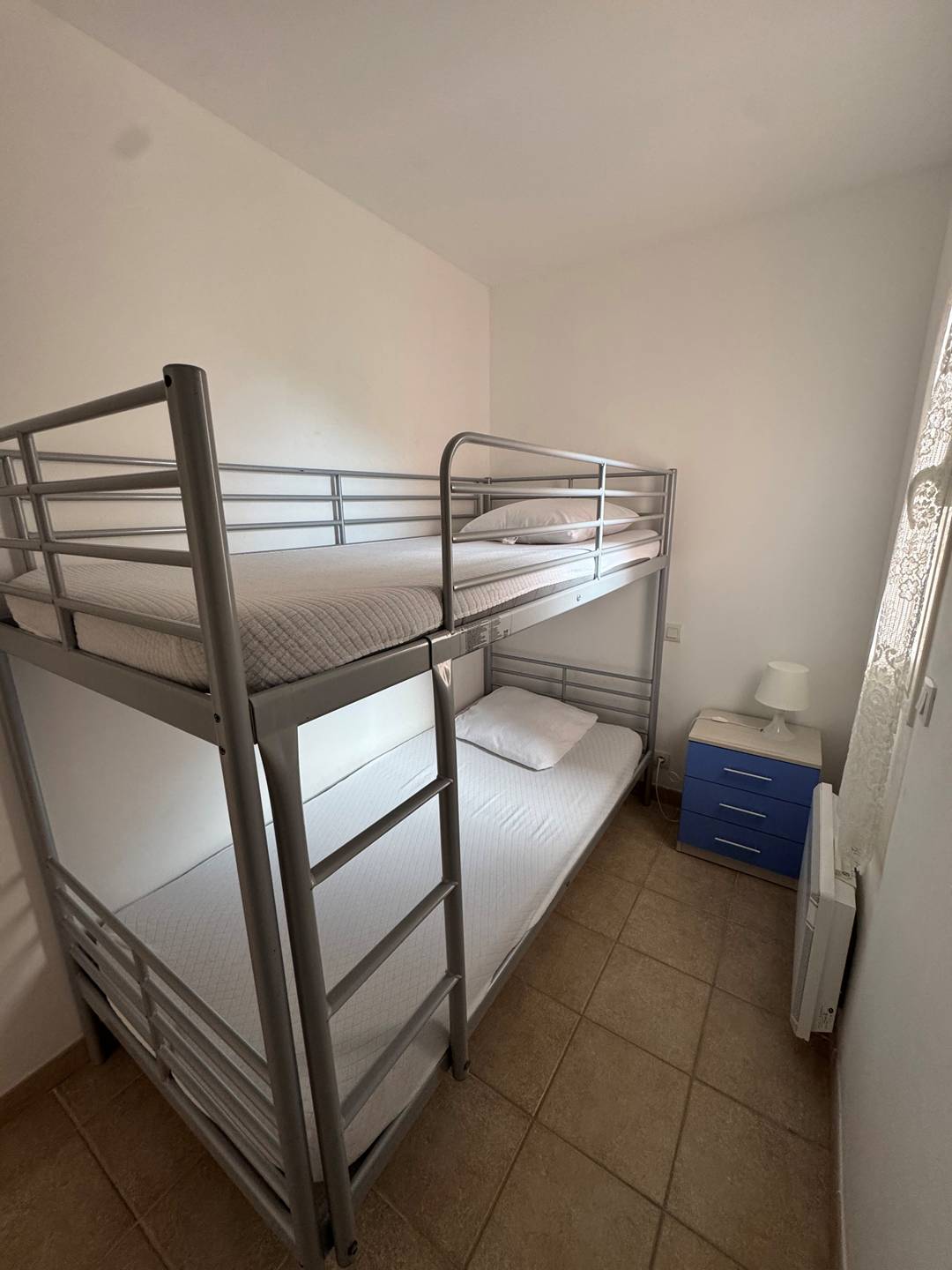 Bedroom 2: small - 2 bunk beds (2x90), storage.