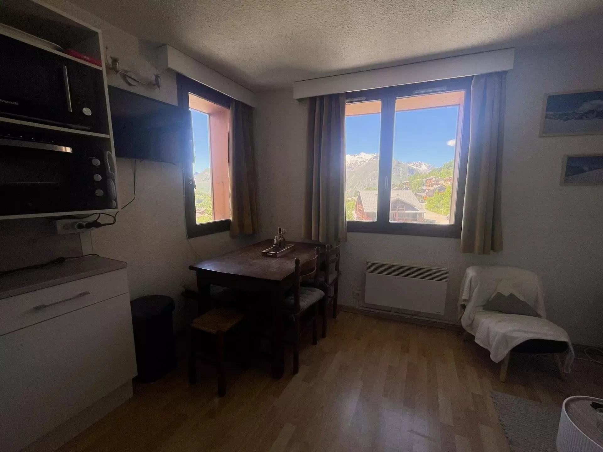 Ideal for recharging your batteries in the mountains, this 24 m2 apartment is fully equipped with two windows: view of Alpe D'huez and the Valée Blanche sector.
