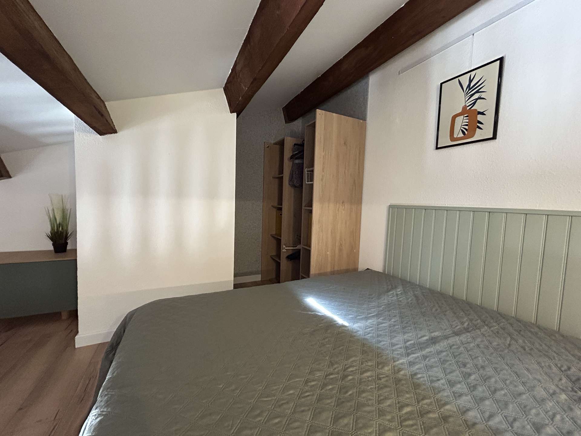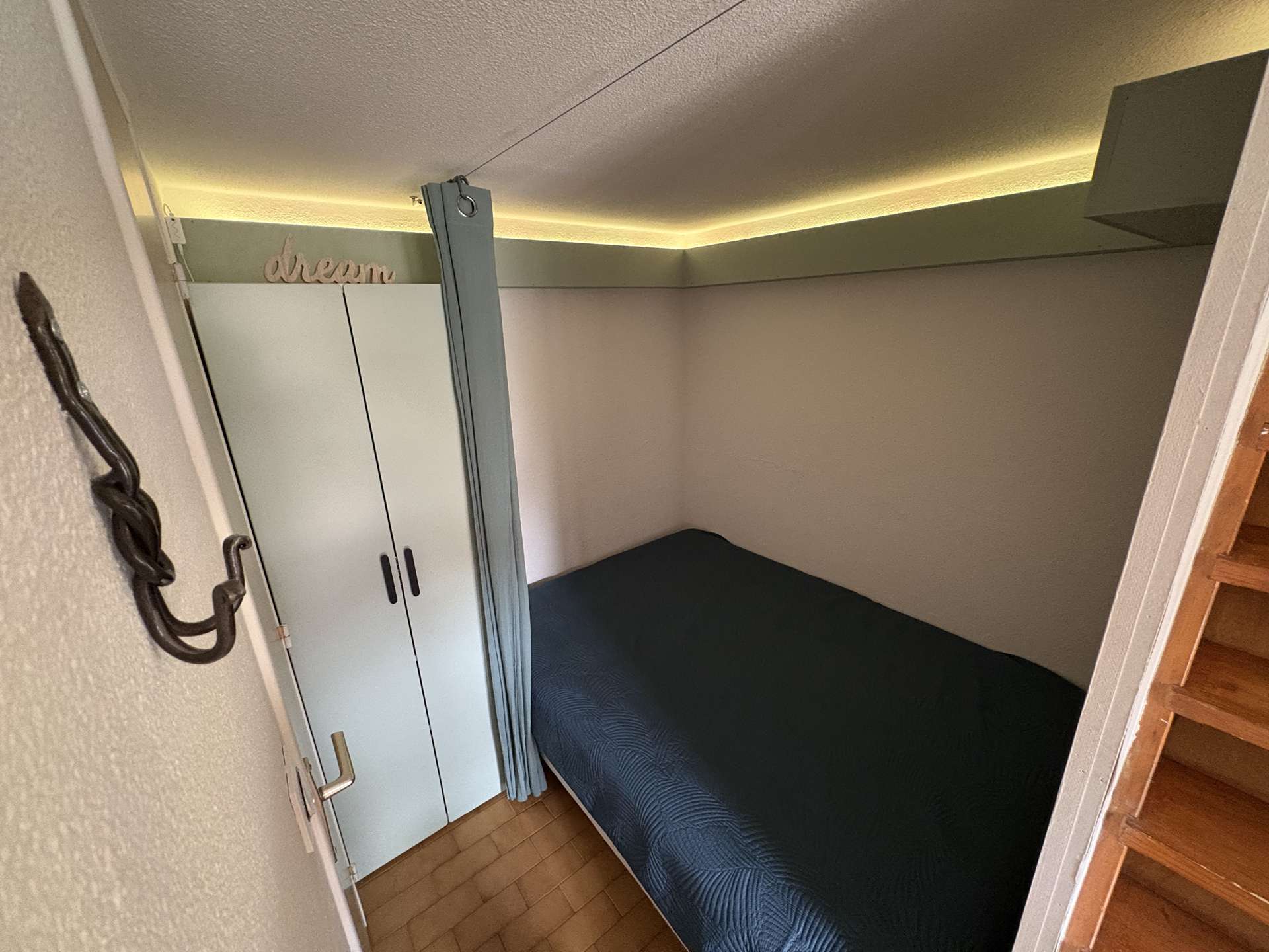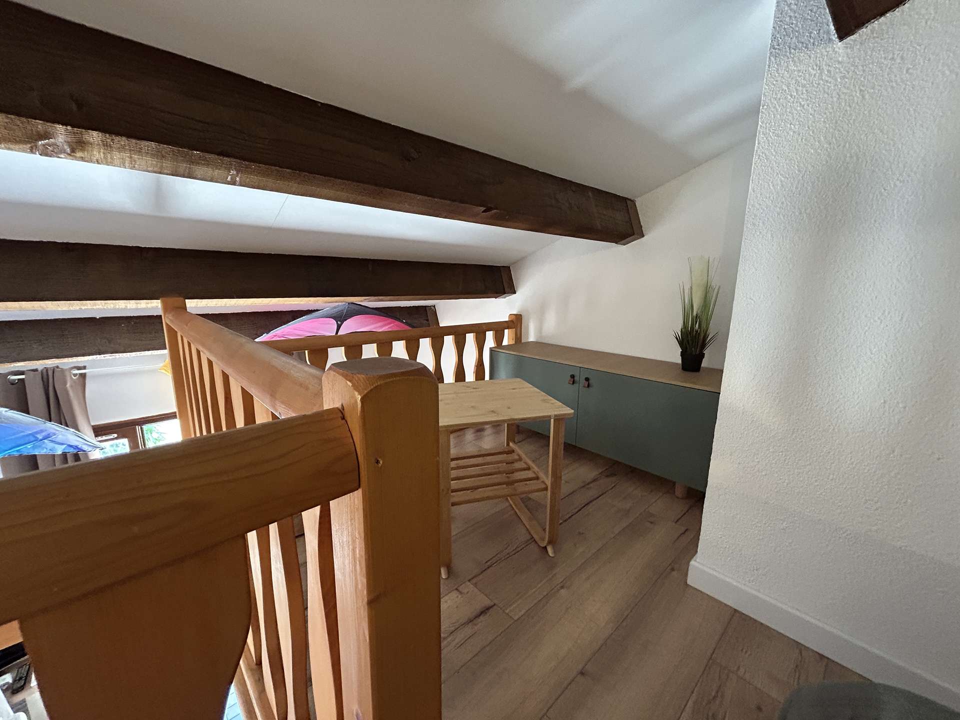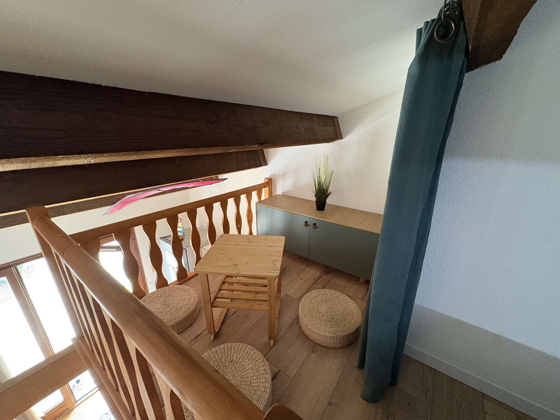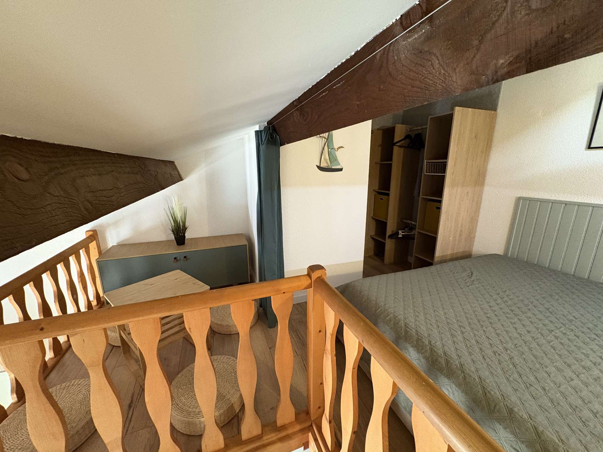 Le logement : Cet hébergement de vacances en famille situé proche de la piscine comprend un séjour avec canapé convertible et téléviseur (sous réserve d'une bonne réception), un espace cuisine équipée refaite à neuf, une chambre avec un lit double en 140, une salle d'eau avec WC, à l'étage une mezzanine avec un lit double en 160.
