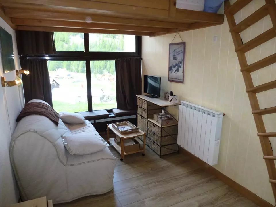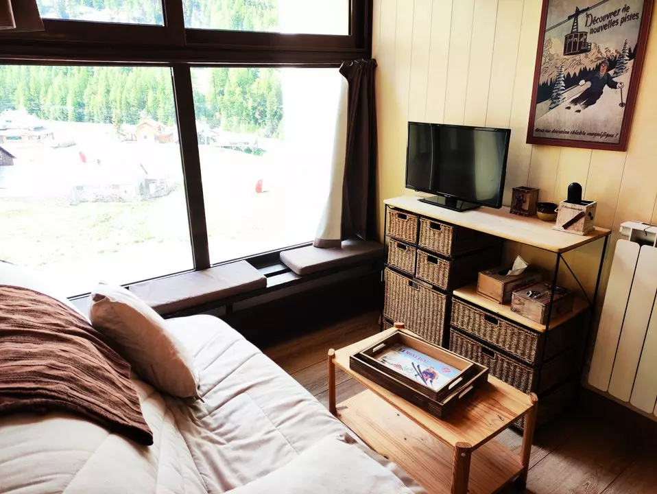 VRI11H 2* Renovated studio for 4 people, south-facing with a window. Located above the shopping mall and its shops. Direct access to the slopes. Covered parking included. Internet access included.