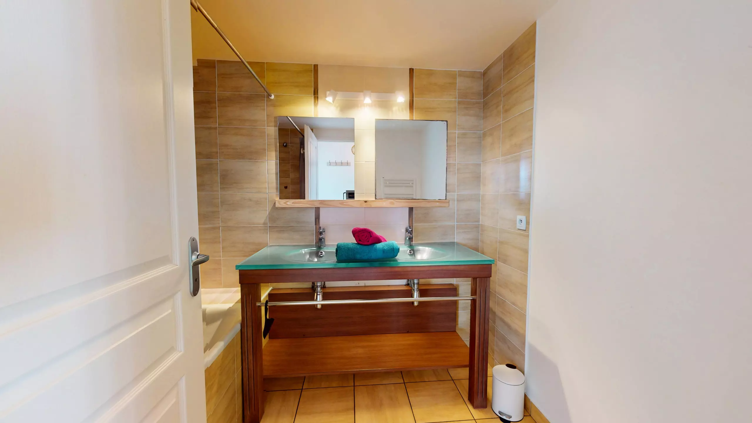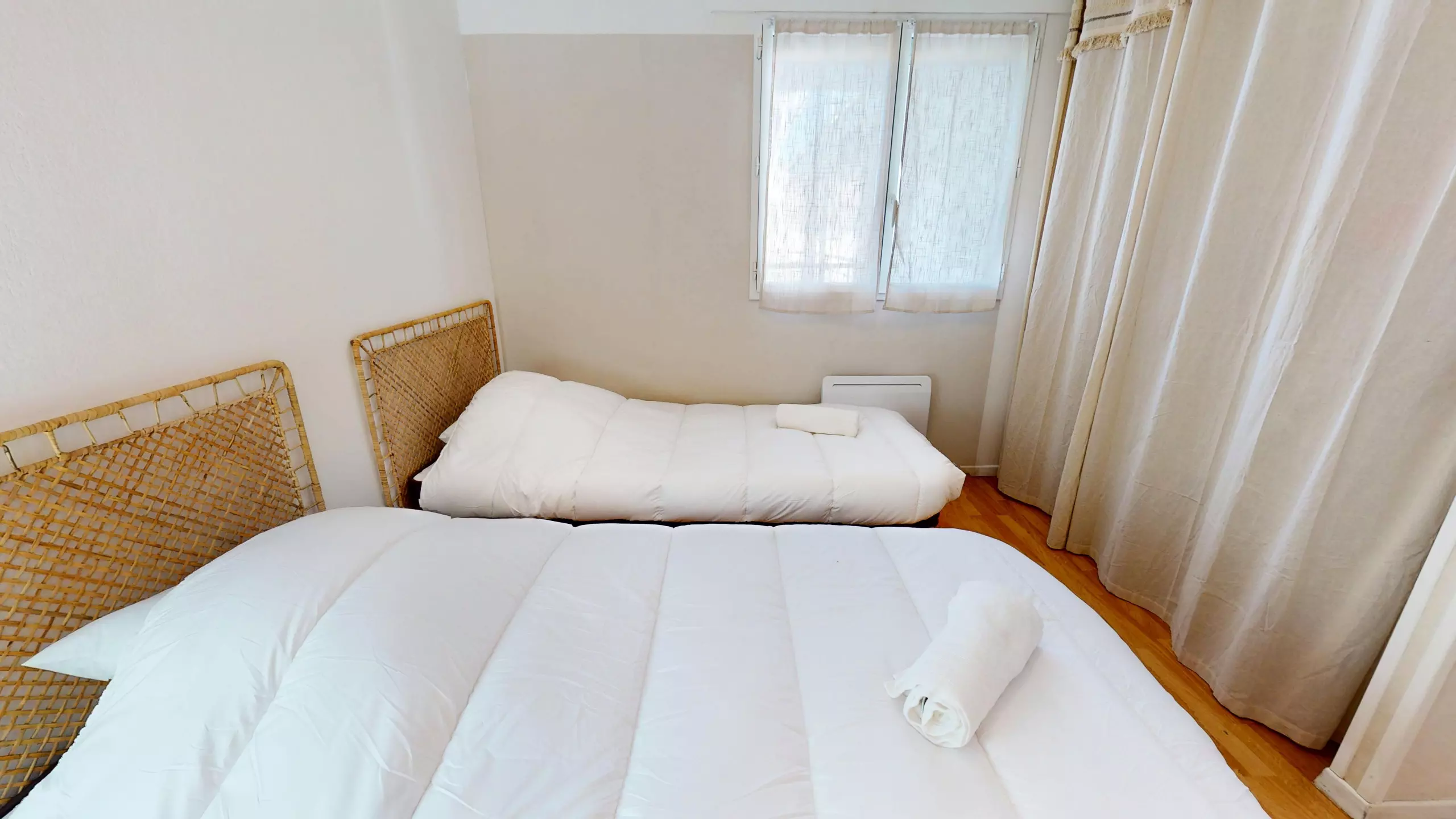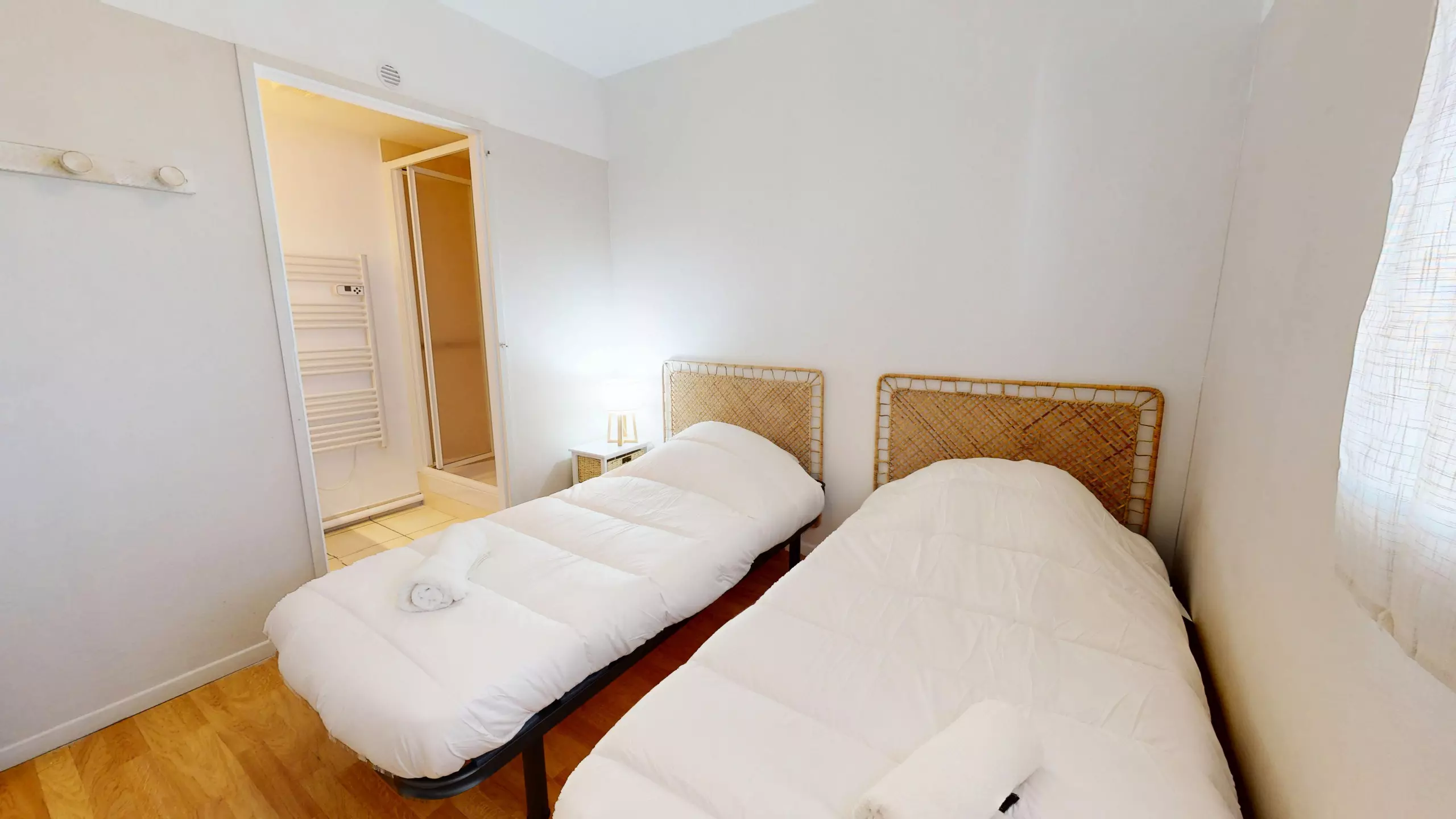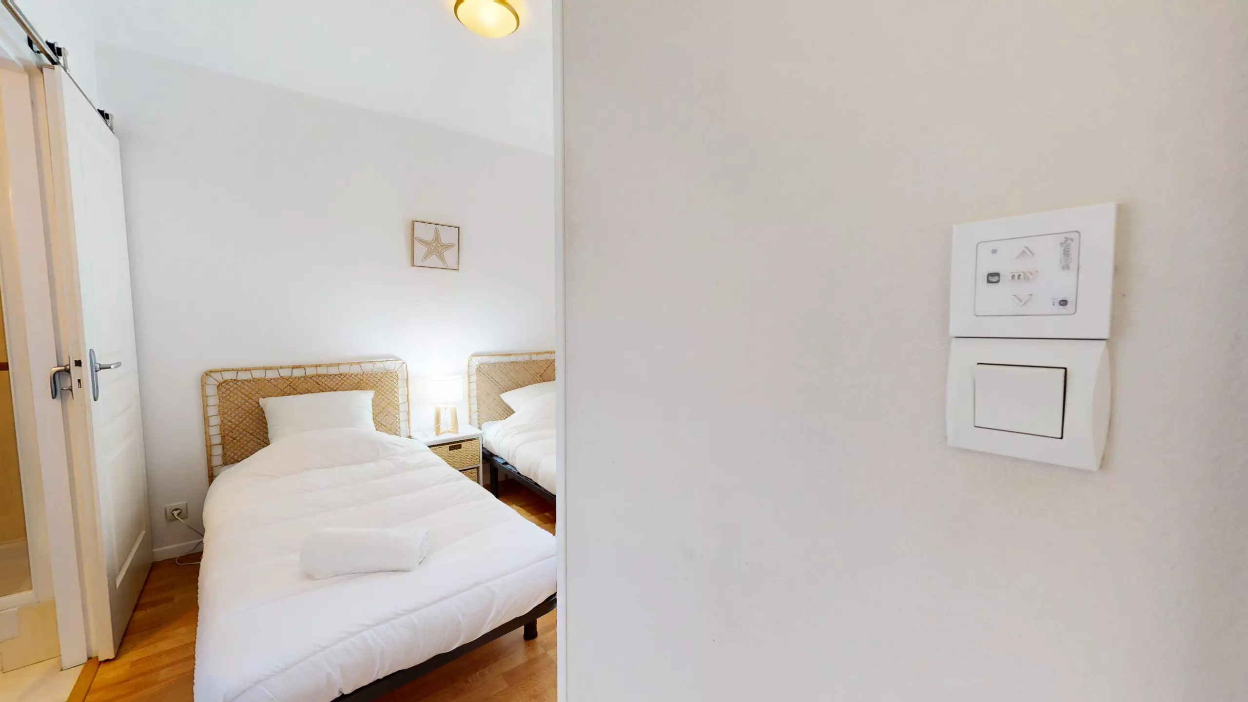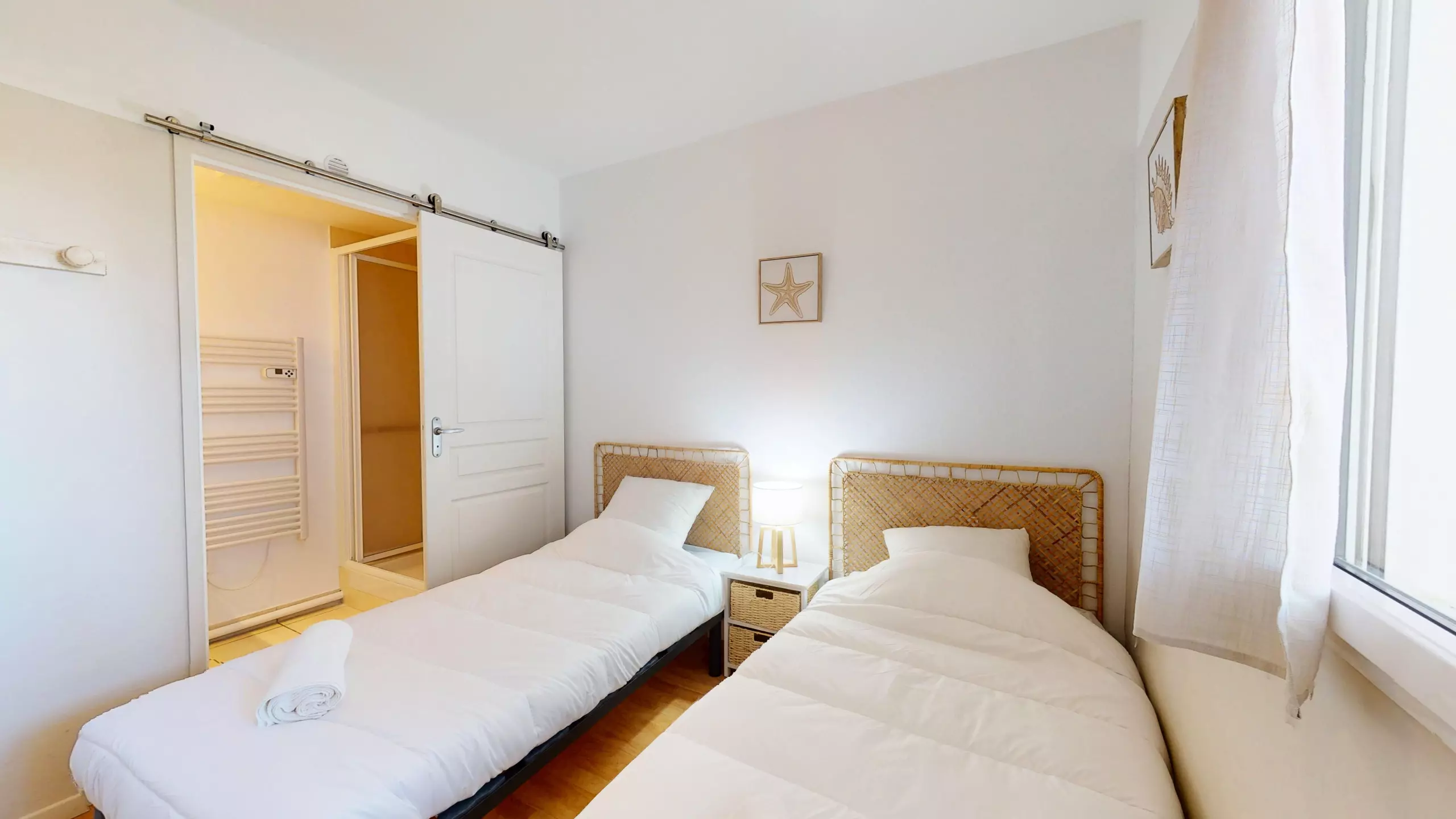 - A second bedroom with 2 single beds (90 cm) and its own bathroom.