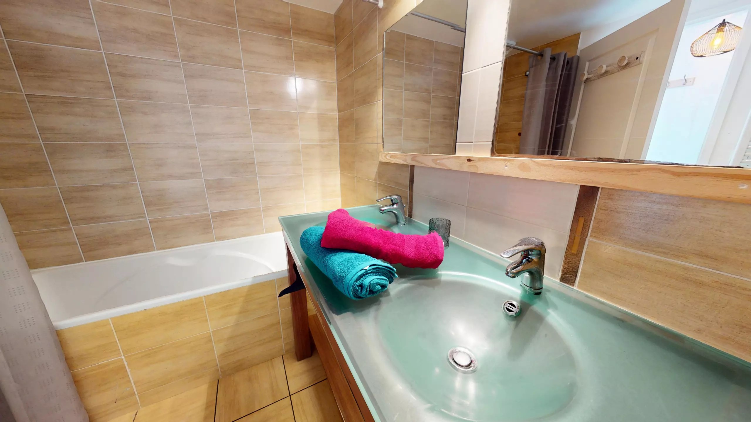 - A master bedroom with closet, access to a private terrace with 2 deckchairs, bathroom with bathtub.