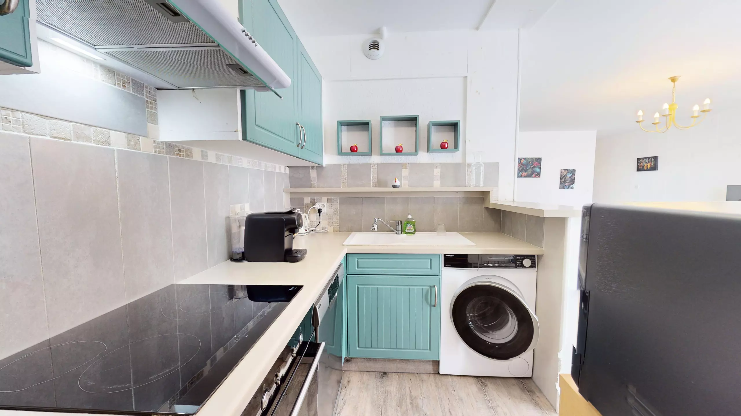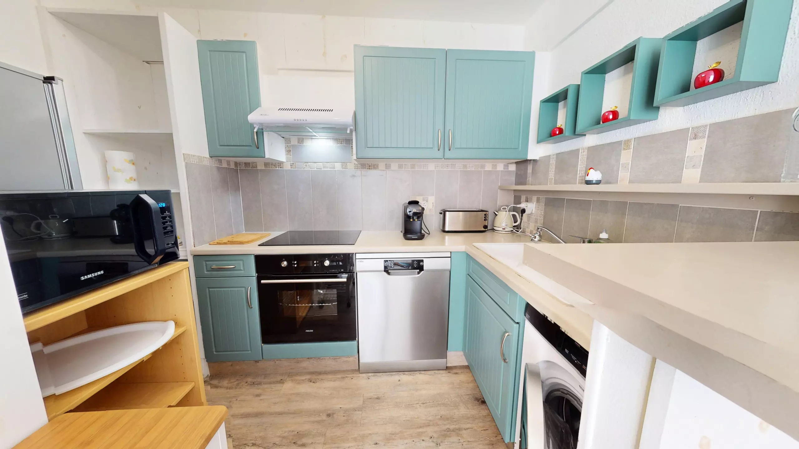 - A fully equipped kitchen: hotplates, oven, extractor hood, fridge-freezer, dishwasher, kettle