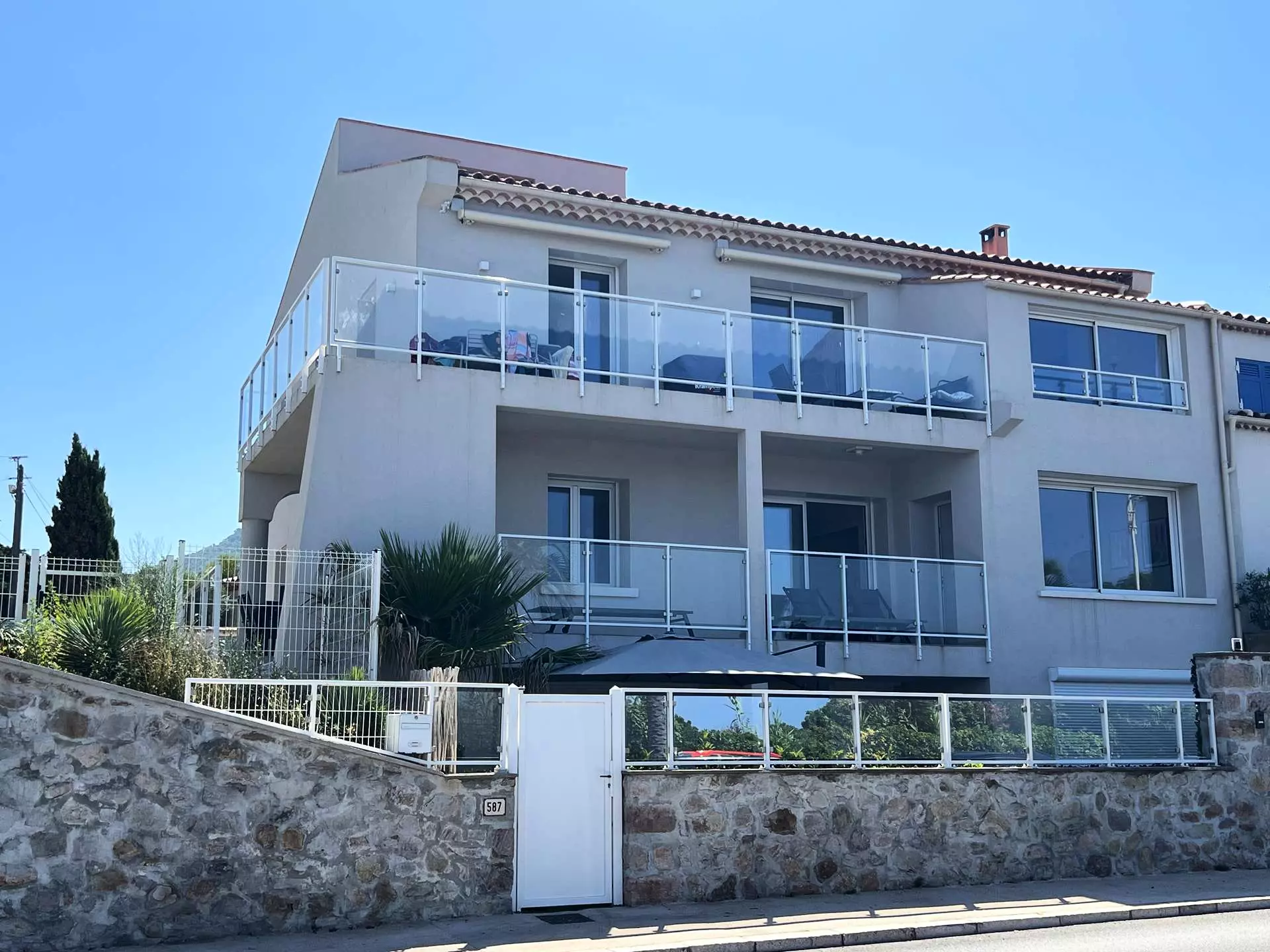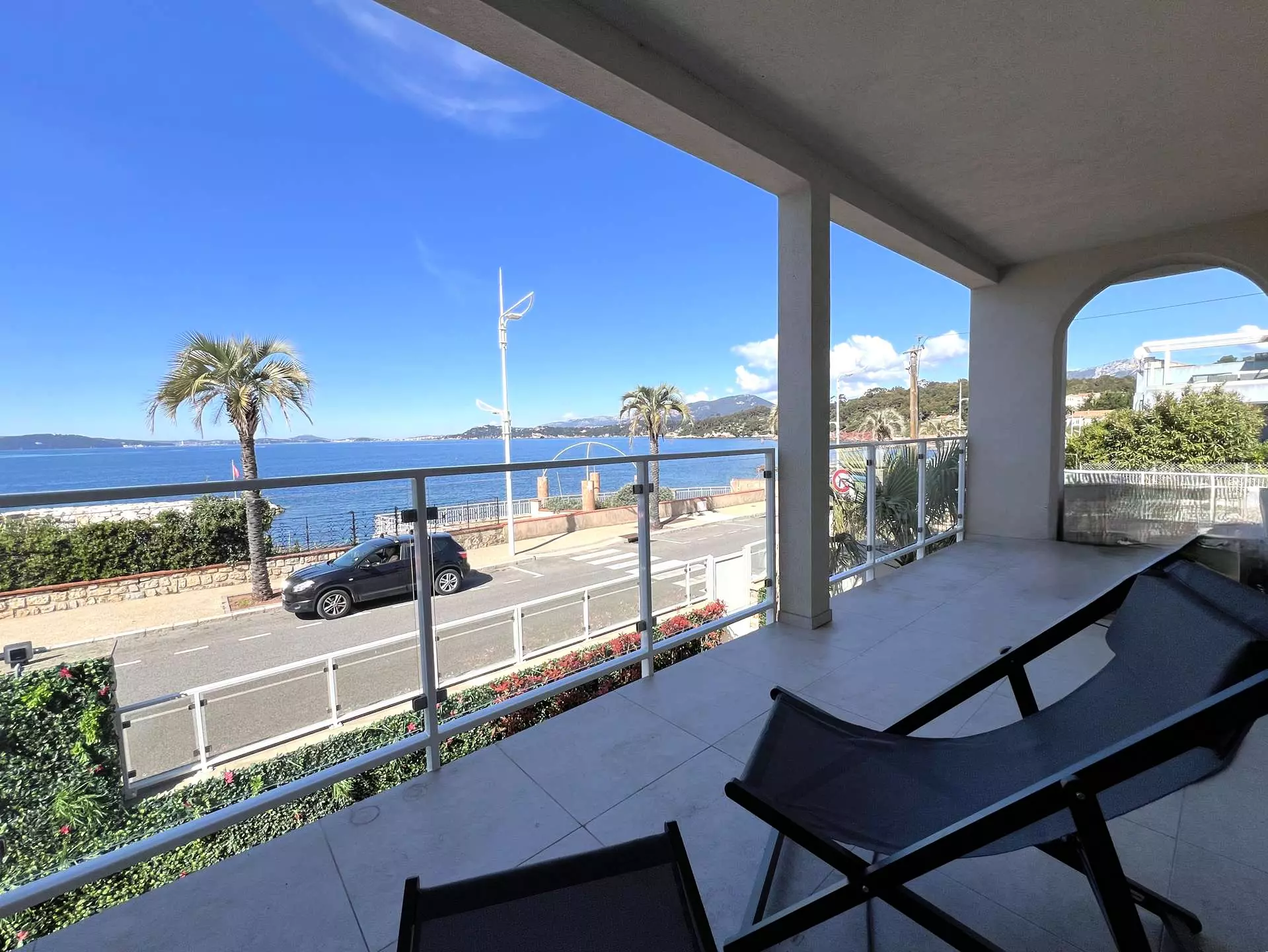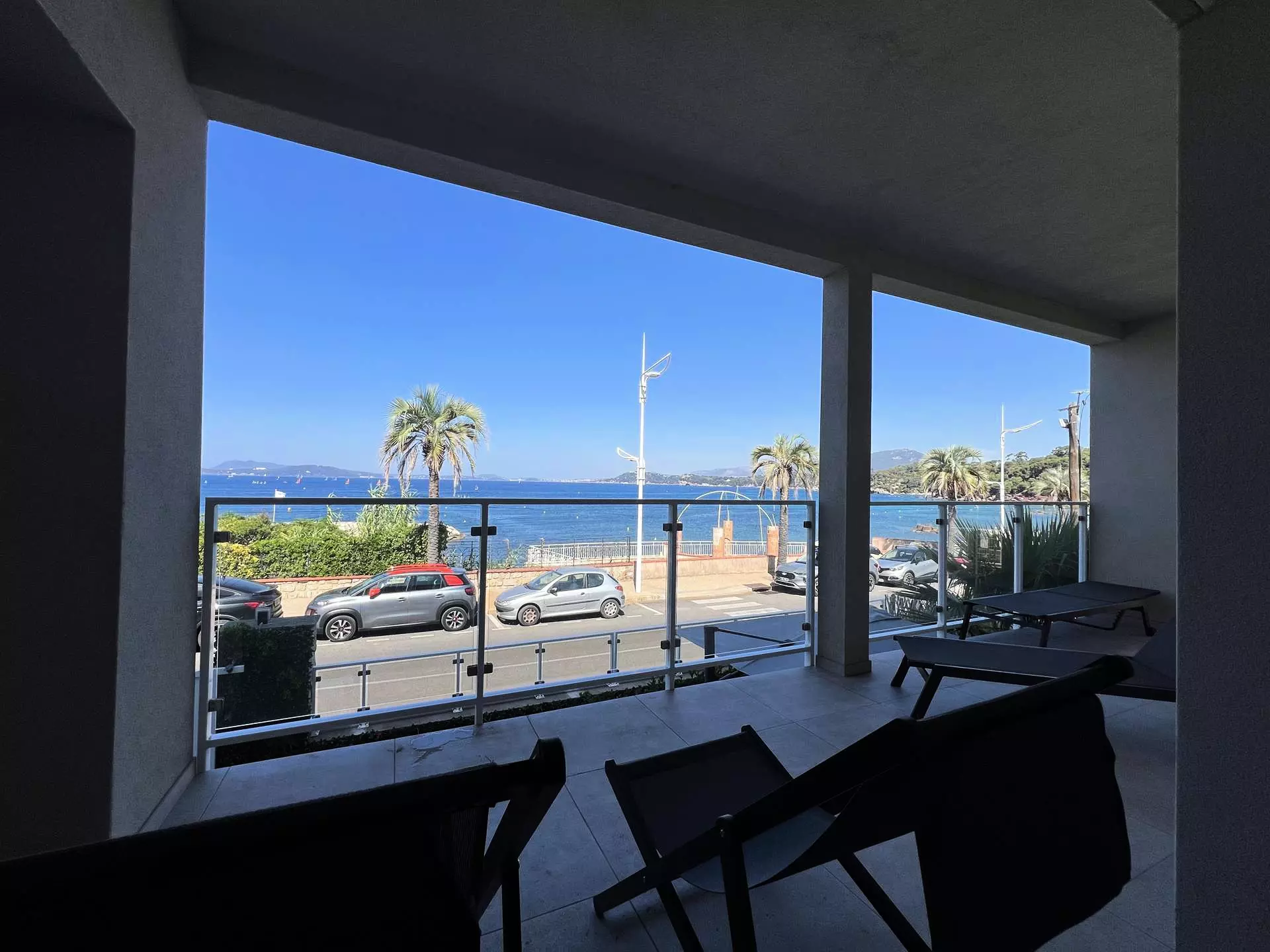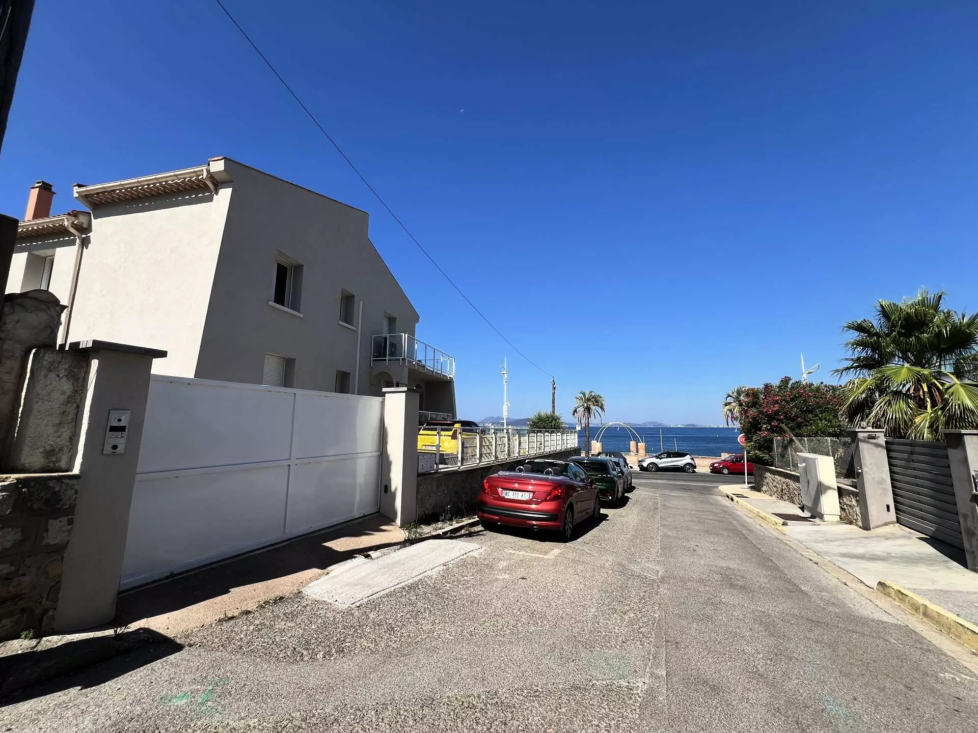 Facing the crystal-clear waters of the Mediterranean, just steps from the golden sands of Garonne Beach, this bright apartment invites you to enjoy a waterfront getaway. Nestled in a privileged setting between the Port de l'Oursinière and Cap Garonne, it offers an idyllic setting where the blue sky blends into the sea's horizon.