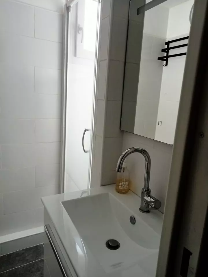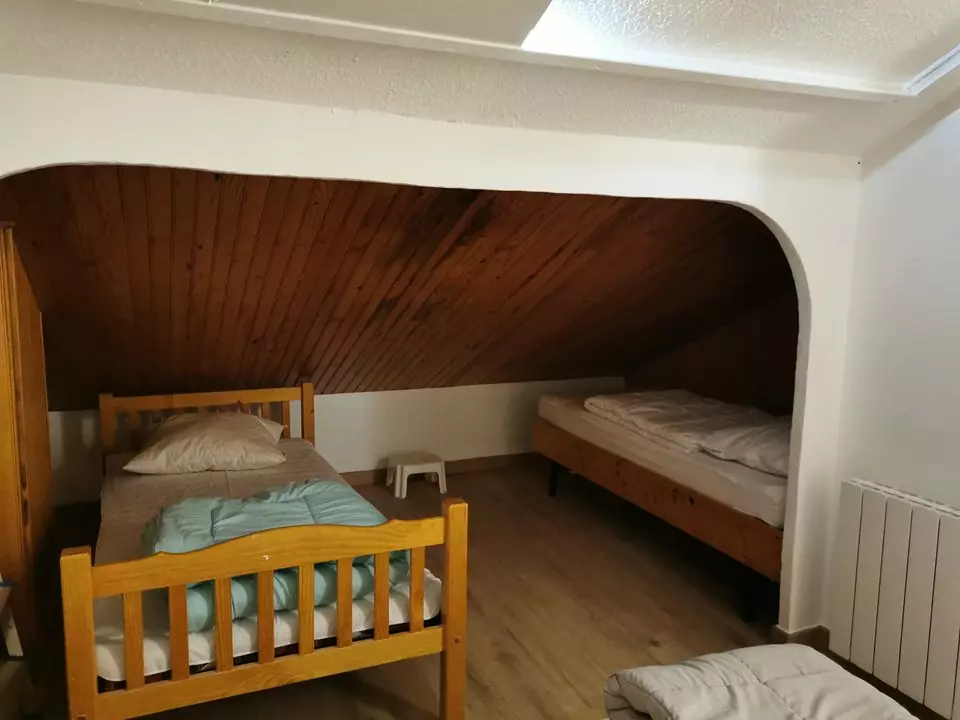 Upstairs, a bedroom with a 140 cm bed and a sink, then another bedroom with a 140 cm bed and two 90 cm beds.